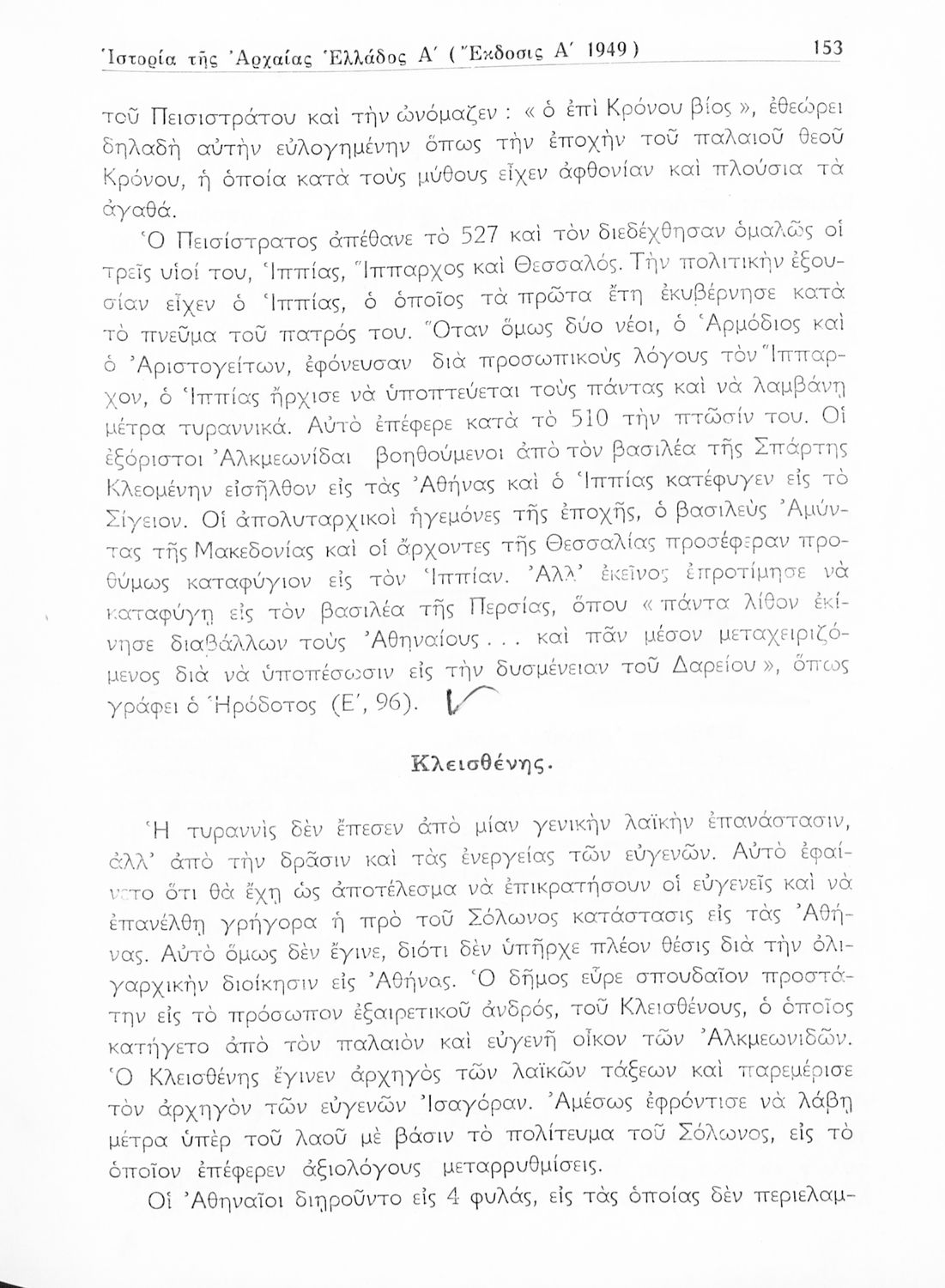 Σχολικό εγχειρίδιο Ιστορίας Α' Γυμνασίου που καλύπτει το διάστημα από τους προϊστορικούς χρόνους ως τις μεταρρυθμίσεις του Κλεισθένη.