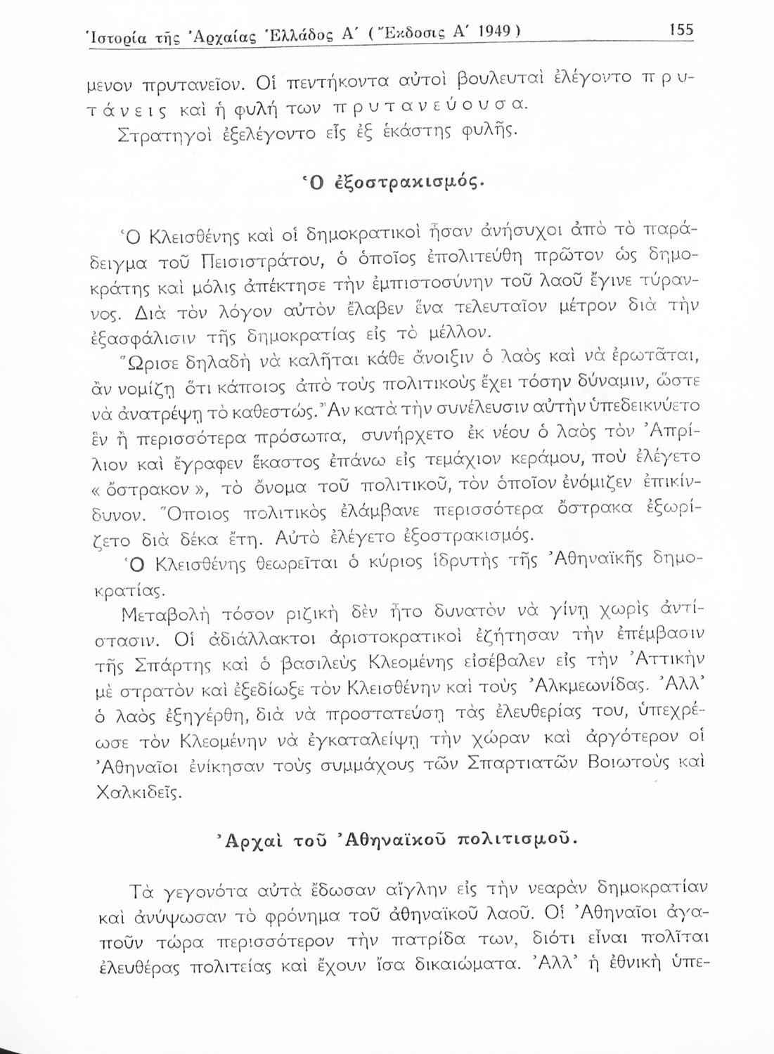 Σχολικό εγχειρίδιο Ιστορίας Α΄ Γυμνασίου που καλύπτει την περίοδο από τους προϊστορικούς χρόνους ως τις μεταρρυθμίσεις του Κλεισθένη. Περιέχει και εκτενή αναφορά στην ανάπτυξη των γραμμάτων, των τεχνών και του