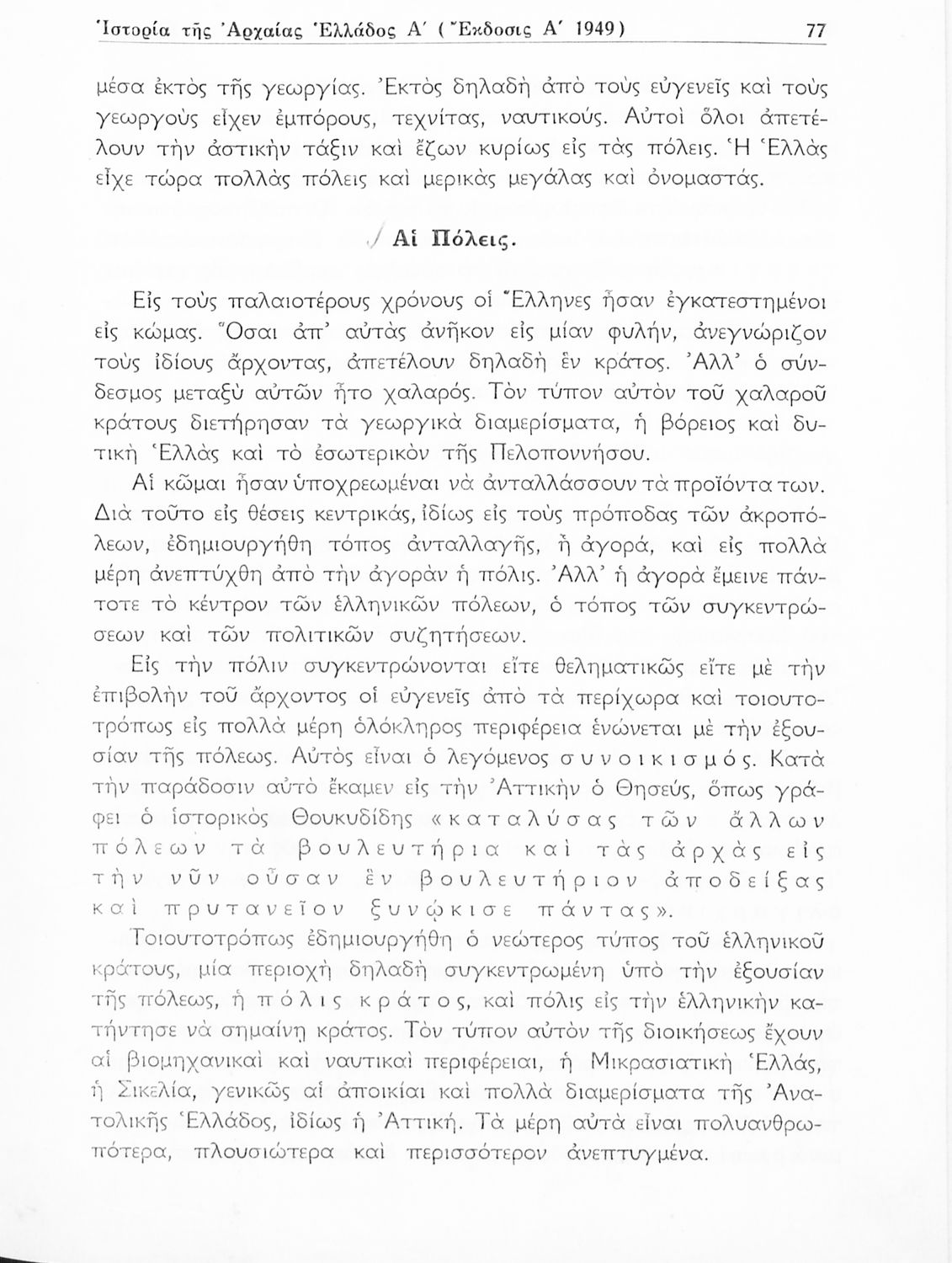 Σχολικό εγχειρίδιο Ιστορίας Α΄ Γυμνασίου που καλύπτει την περίοδο από τους προϊστορικούς χρόνους ως τις μεταρρυθμίσεις του Κλεισθένη. Περιέχει και εκτενή αναφορά στην ανάπτυξη των γραμμάτων, των τεχνών και του