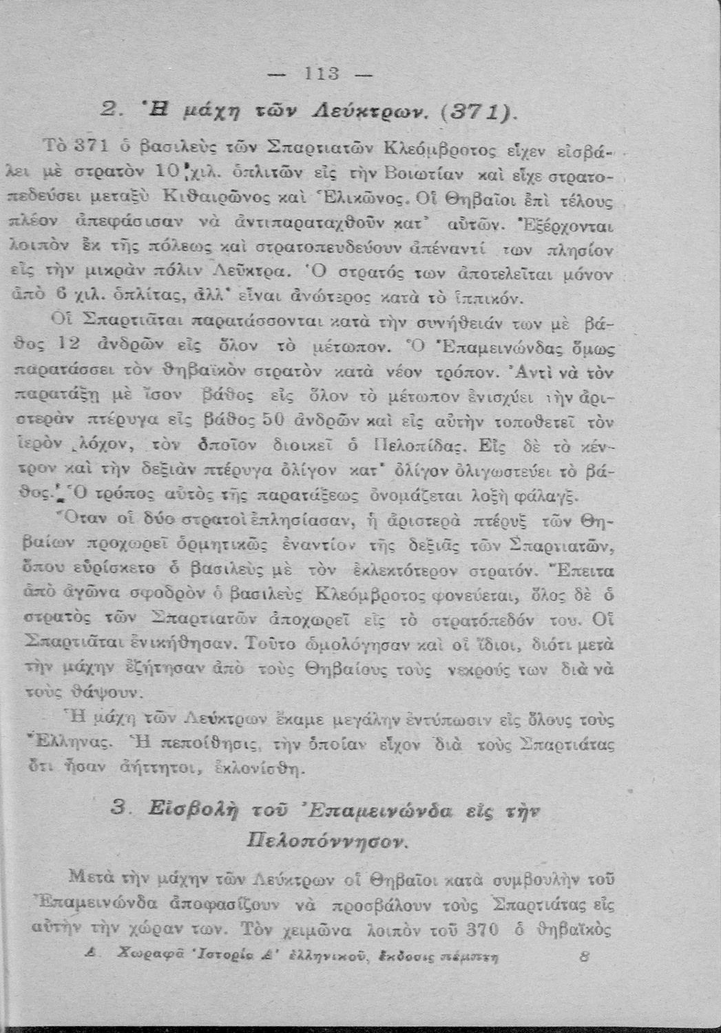 Σχολικό εγχειρίδιο Ιστορίας Α΄ Ελληνικού Σχολείου και Παρθεναγωγείου που καλύπτει την περίοδο από τους ηρωικούς και μυθικούς χρόνους μέχρι την μάχη της Μαντινείας και τον θάνατο του Επαμεινώνδα.