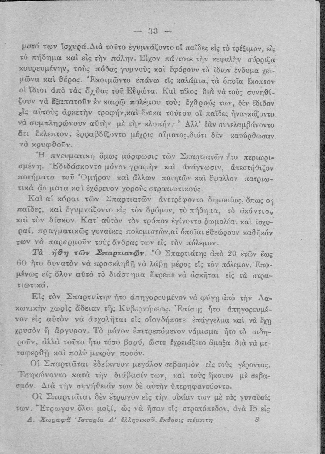 Μαθητικό βοήθημα Ιστορίας. Γ΄ και Δ΄ Δημοτικού Παρθεναγωγείου που καλύπτει το διάστημα από τους προϊστορικούς χρόνους ως τη μάχη της Μαντίνειας