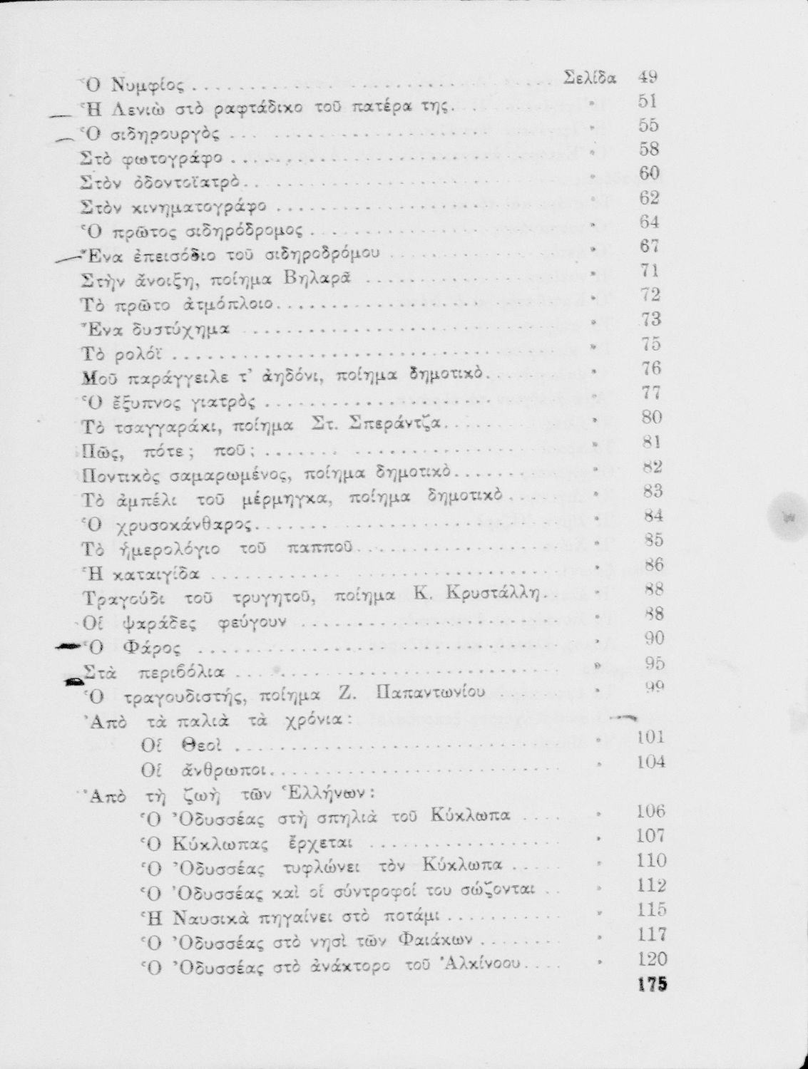Αναγνωστικό Ε΄ Δημοτικού που περιέχει πεζά και ποιήματα εμπνευσμένα από τη θρησκευτική, εθνική, κοινωνική ζωή καθώς και από τις ασχολίες των Ελλήνων, την αρχαία και σύγχρονη ελληνική ιστορία και τον πολιτισμό.