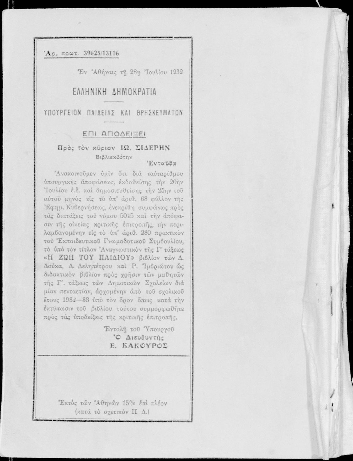 Υπουργική απόφαση / Σύμβαση: 39625/13116 /28-7-1932