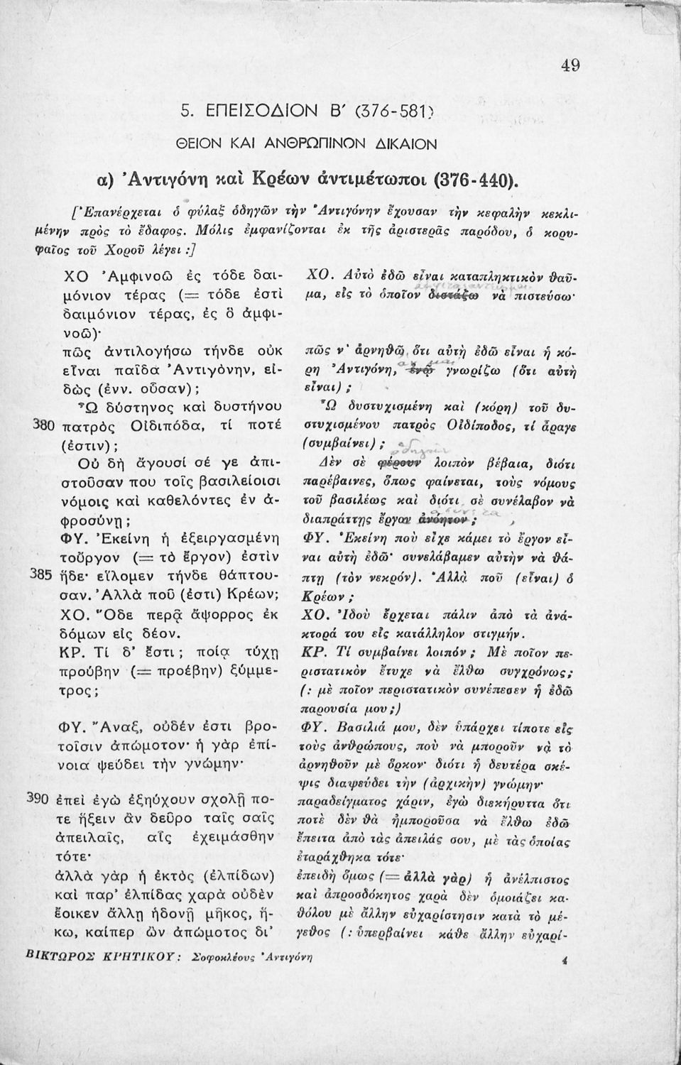Σοφοκλέους Αντιγόνη. Σχολικόν βοήθημα διά την Η΄ τάξιν των Οκταταξίων Γυμνασίων κατά το εγκεκριμένον βιβλίον του Οργανισμού Εκδόσεως Σχολικών Βιβλίων