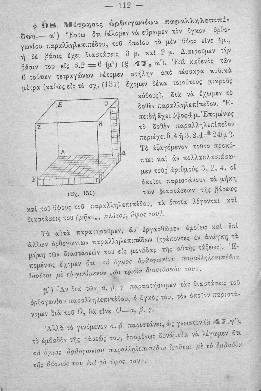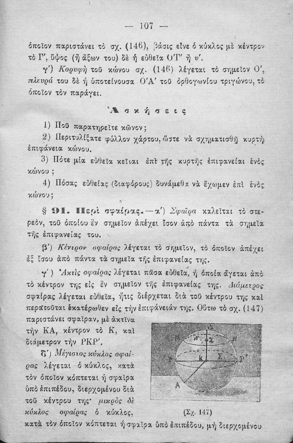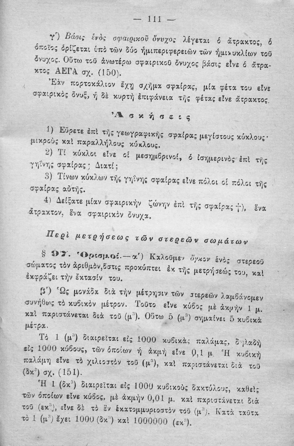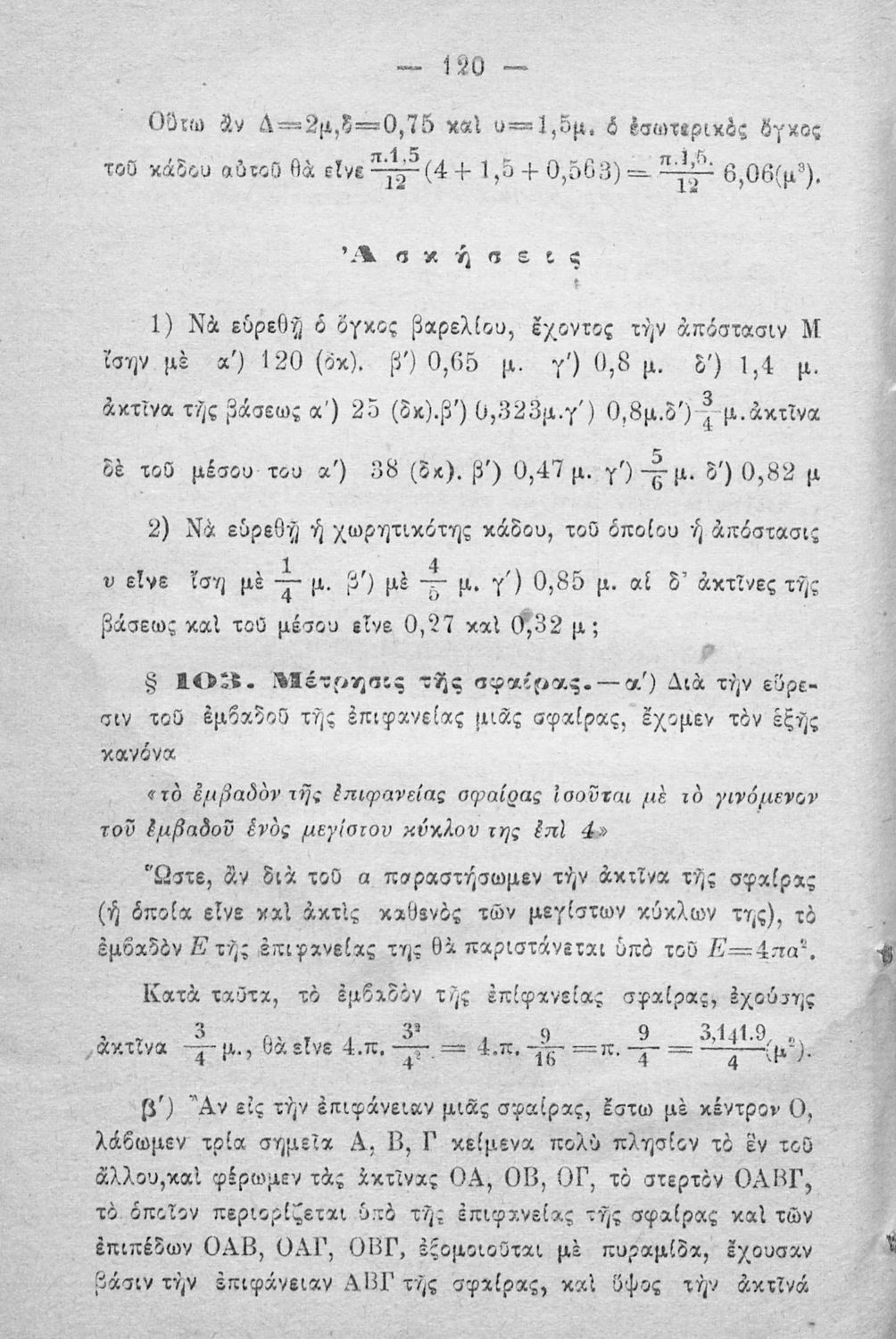 Σχολικό εγχειρίδιο Γεωμετρίας για τα Ελληνικά και Αστικά Σχολεία που περιέχει θεωρία και ασκήσεις και είναι χωρισμένο σε Επιπεδομετρία και Στερεομετρία.