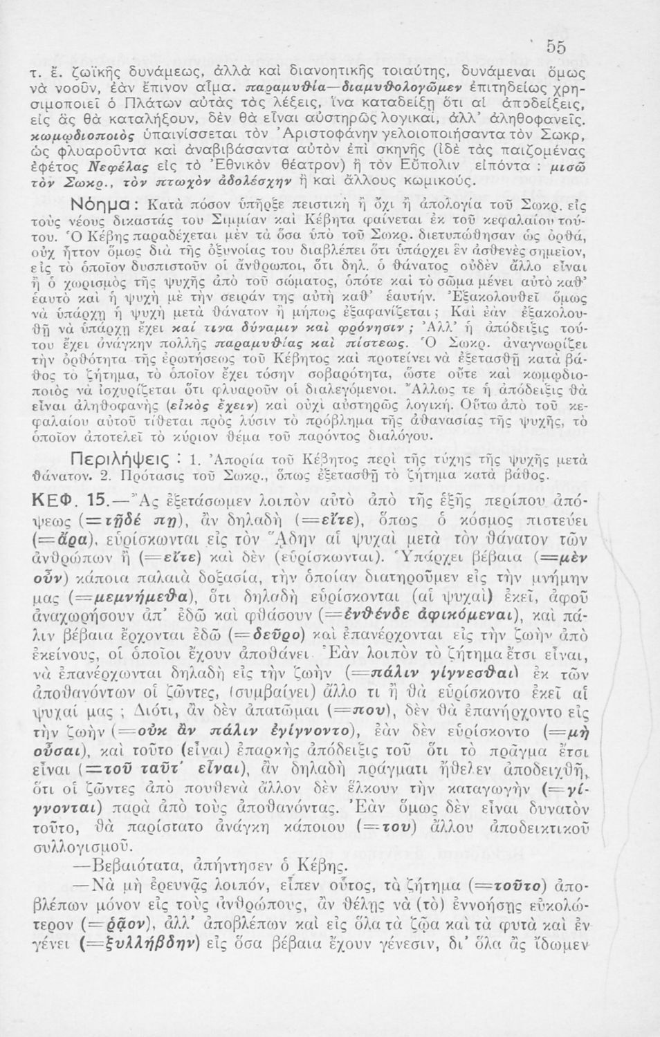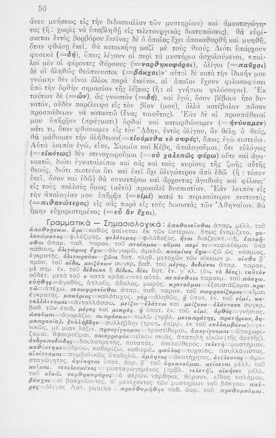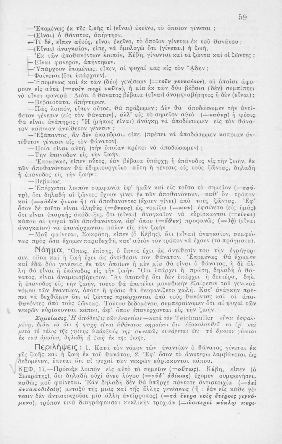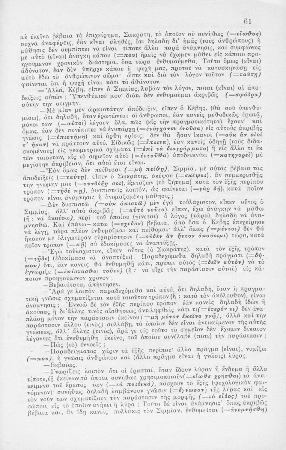 Μαθητικό βοήθημα Αρχαίων Ελληνικών για την Η' Γυμνασίου που περιλαμβάνει εισαγωγή και μετάφραση του Φαίδωνα του Πλάτωνα καθώς και ερμηνευτικά, γραμματικά και πραγματολογικά σχόλια.