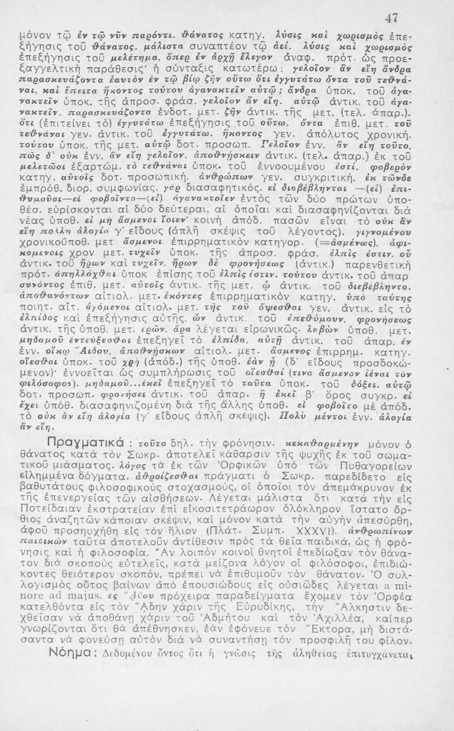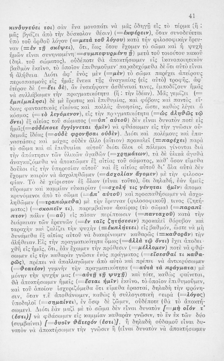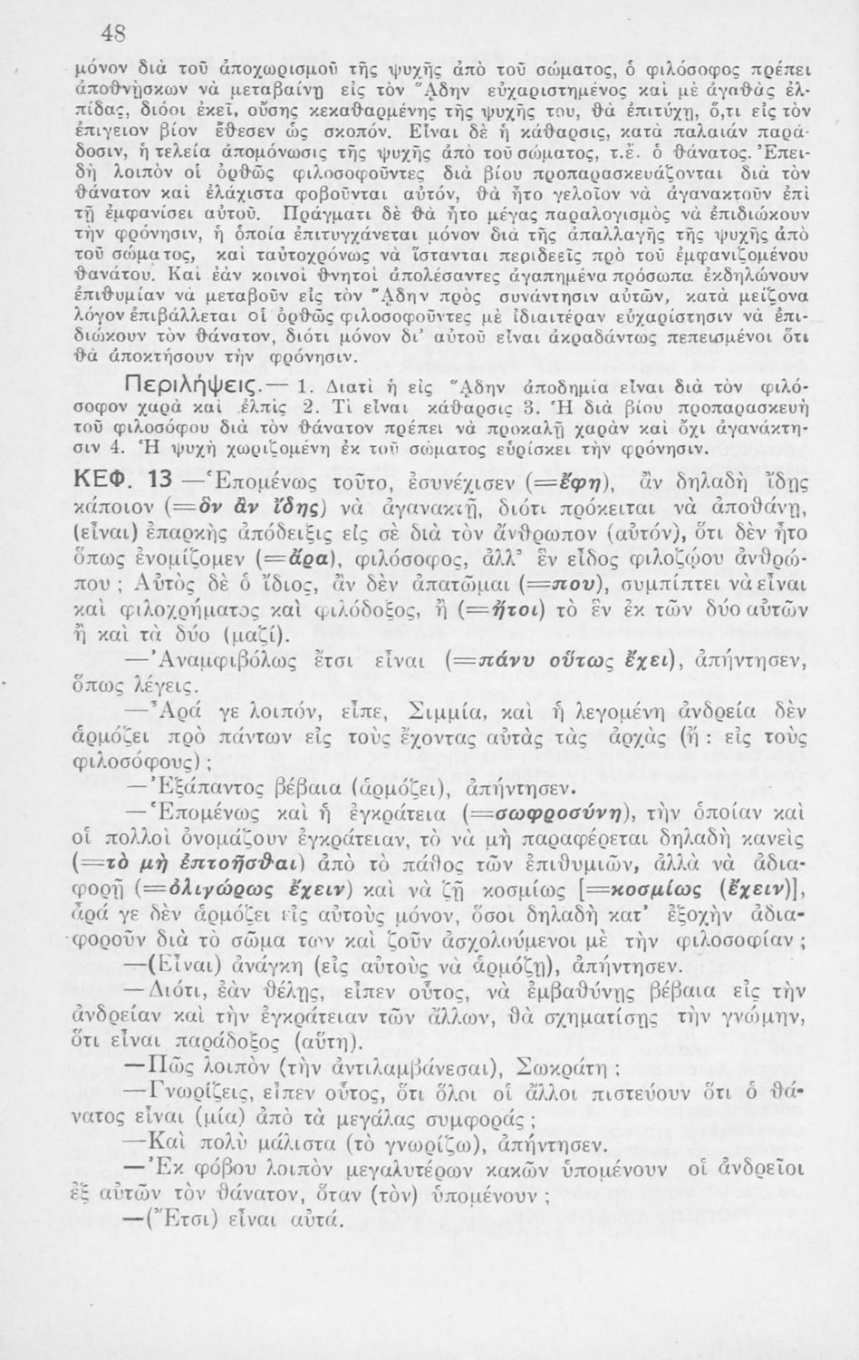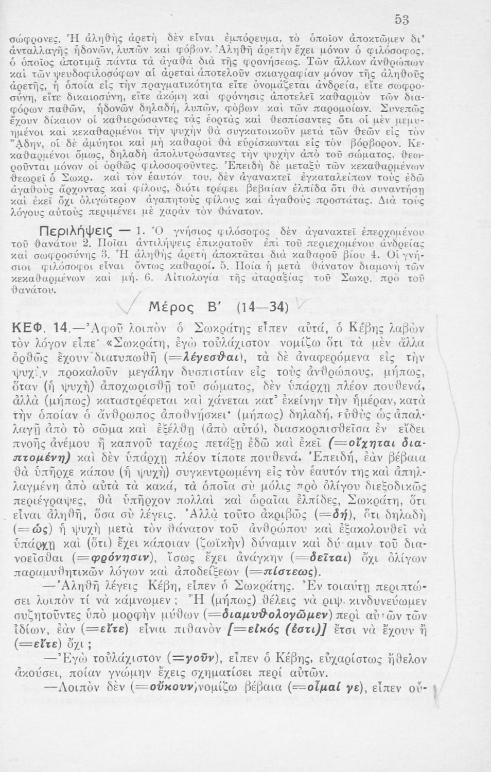 Μαθητικό βοήθημα Αρχαίων Ελληνικών για την Η' Γυμνασίου που περιλαμβάνει εισαγωγή και μετάφραση του Φαίδωνα του Πλάτωνα καθώς και ερμηνευτικά, γραμματικά και πραγματολογικά σχόλια.