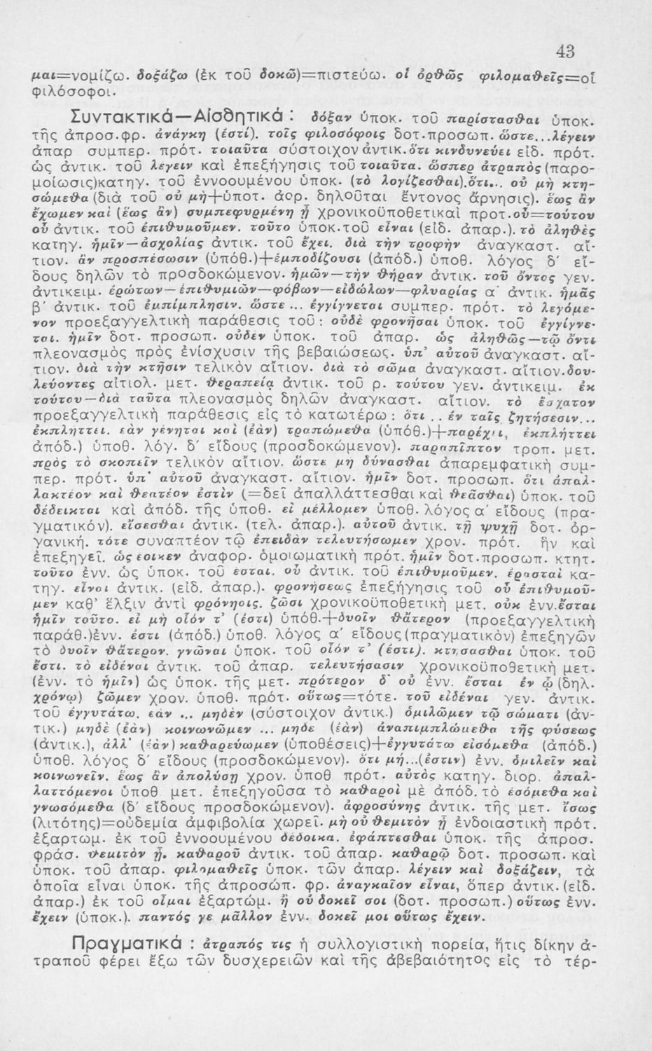 LDR 01203 2200193 4500 035 ## _a05-00229 040 ## _aΕργαστήρι Ιστορίας Ν.Ε. Εκπαίδευσης, Πανεπιστήμιο Ιωαννίνων 041 ## _ael 100 ## _aΓεώργιος Ν. Παπανικολάου 110 ## _a229 245 0# _aΠλάτωνος Φαίδων (Κεφ 1+34 και…63+67). Σχολικόν βοήθημα διά την Η΄ τάξιν των Οκταταξίων Γυμνασίων κατά το εγκεκριμένον βιβλίον του Οργανισμού Εκδόσεως Σχολικών Βιβλίων 260 ## _aΑθήνα _c1950 300 ## _a84 520 ## _aΜαθητικό βοήθημα Αρχαίων Ελληνικών για την Η' Γυμνασίου που περιλαμβάνει εισαγωγή και μετάφραση του Φαίδωνα του Πλάτωνα καθώς και ερμηνευτικά, γραμματικά και πραγματολογικά σχόλια. 521 ## _aΗ' Γυμνασίου 522 ## _aΕλλάδα 546 ## _aΑπλή καθαρεύουσα 563 ## _aΜαλακό Εξώφυλλο 650 #4 _aΠλάτων _aΦαίδων