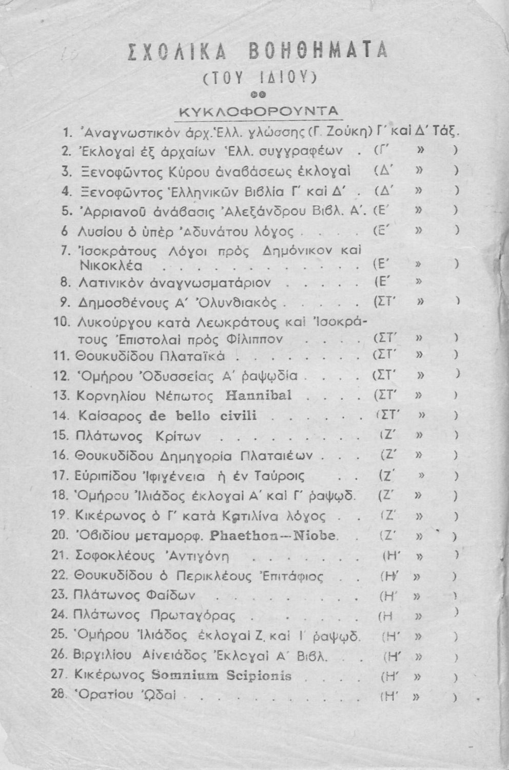 Τίτλος: Πλάτωνος Φαίδων (Κεφ 1+34 και…63+67). Σχολικόν βοήθημα διά την Η΄ τάξιν των Οκταταξίων Γυμνασίων κατά το εγκεκριμένον βιβλίον του Οργανισμού Εκδόσεως Σχολικών Βιβλίων