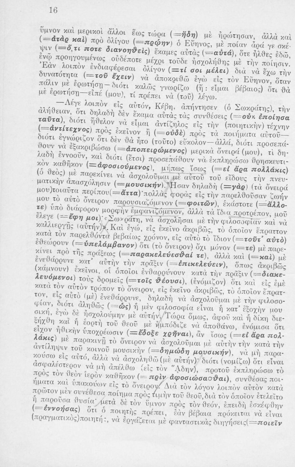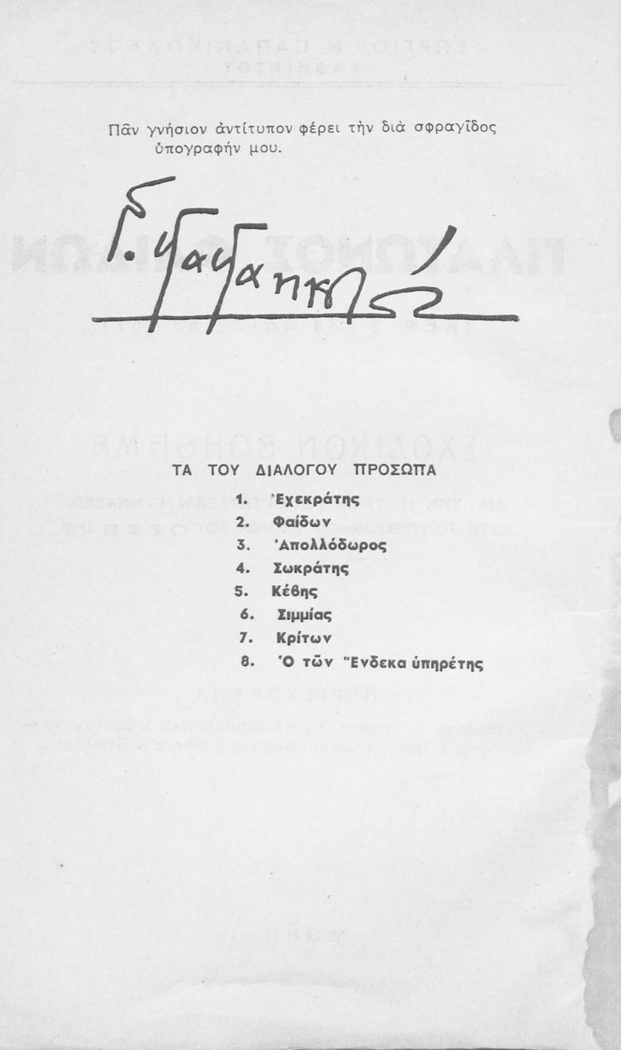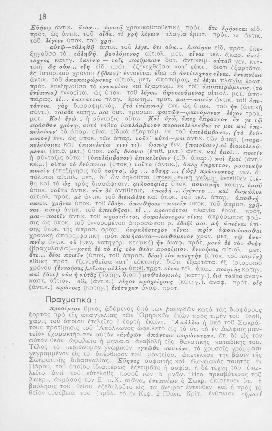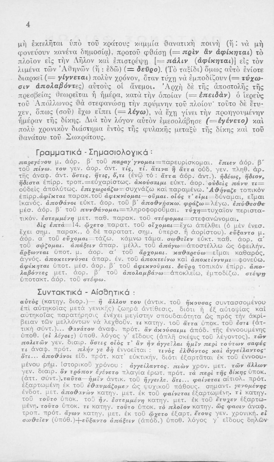 Μαθητικό βοήθημα Αρχαίων Ελληνικών για την Η' Γυμνασίου που περιλαμβάνει εισαγωγή και μετάφραση του Φαίδωνα του Πλάτωνα καθώς και ερμηνευτικά, γραμματικά και πραγματολογικά σχόλια.
