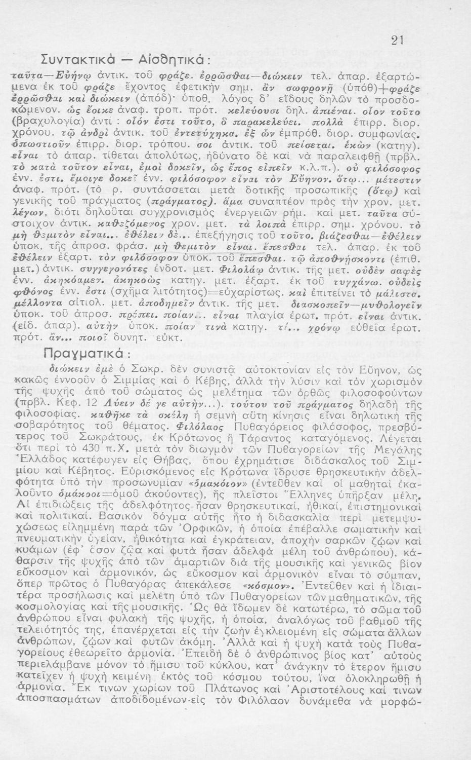LDR 01203 2200193 4500 035 ## _a05-00229 040 ## _aΕργαστήρι Ιστορίας Ν.Ε. Εκπαίδευσης, Πανεπιστήμιο Ιωαννίνων 041 ## _ael 100 ## _aΓεώργιος Ν. Παπανικολάου 110 ## _a229 245 0# _aΠλάτωνος Φαίδων (Κεφ 1+34 και…63+67). Σχολικόν βοήθημα διά την Η΄ τάξιν των Οκταταξίων Γυμνασίων κατά το εγκεκριμένον βιβλίον του Οργανισμού Εκδόσεως Σχολικών Βιβλίων 260 ## _aΑθήνα _c1950 300 ## _a84 520 ## _aΜαθητικό βοήθημα Αρχαίων Ελληνικών για την Η' Γυμνασίου που περιλαμβάνει εισαγωγή και μετάφραση του Φαίδωνα του Πλάτωνα καθώς και ερμηνευτικά, γραμματικά και πραγματολογικά σχόλια. 521 ## _aΗ' Γυμνασίου 522 ## _aΕλλάδα 546 ## _aΑπλή καθαρεύουσα 563 ## _aΜαλακό Εξώφυλλο 650 #4 _aΠλάτων _aΦαίδων