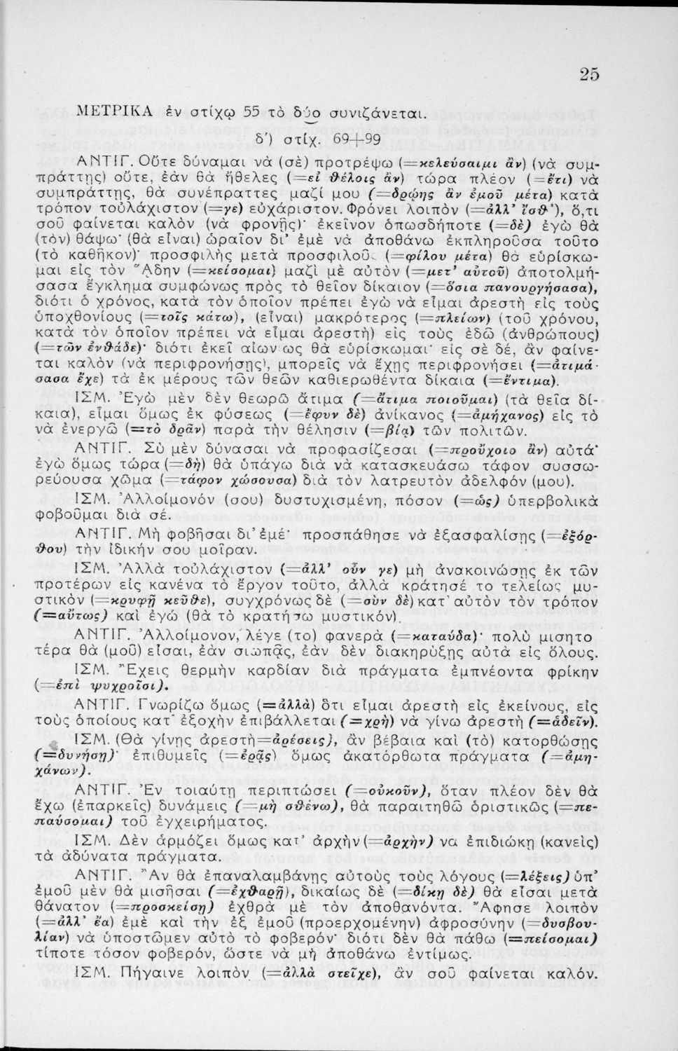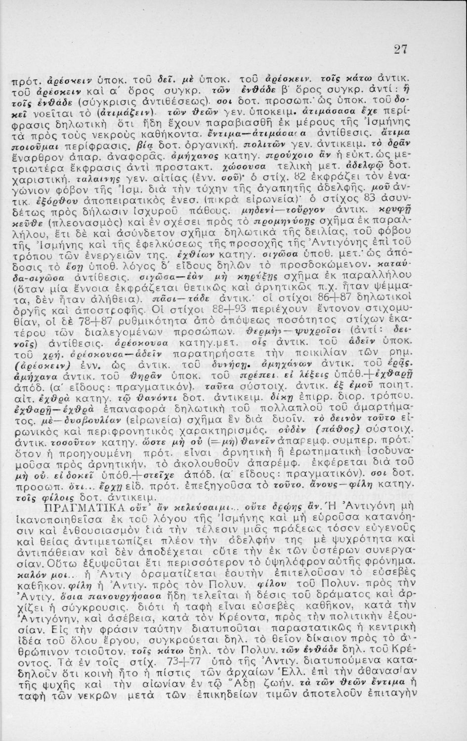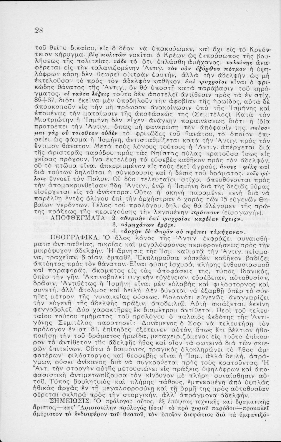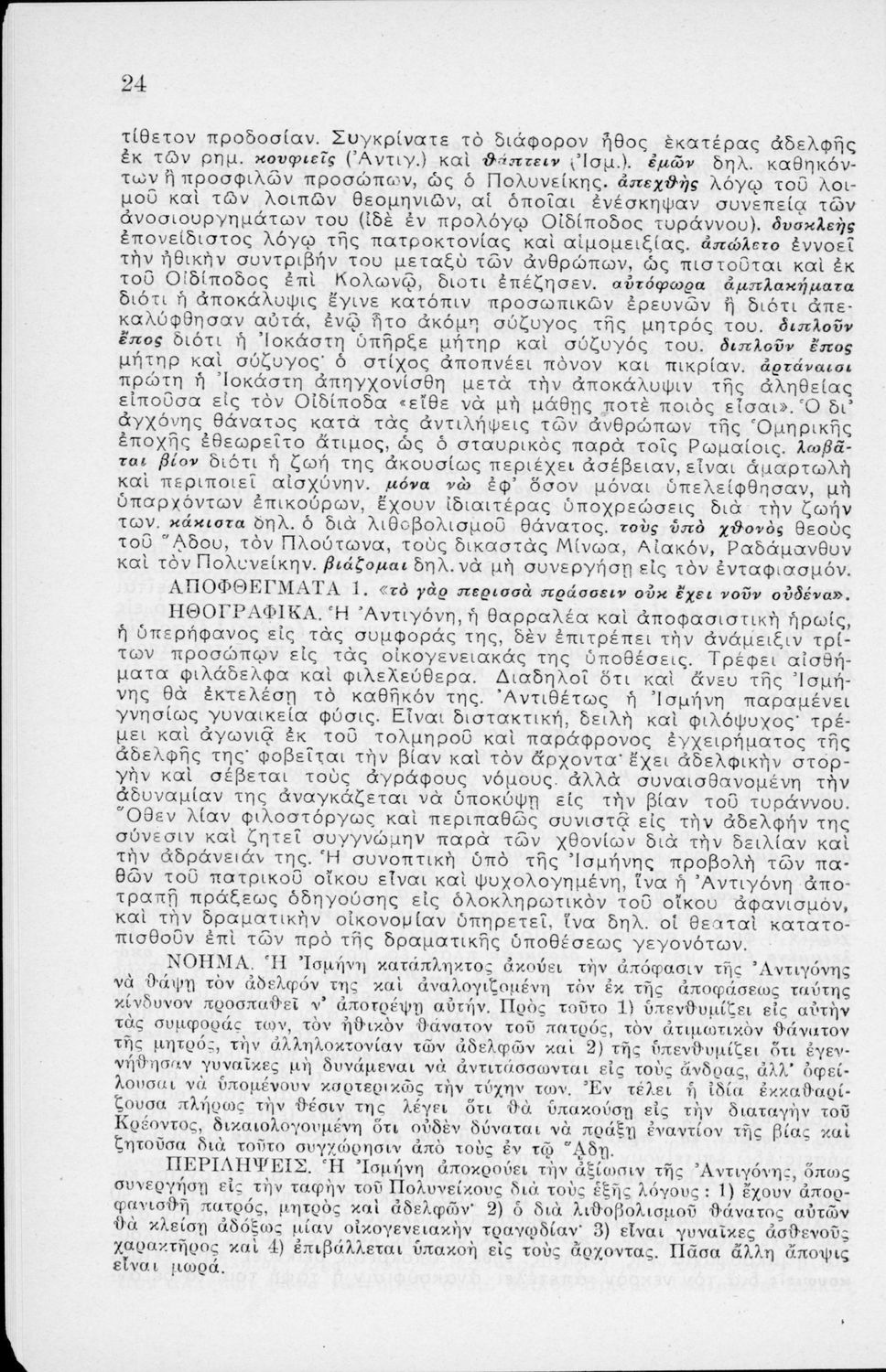 Μαθητικό βοήθημα Αρχαίων Ελληνικών για τους μαθητές της Η' Γυμνασίου που περιλαμβάνει εισαγωγή στην Αντιγόνη του Σοφοκλή, ανάλυση του έργου, μετάφραση και ερμηνευτικά και πραγματολογικά σχόλια.