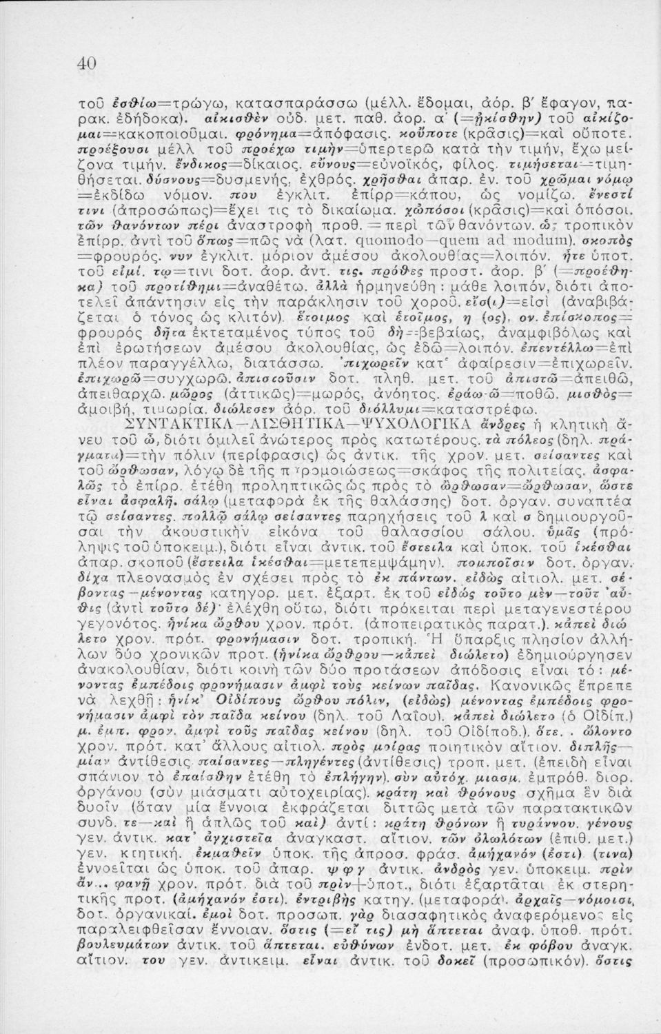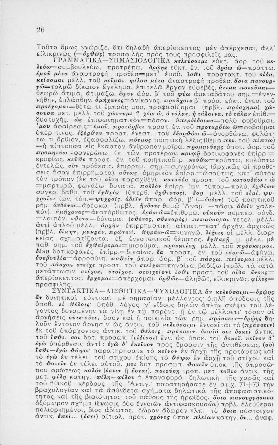 Βαθμίδα εκπαίδευσης: Δευτεροβάθμια Τάξη: Η' Γυμνασίου Μάθημα: Αρχαία Ελληνικά Γλώσσα: Απλή καθαρεύουσα Παρουσίαση περιεχομένου: Μαθητικό βοήθημα Αρχαίων Ελληνικών για τους μαθητές της Η' Γυμνασίου που περιλαμβάνει εισαγωγή στην Αντιγόνη του Σοφοκλή, ανάλυση του έργου, μετάφραση και ερμηνευτικά και πραγματολογικά σχόλια. |