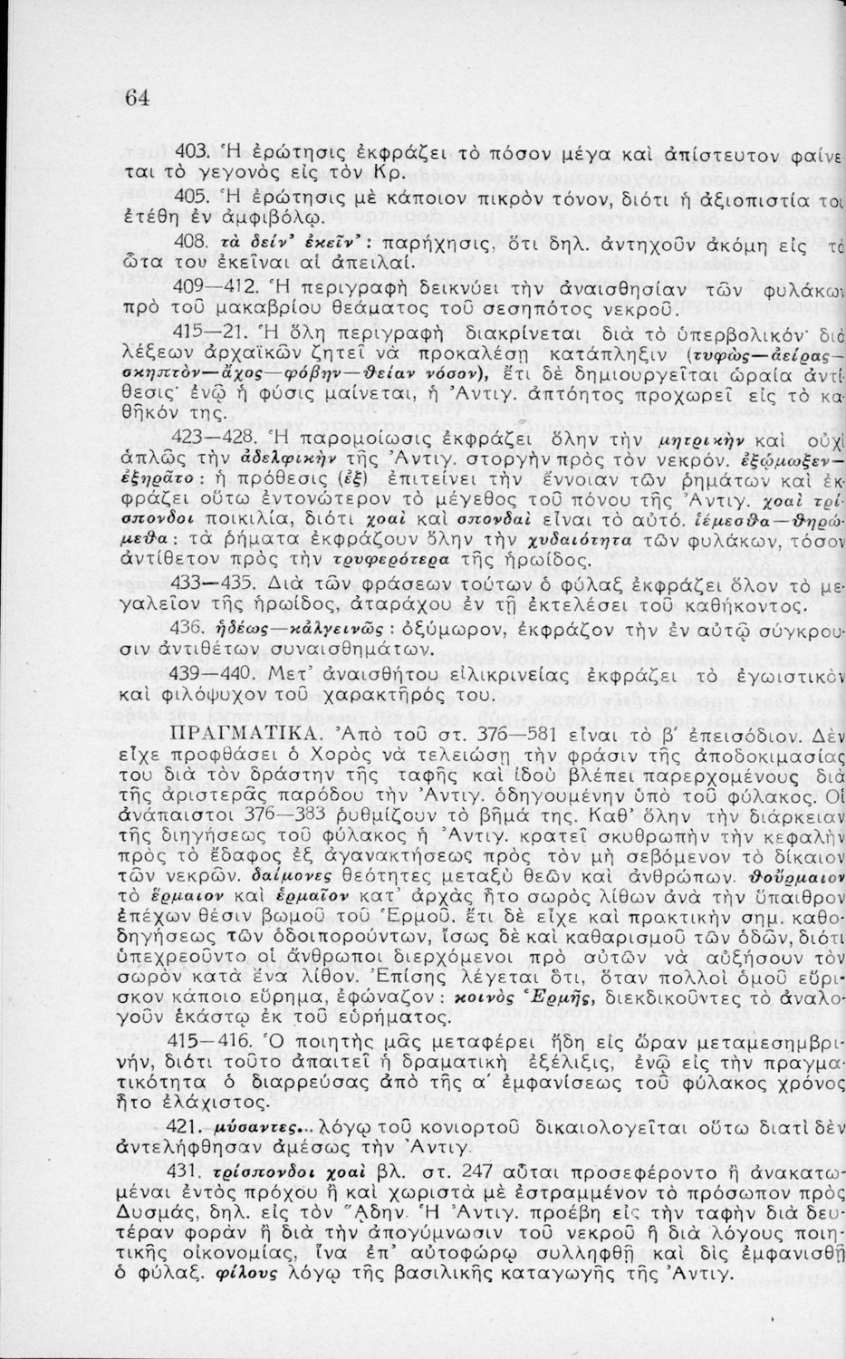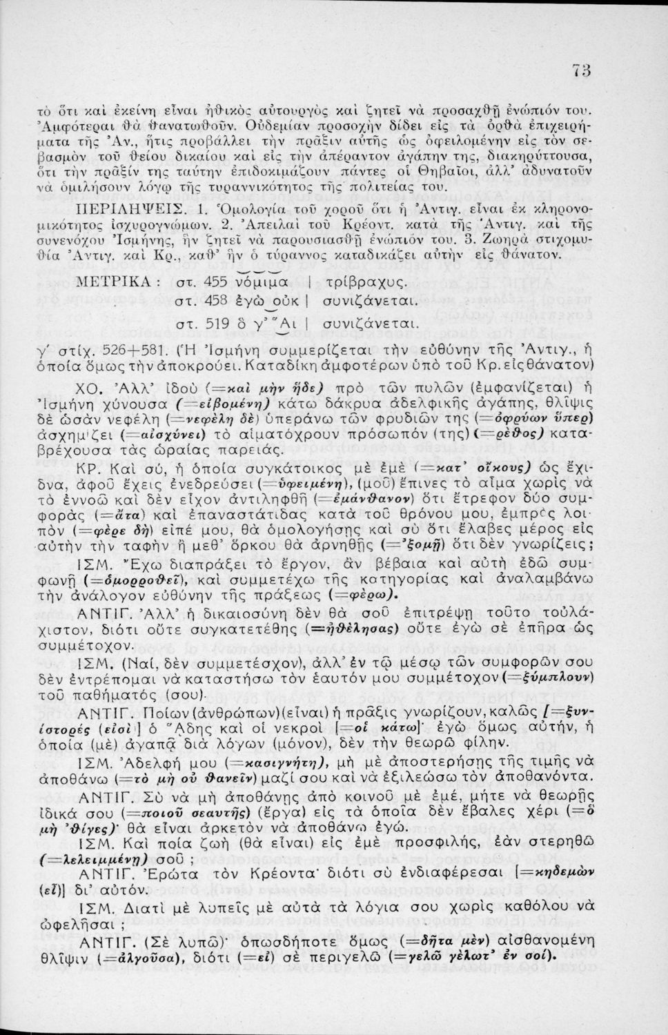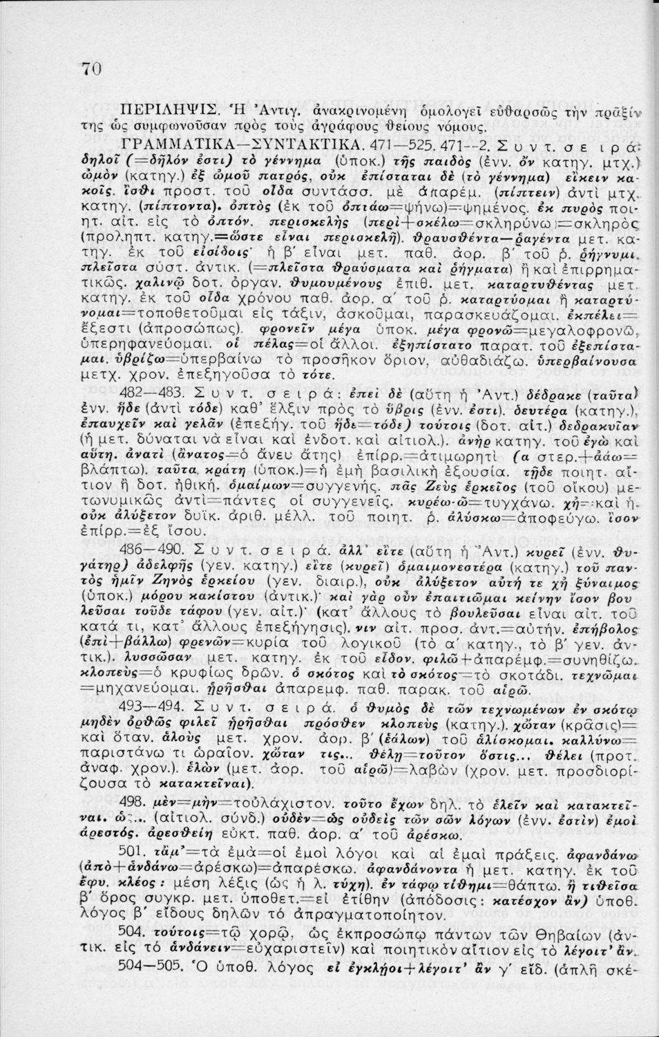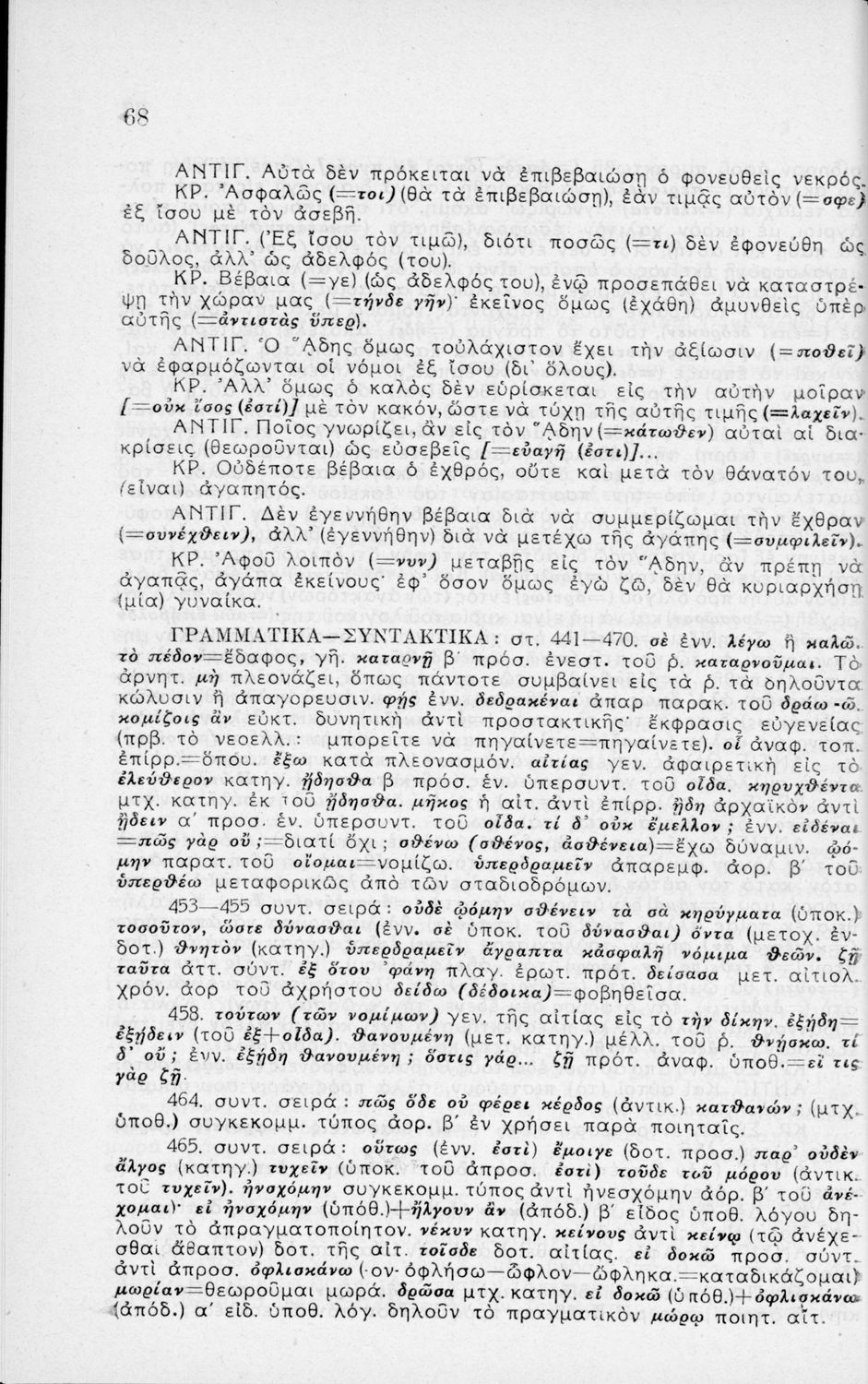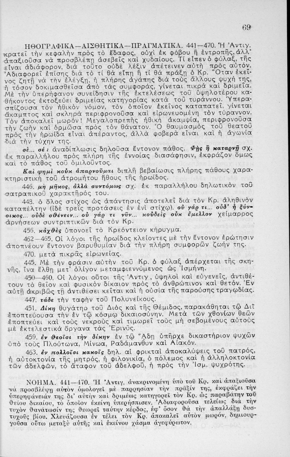 Σοφοκλέους Αντιγόνη. Σχολικόν βοήθημα διά την Η΄ τάξιν των Οκταταξίων Γυμνασίων κατά το εγκεκριμένον βιβλίον του Οργανισμού Εκδόσεως Σχολικών Βιβλίων
