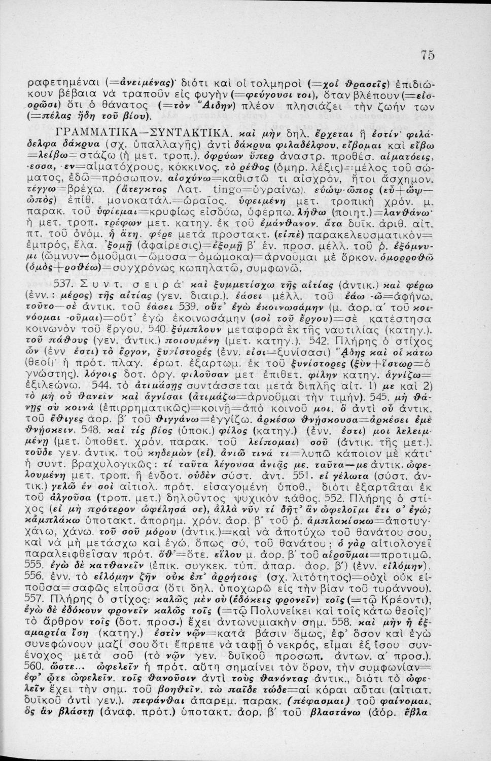 Μαθητικό βοήθημα Αρχαίων Ελληνικών για την Η' Γυμνασίου που περιλαμβάνει εισαγωγή και μετάφραση της Αντιγόνης του Σοφοκλή καθώς και ερμηνευτικά, γραμματικά και πραγματολογικά σχόλια.