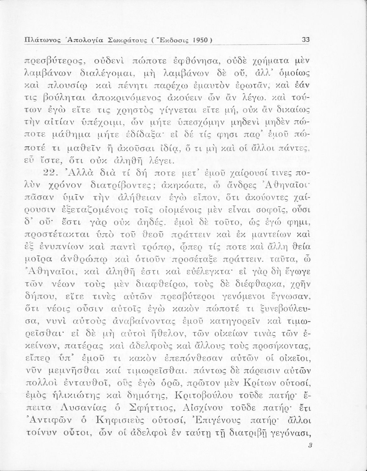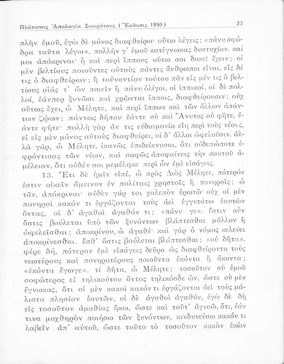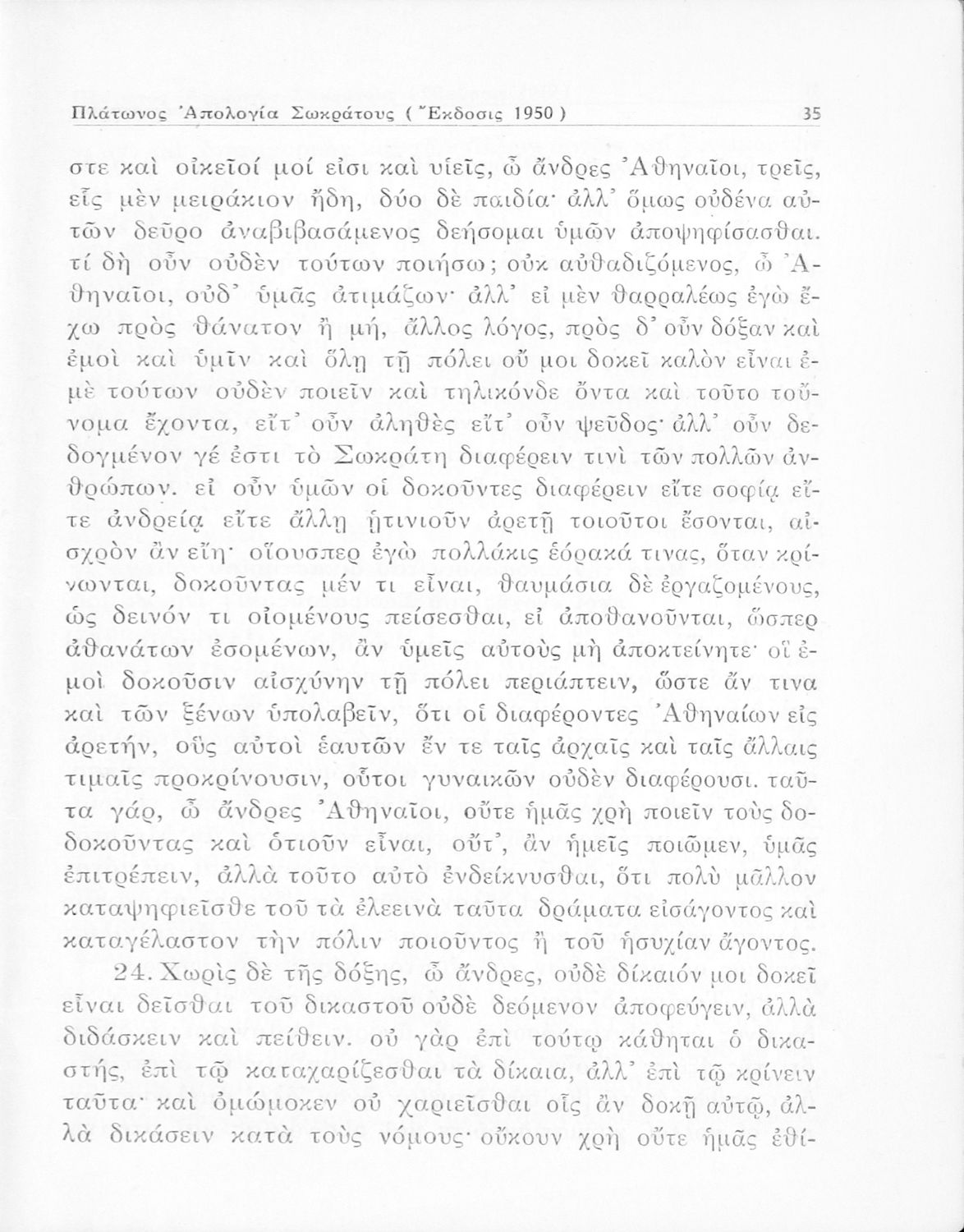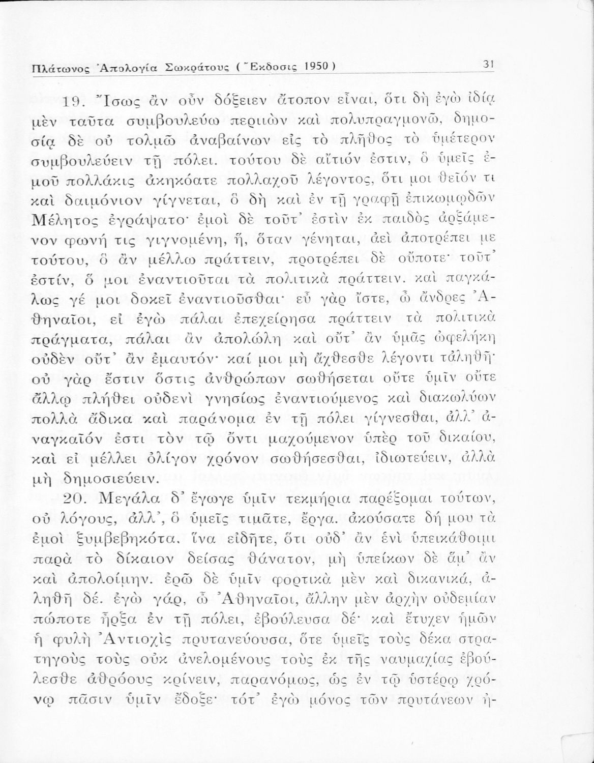 Σχολικό εγχειρίδιο Αρχαίων Ελληνικών για την Ε΄ Γυμνάσιου που περιέχει σύντομο βιογραφικό σημείωμα του Πλάτωνα, εισαγωγή στο έργο, κείμενο, ερμηνευτικά και πραγματολογικά σχόλια και λεξιλογικές παρατηρήσεις.
