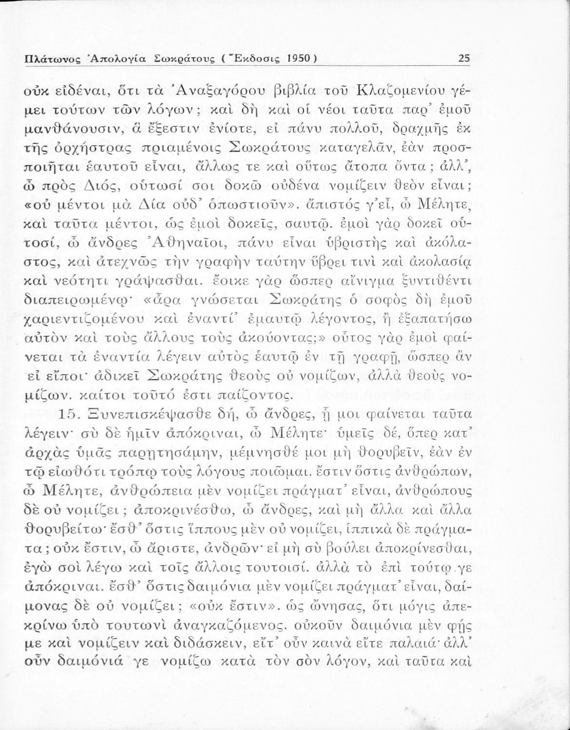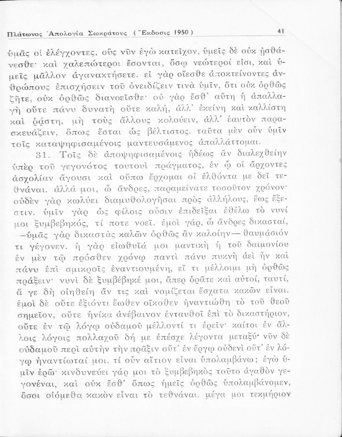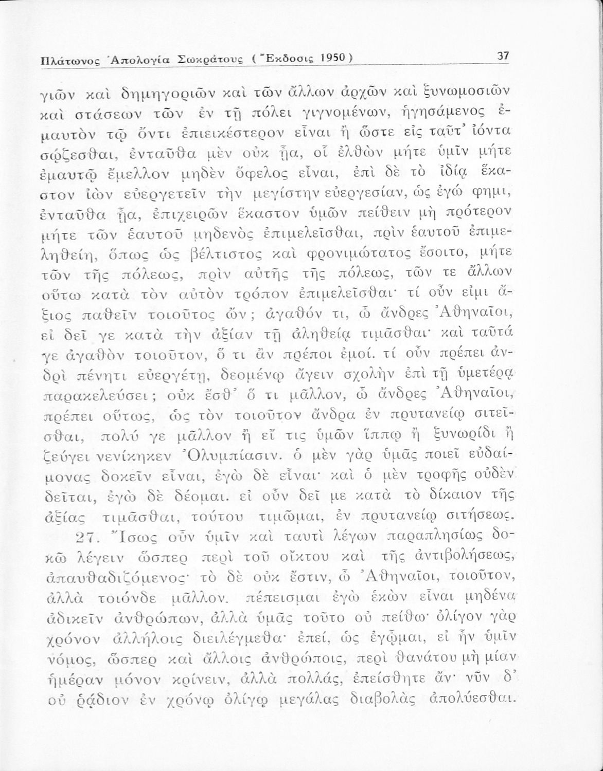 Σχολικό εγχειρίδιο Αρχαίων Ελληνικών για την Ε΄ Γυμνάσιου που περιέχει σύντομο βιογραφικό σημείωμα του Πλάτωνα, εισαγωγή στο έργο, κείμενο, ερμηνευτικά και πραγματολογικά σχόλια και λεξιλογικές παρατηρήσεις.