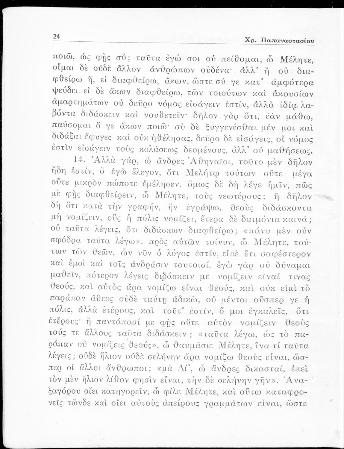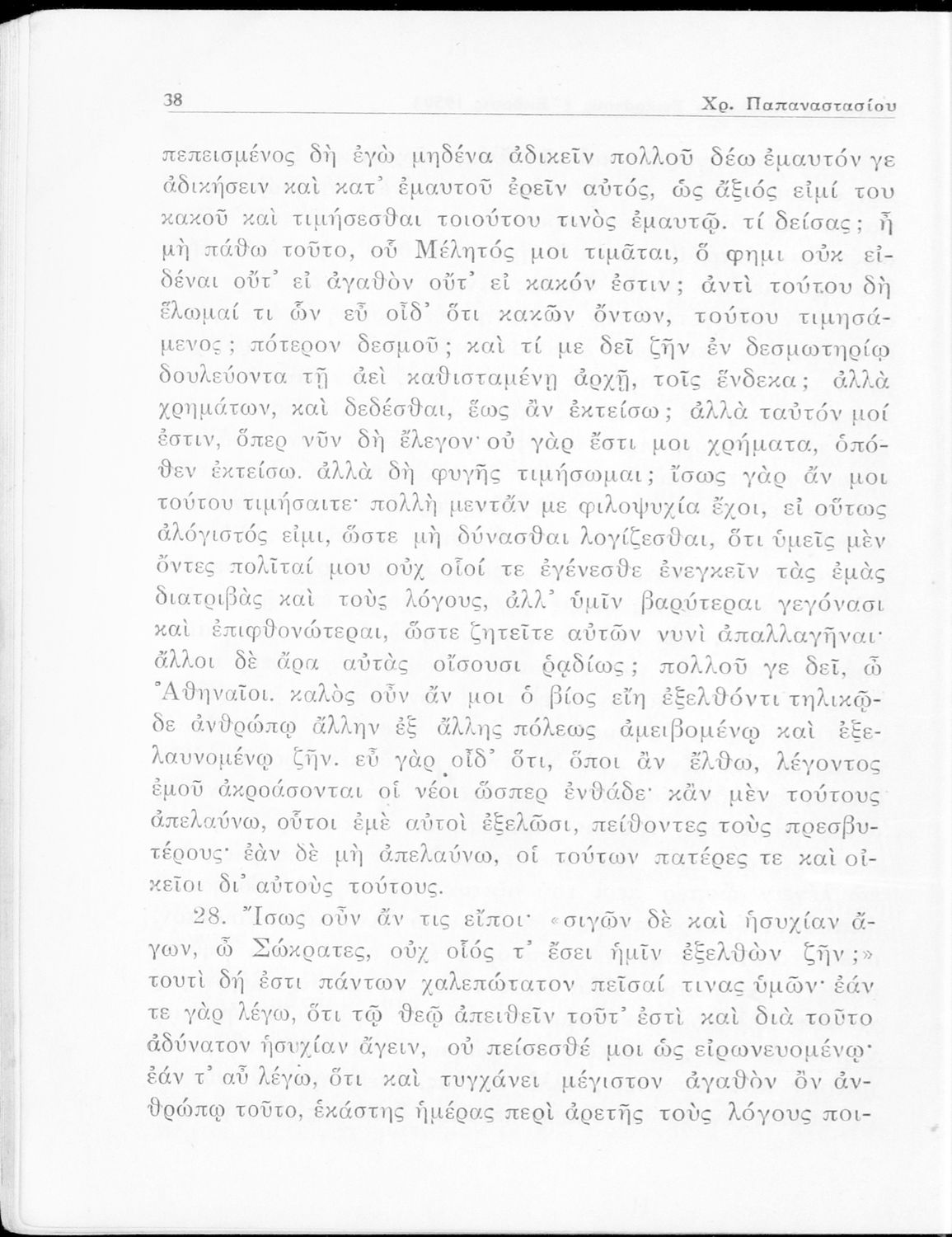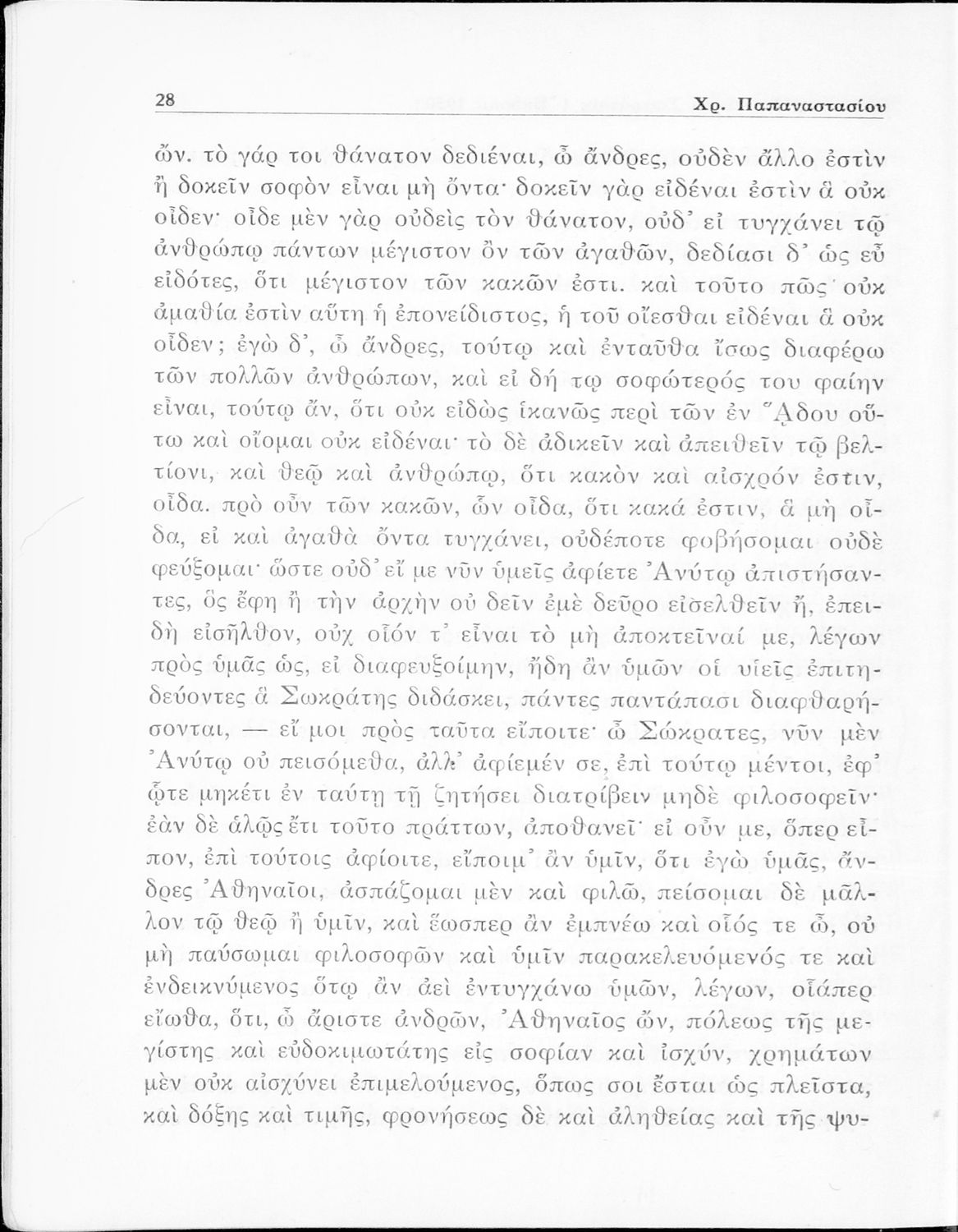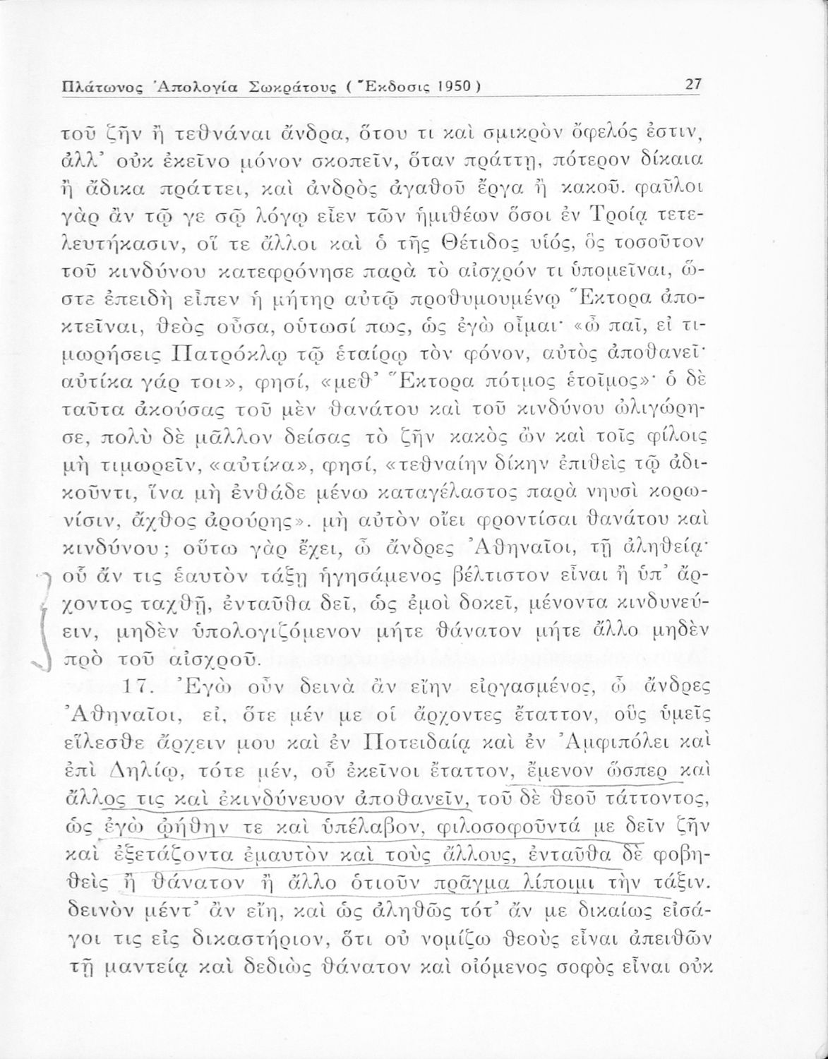 Σχολικό εγχειρίδιο Αρχαίων Ελληνικών για την Ε΄ Γυμνάσιου που περιέχει σύντομο βιογραφικό σημείωμα του Πλάτωνα, εισαγωγή στο έργο, κείμενο, ερμηνευτικά και πραγματολογικά σχόλια και λεξιλογικές παρατηρήσεις.
