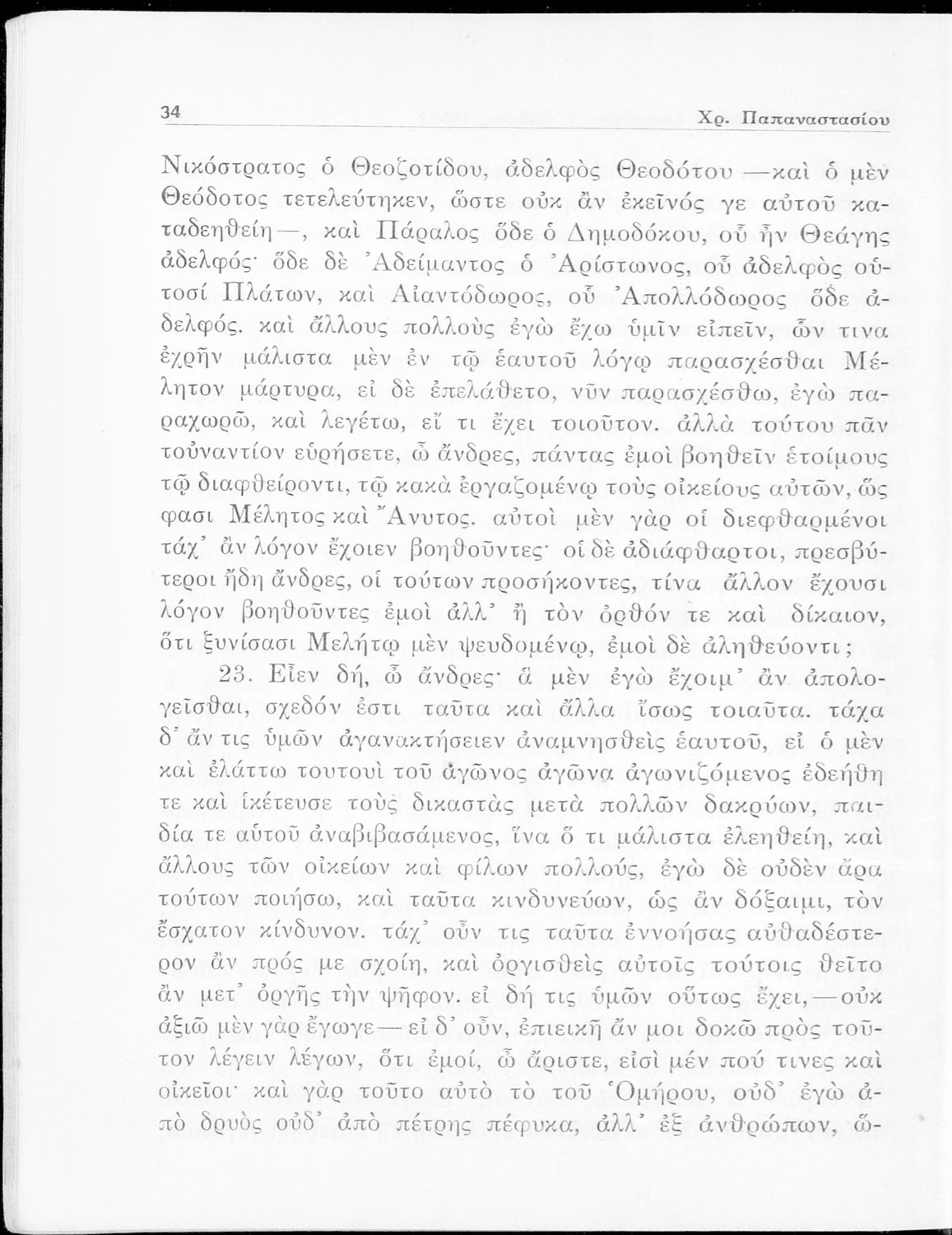 LDR 01216 2200181 4500 035 ## _a05-00231 040 ## _aΕργαστήρι Ιστορίας Ν.Ε. Εκπαίδευσης, Πανεπιστήμιο Ιωαννίνων 041 ## _ael 100 ## _aΠλάτων _aΧρίστος Α. Παπαναστασίου (σχόλια) 110 ## _a231 245 0# _aΠλάτωνος Απολογία Σωκράτους Κρίτων δια την Ε΄ τάξιν των Γυμνασίων 260 ## _aΑθήνα _bΟργανισμός Εκδόσεως Σχολικών Βιβλίων _c1950 300 ## _a96 _bΣκίτσο (ασπρόμαυρο) 520 ## _aΣχολικό εγχειρίδιο Αρχαίων Ελληνικών για την Ε΄ Γυμνάσιου που περιέχει σύντομο βιογραφικό σημείωμα του Πλάτωνα, εισαγωγή στο έργο, κείμενο, ερμηνευτικά και πραγματολογικά σχόλια και λεξιλογικές παρατηρήσεις. 521 ## _aΕ' Γυμνασίου 522 ## _aΕλλάδα 546 ## _aΚαθαρεύουσα 650 #4 _aΑπολογία _aΚριτών _aΠλάτωνας _aΡητορική _aΣοφιστές