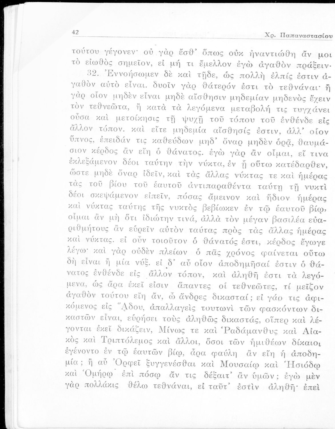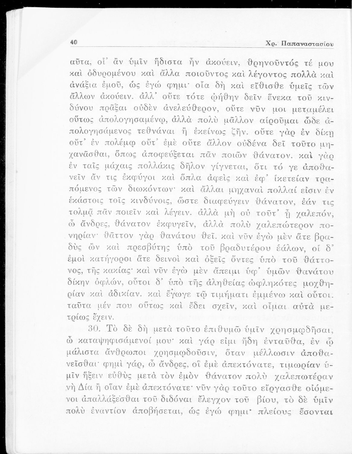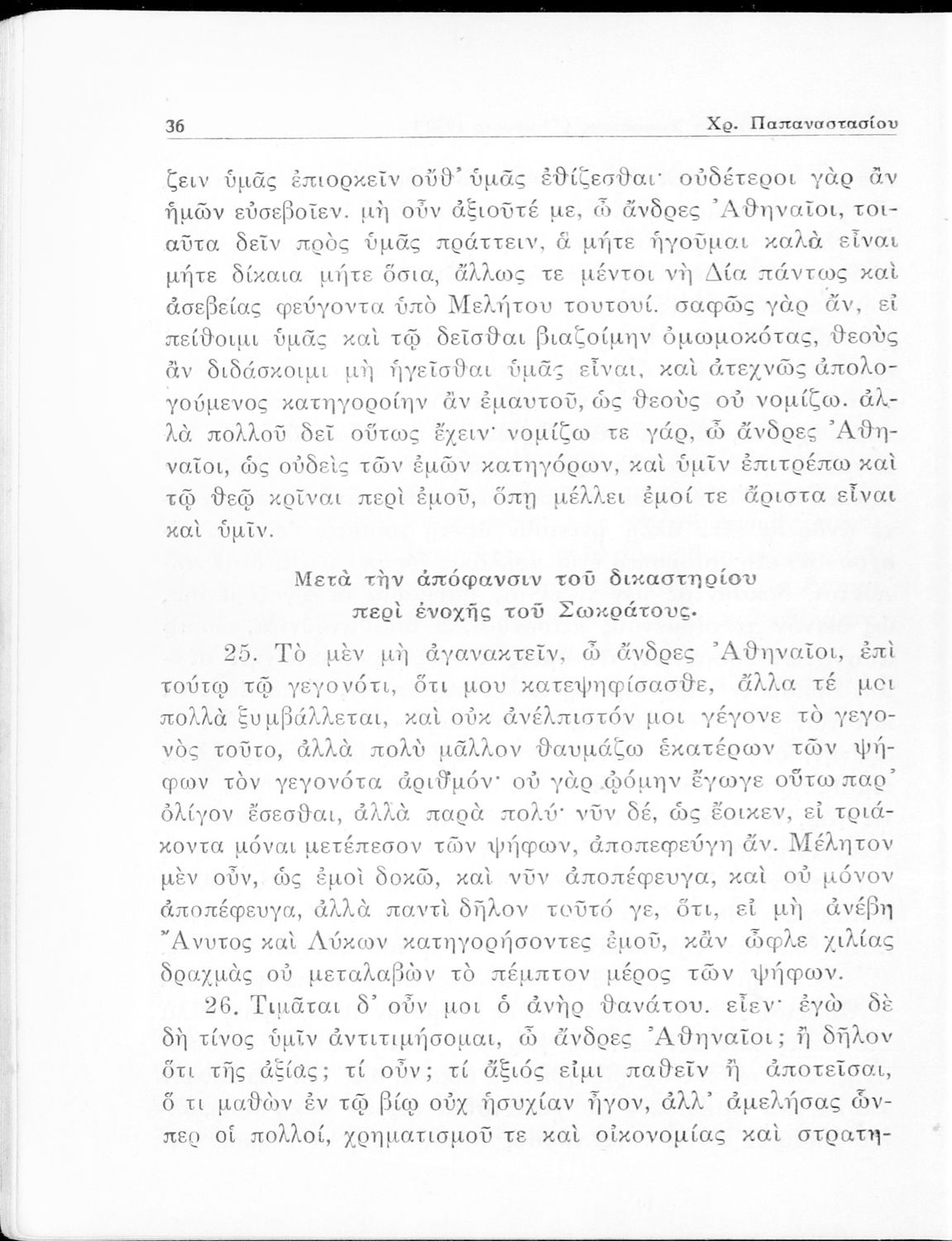 Κωδικός αναγνώρισης: 05-00231 Τίτλος: Πλάτωνος Απολογία Σωκράτους Κρίτων δια την Ε΄ τάξιν των Γυμνασίων Συγγραφέας: Πλάτων, Χρίστος Α. Παπαναστασίου (σχόλια) Μέγεθος και υπόστρωμα: Σχολικό εγχειρίδιο, 96 σελίδες. Σκίτσο (ασπρόμαυρο). |