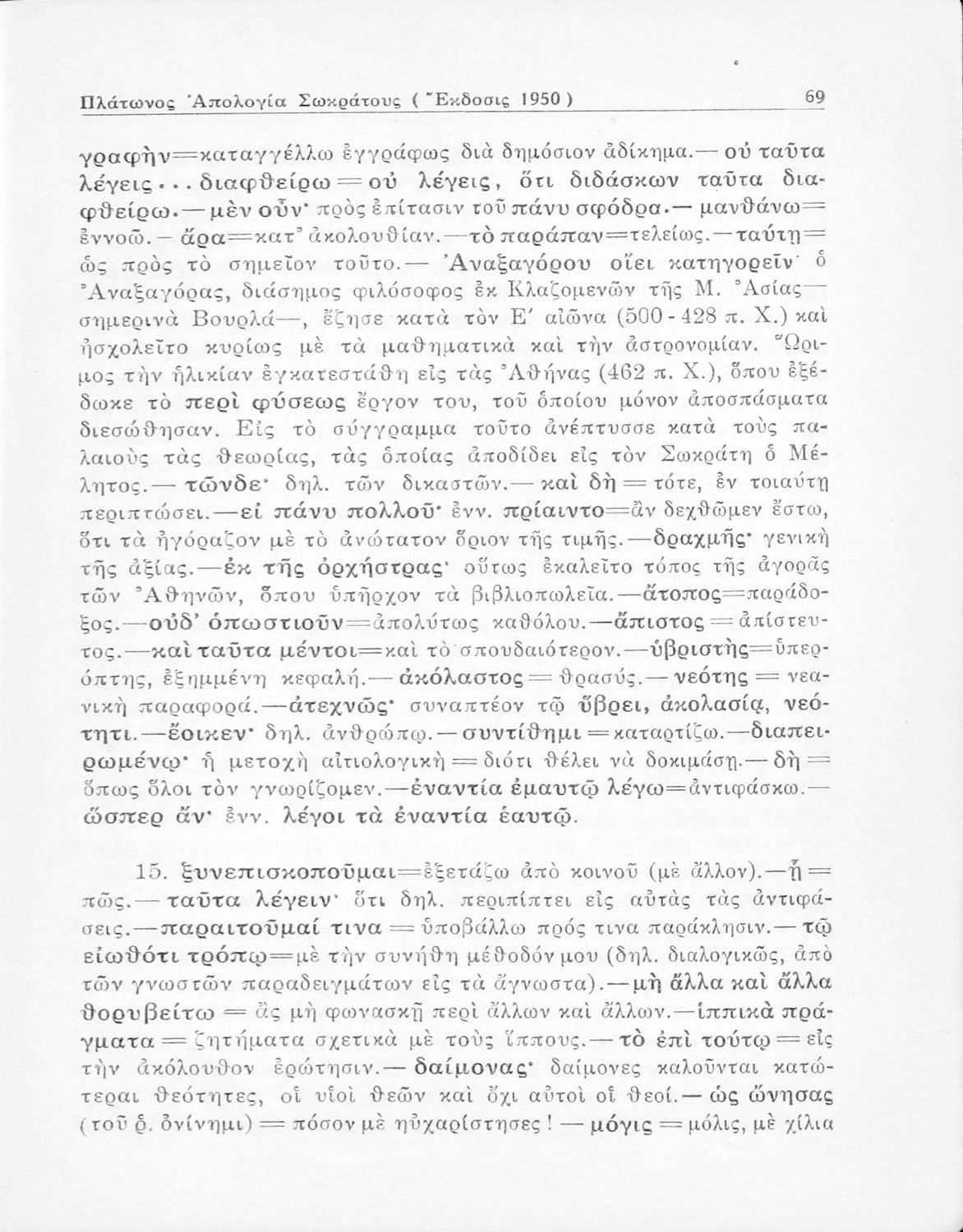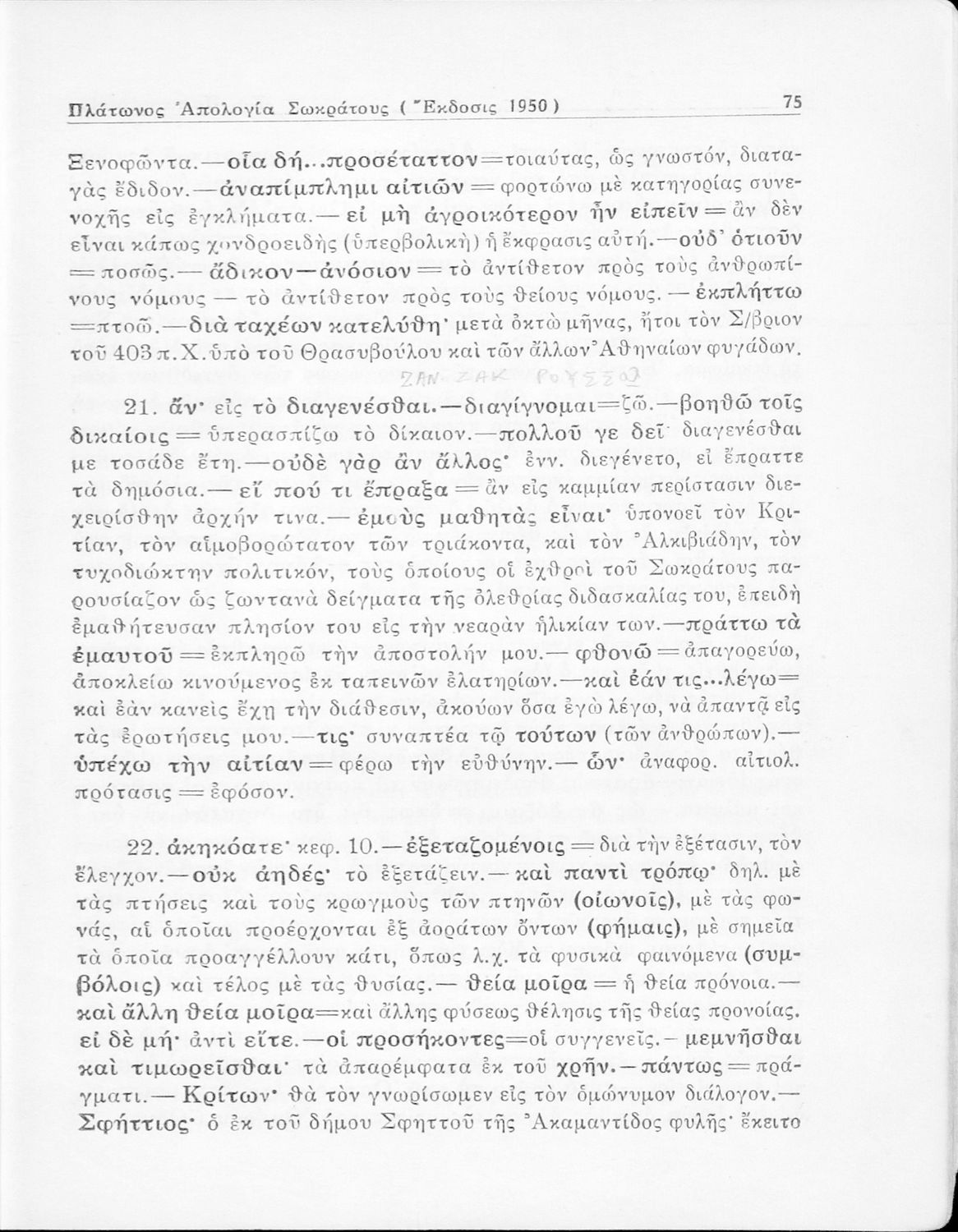520 ## _aΣχολικό εγχειρίδιο Αρχαίων Ελληνικών για την Ε΄ Γυμνάσιου που περιέχει σύντομο βιογραφικό σημείωμα του Πλάτωνα, εισαγωγή στο έργο, κείμενο, ερμηνευτικά και πραγματολογικά σχόλια και λεξιλογικές παρατηρήσεις.