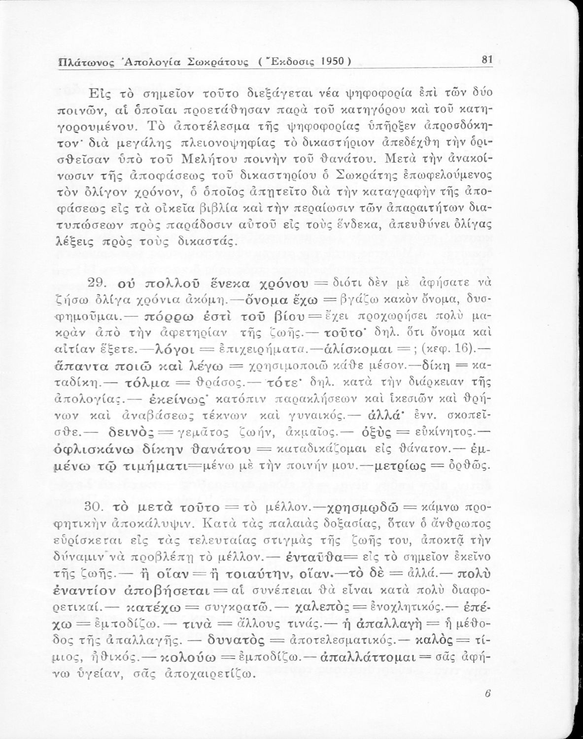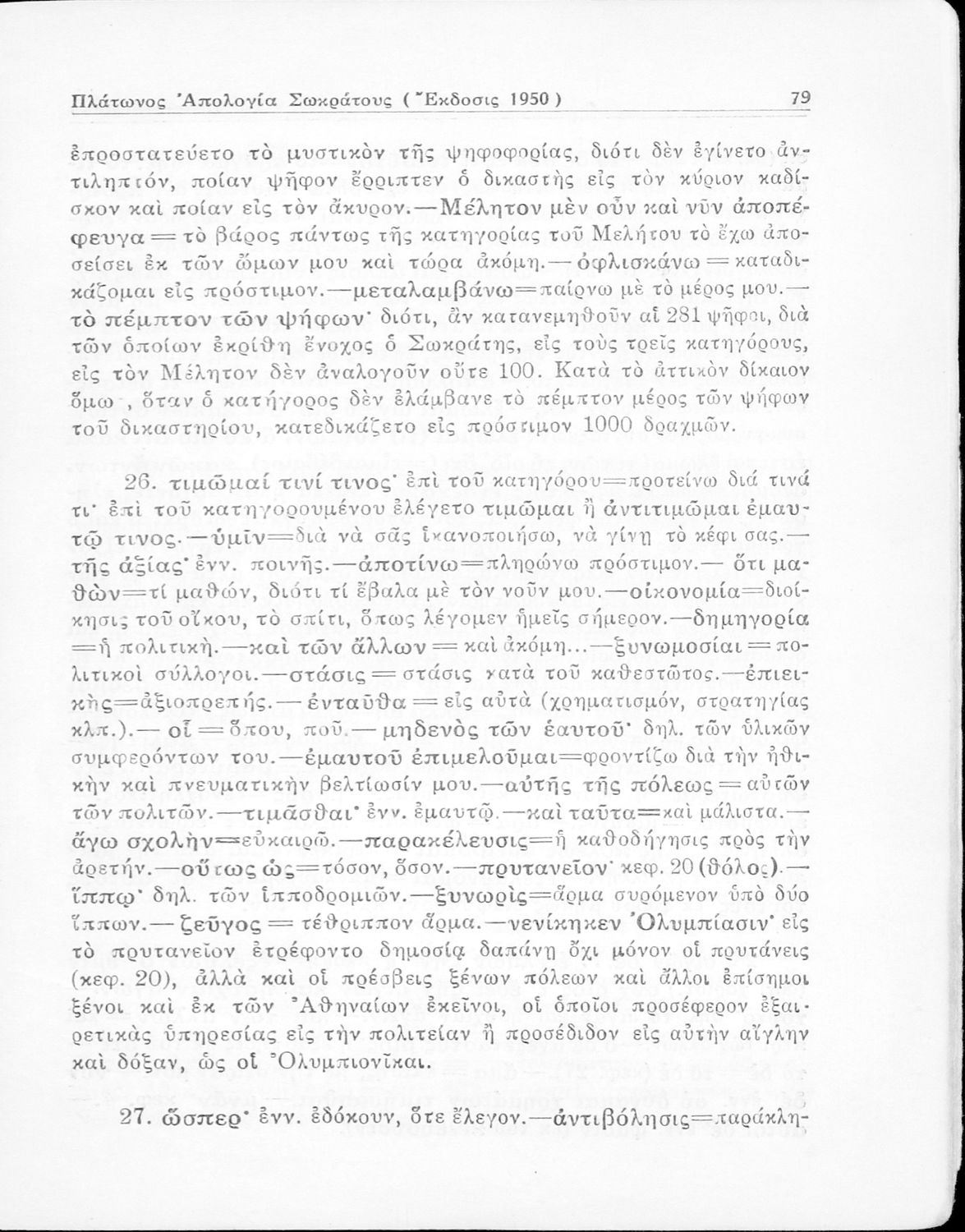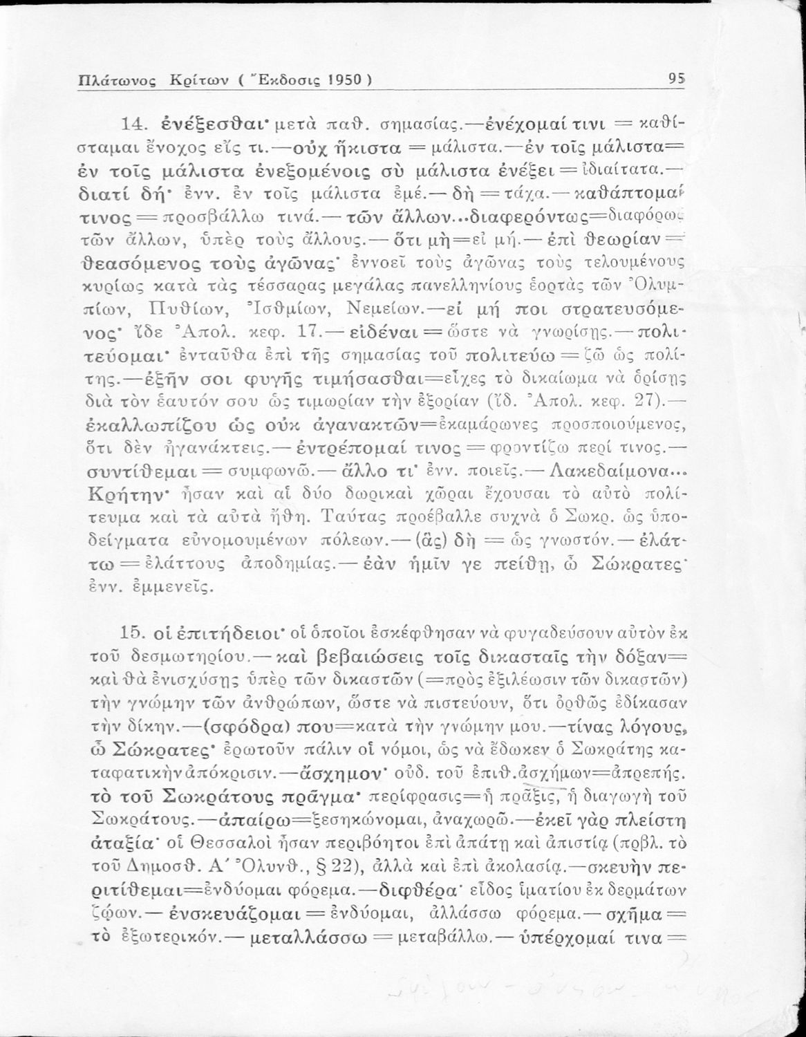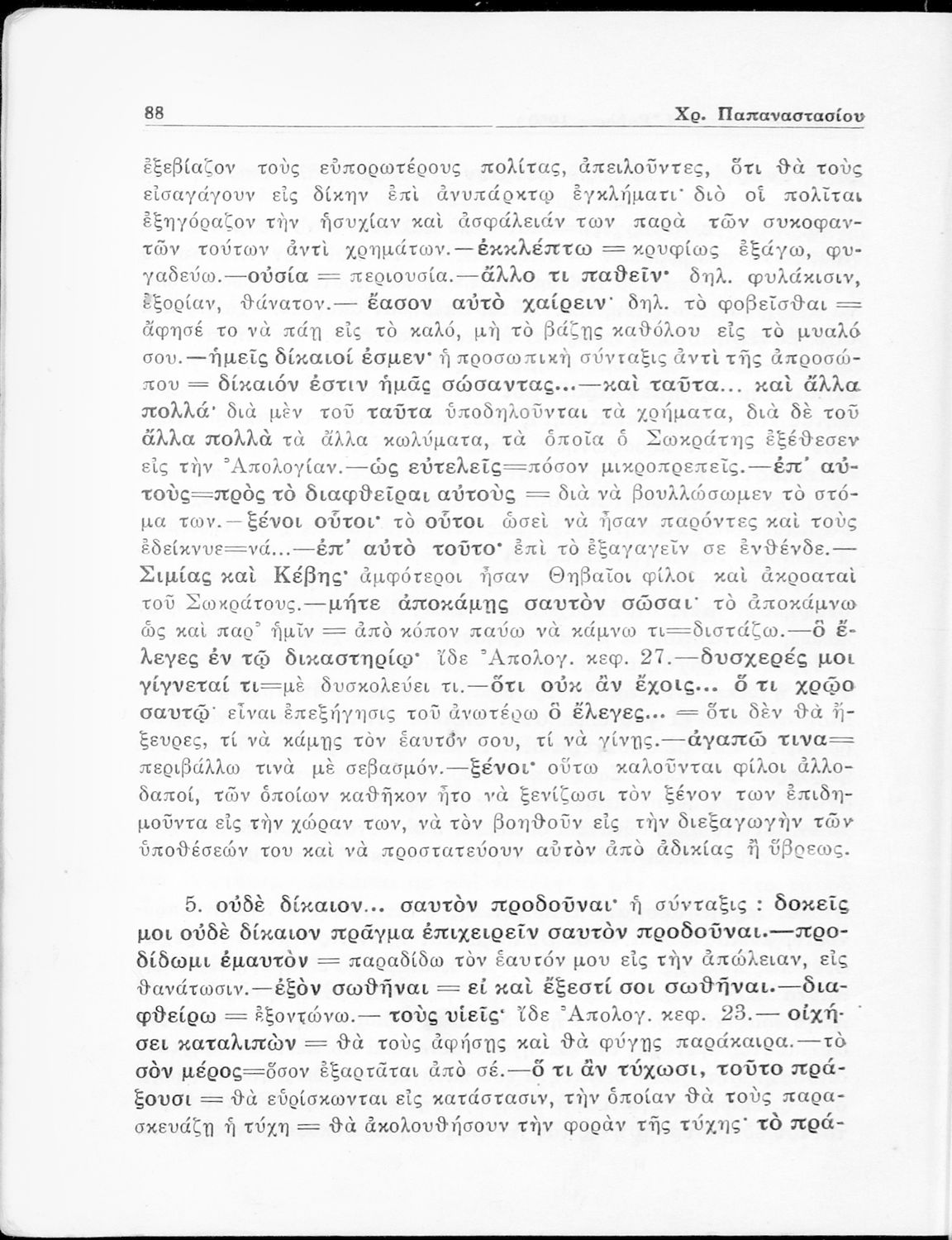 Σχολικό εγχειρίδιο Αρχαίων Ελληνικών για την Ε΄ Γυμνάσιου που περιέχει σύντομο βιογραφικό σημείωμα του Πλάτωνα, εισαγωγή στο έργο, κείμενο, ερμηνευτικά και πραγματολογικά σχόλια και λεξιλογικές παρατηρήσεις.