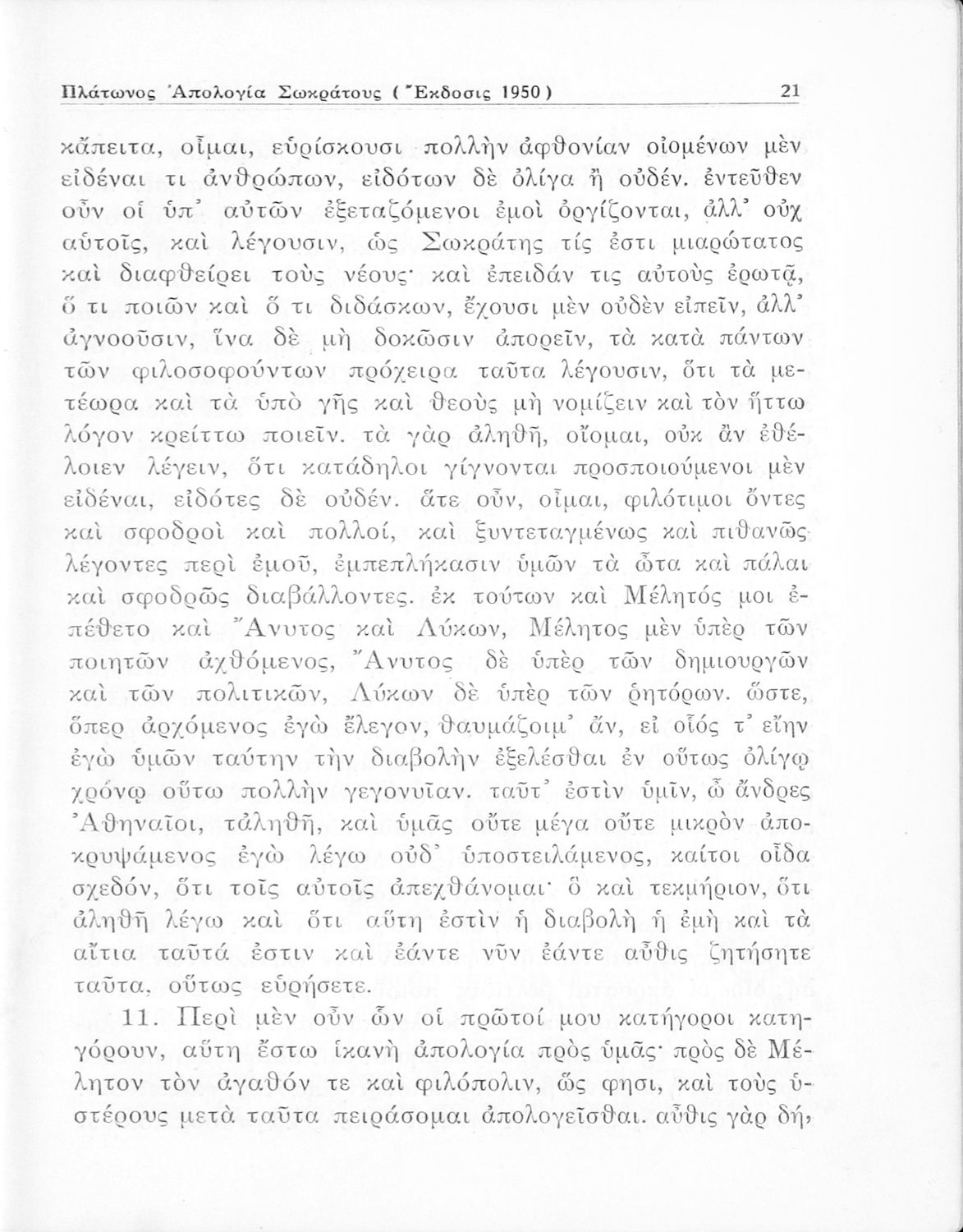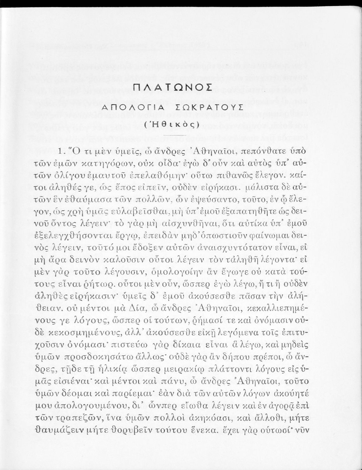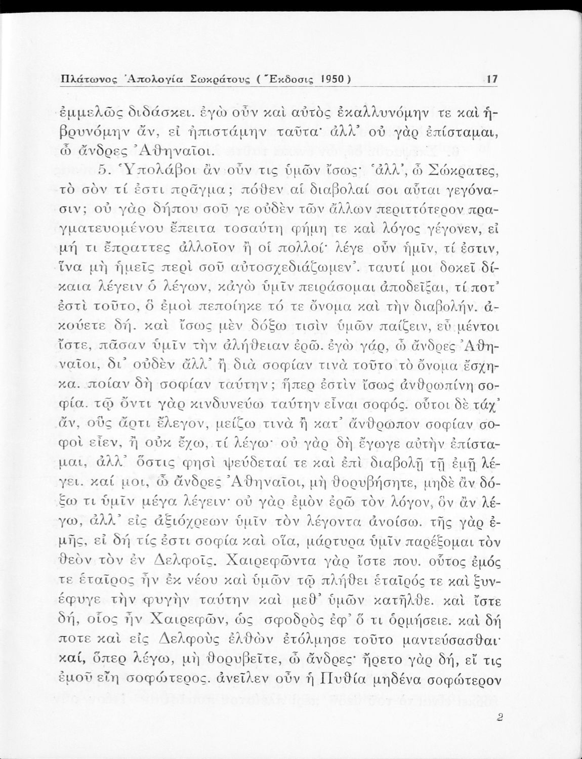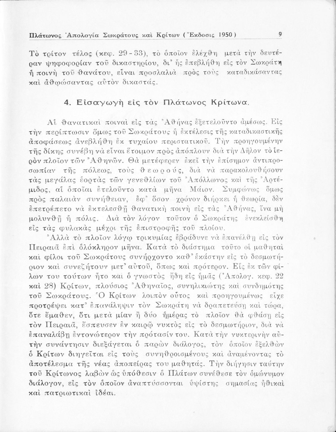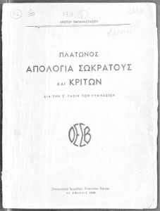 Σχολικό εγχειρίδιο Αρχαίων Ελληνικών για την Ε΄ Γυμνάσιου που περιέχει σύντομο βιογραφικό σημείωμα του Πλάτωνα, εισαγωγή στο έργο, κείμενο, ερμηνευτικά και πραγματολογικά σχόλια και λεξιλογικές παρατηρήσεις.