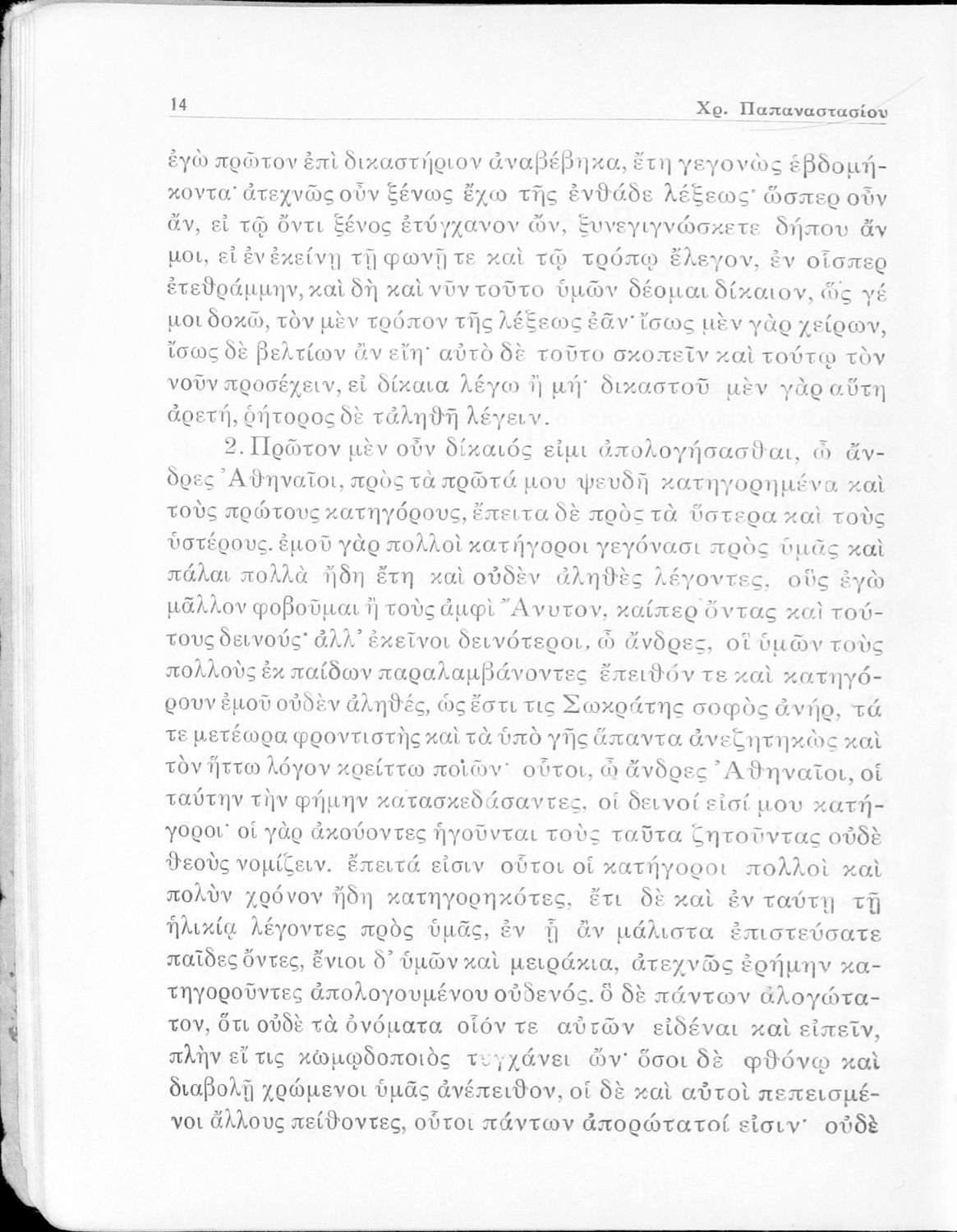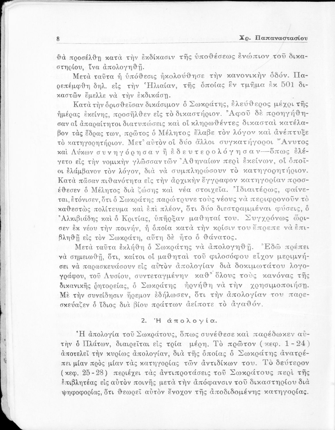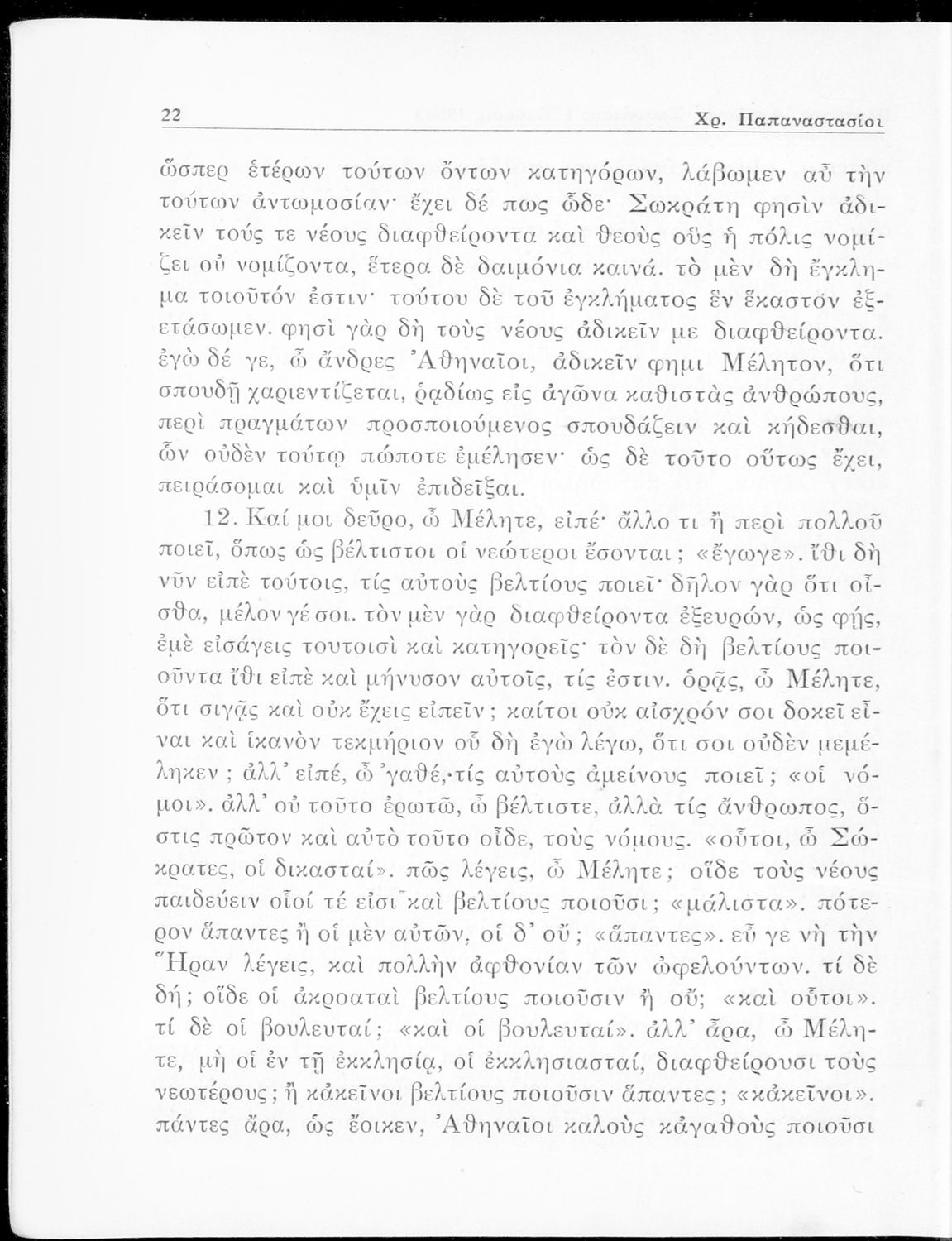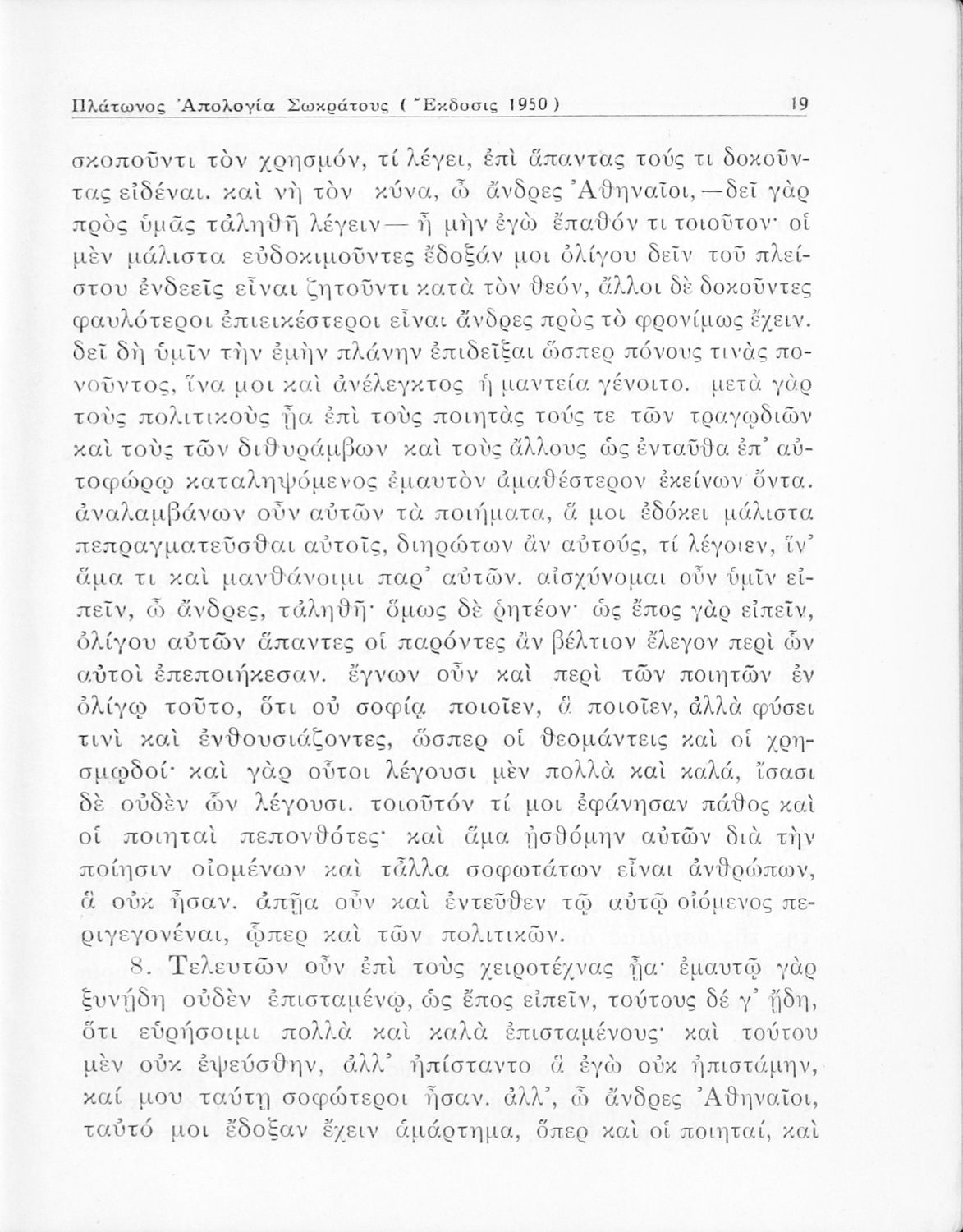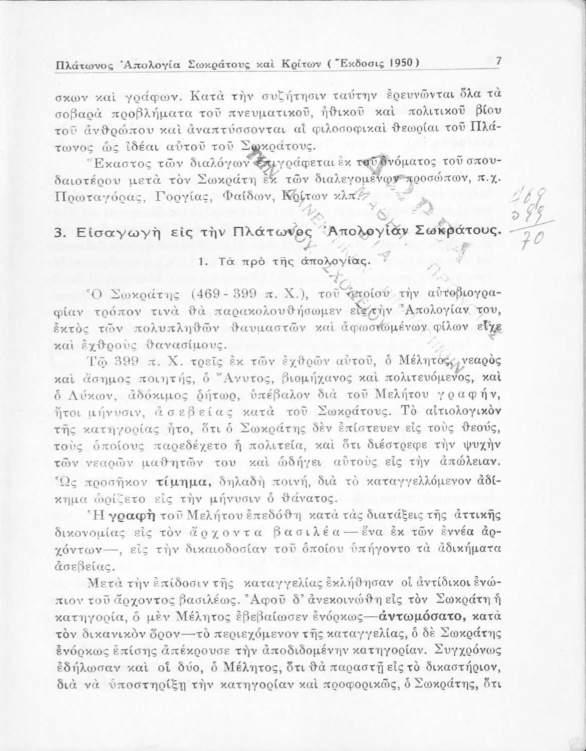 Σχολικό εγχειρίδιο Αρχαίων Ελληνικών για την Ε΄ Γυμνάσιου που περιέχει σύντομο βιογραφικό σημείωμα του Πλάτωνα, εισαγωγή στο έργο, κείμενο, ερμηνευτικά και πραγματολογικά σχόλια και λεξιλογικές παρατηρήσεις.