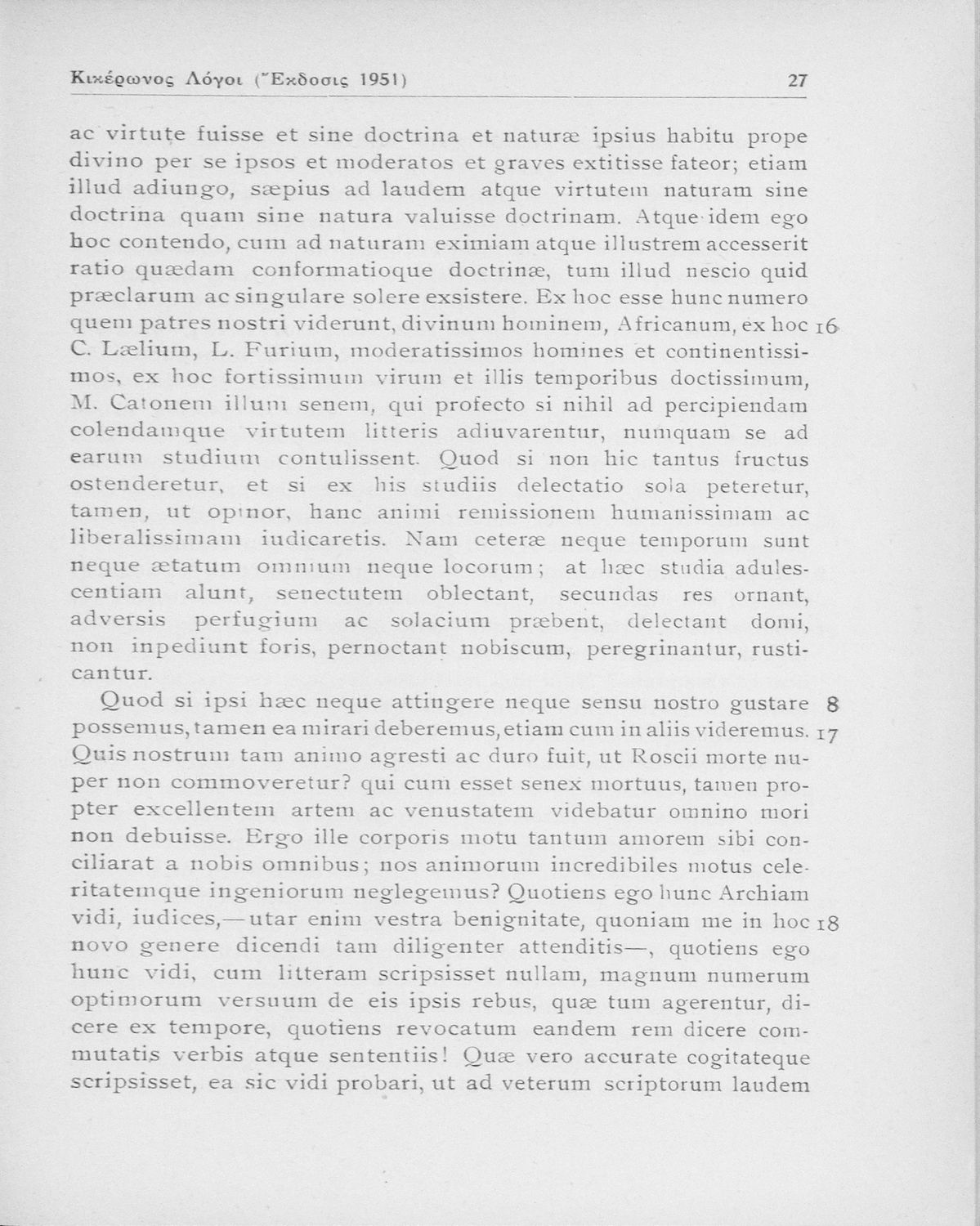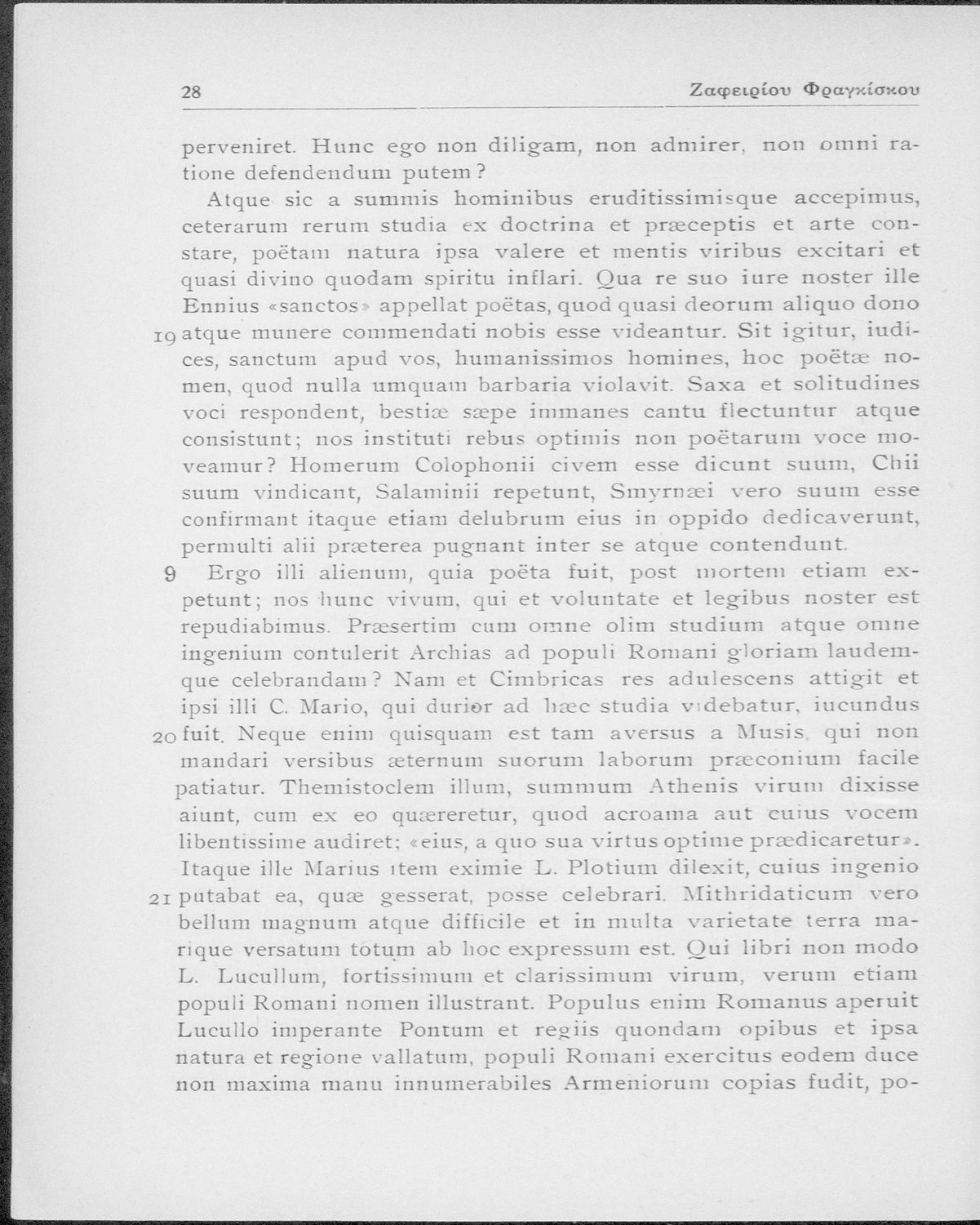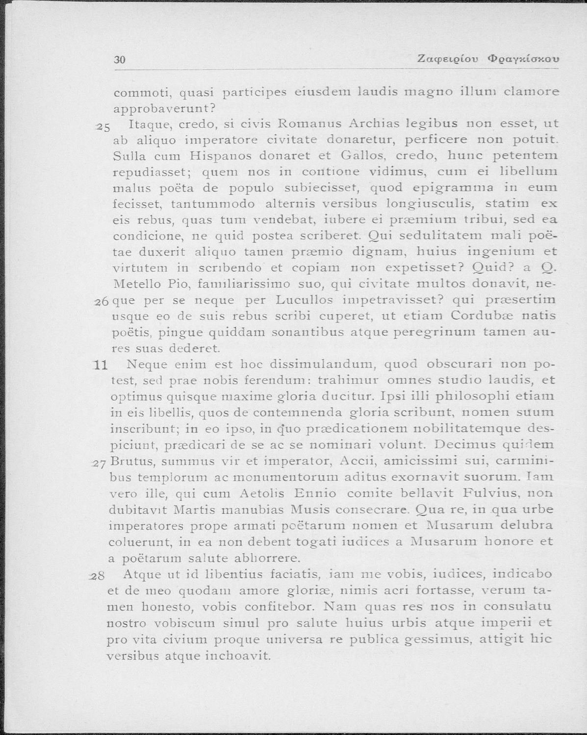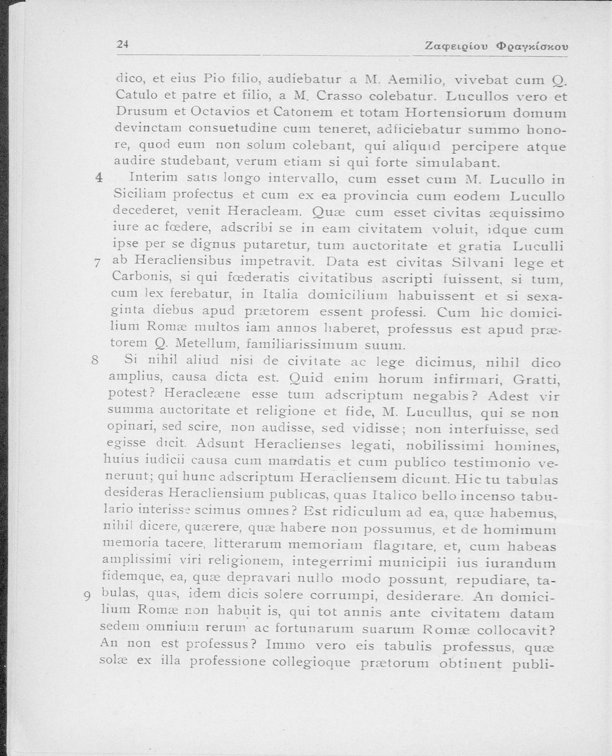 Μ. Τύλλιος Κικέρωνας (Marcus Tullius Cicero), Ζαφείριος Ν. Φραγκίσκος (σχόλια)