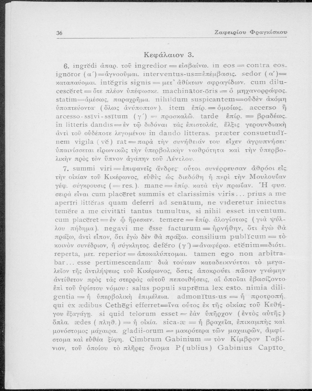 Μάρκος Τύλλιος Κικέρωνας (Marcus Tullius Cicero), Ζαφείριος Ν. Φραγκίσκος (εισαγωγή, σχόλια)