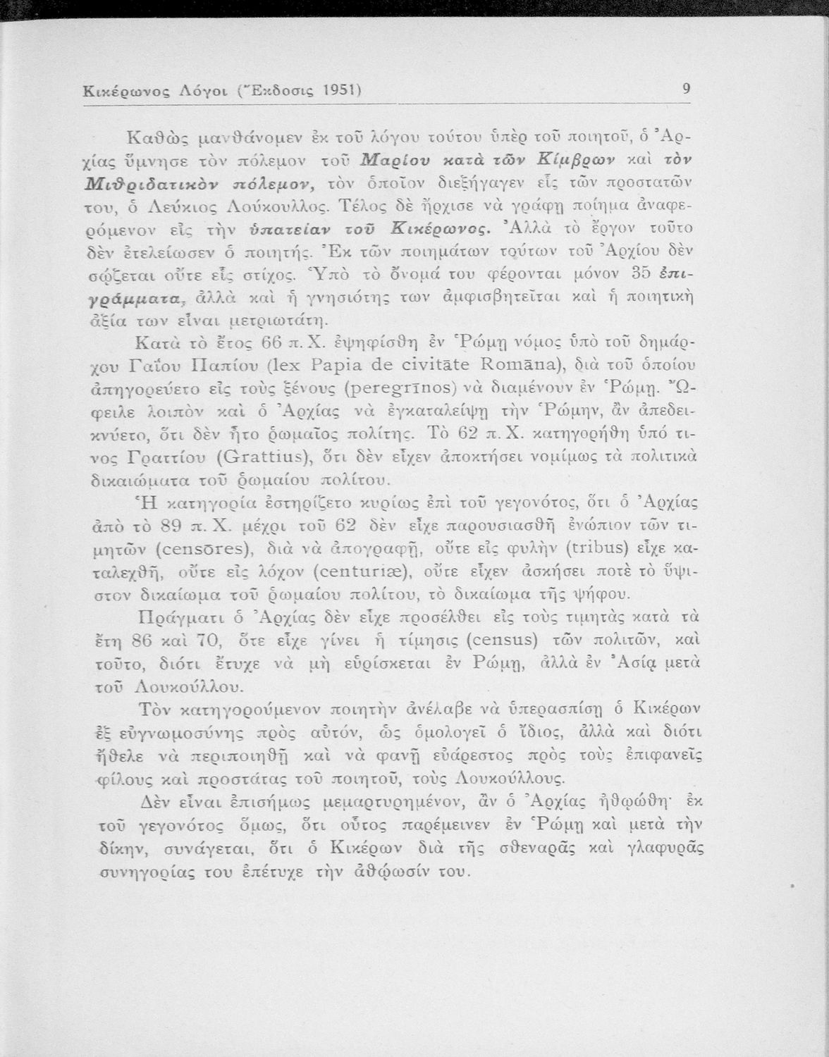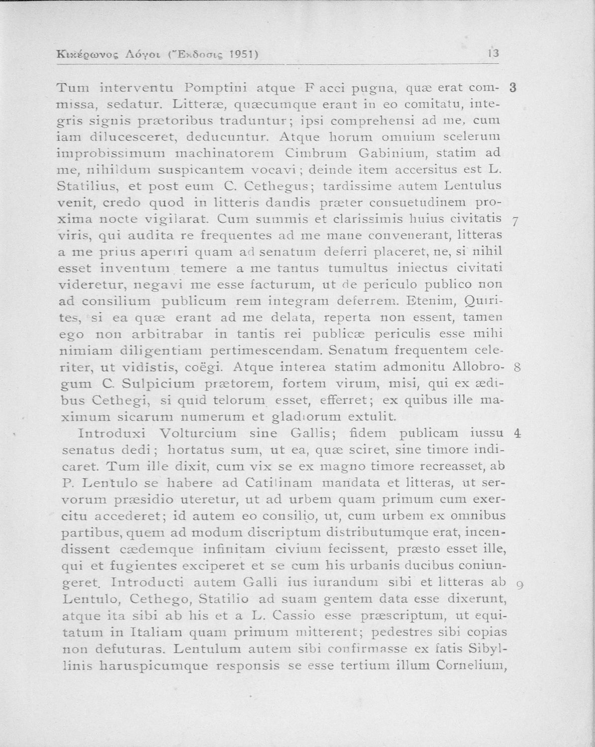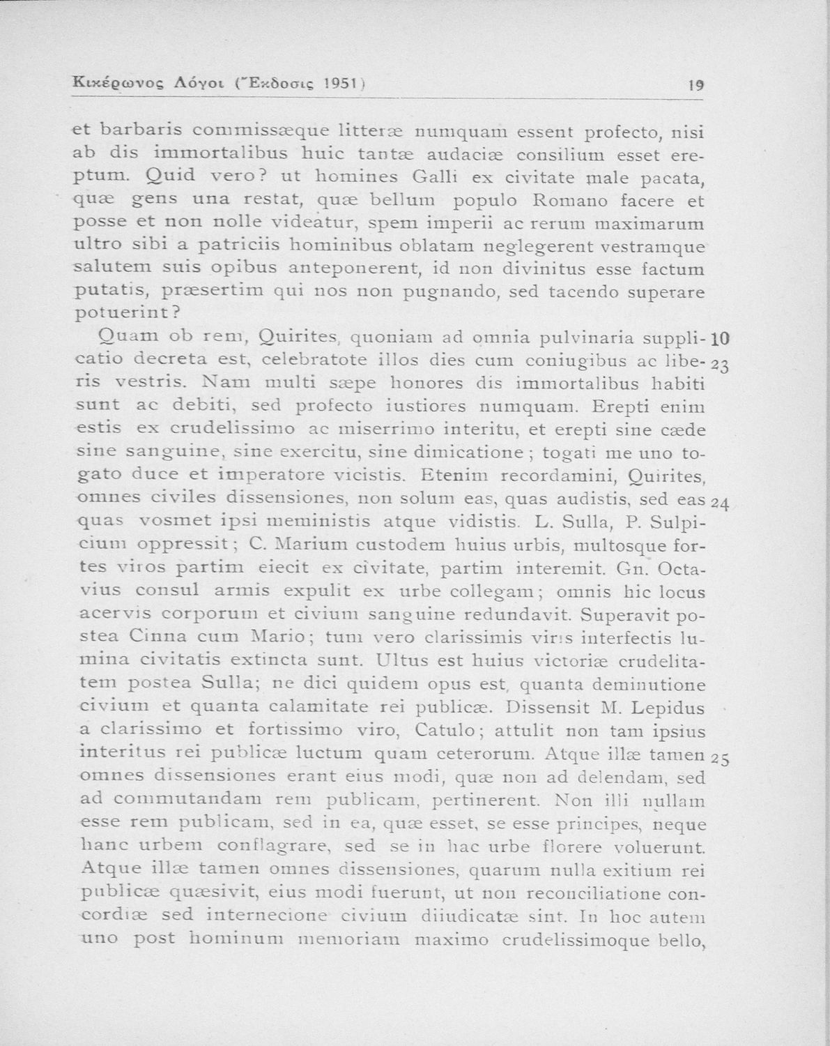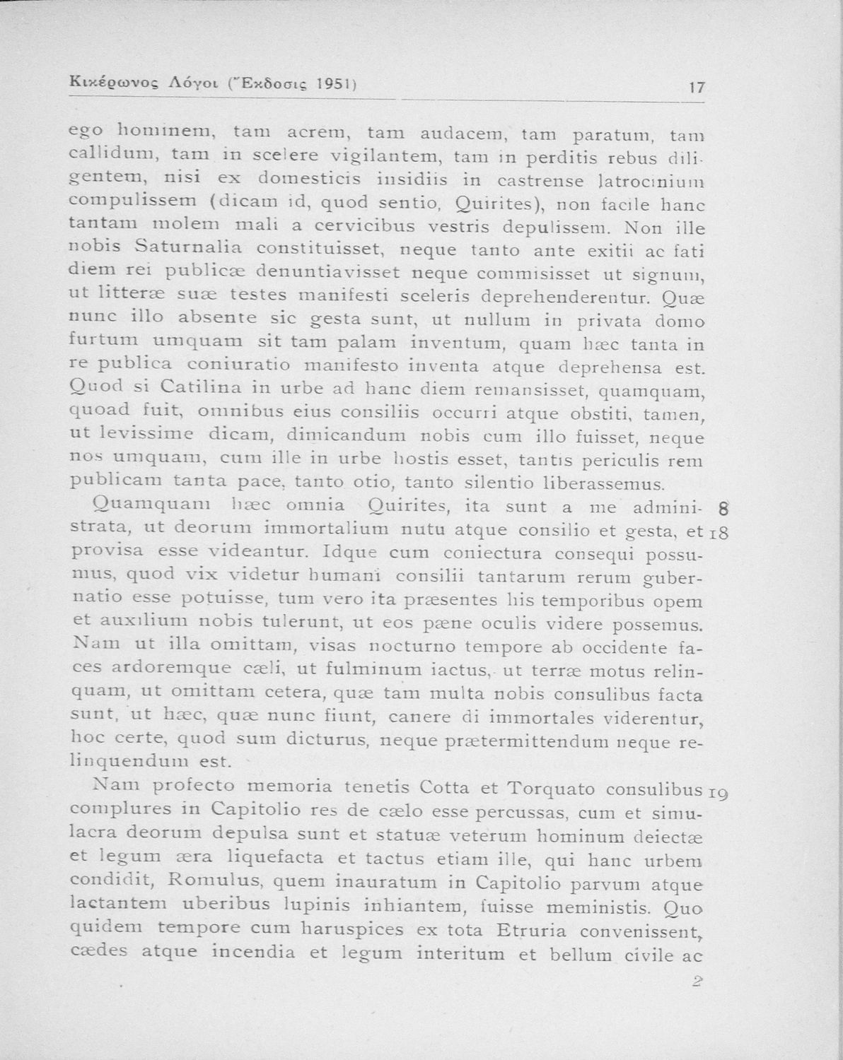 Σχολικό εγχειρίδιο Λατινικών για την Ε΄ Γυμνασίου που περιέχει βιογραφικό σημείωμα του Κικέρωνα, εισαγωγικά σχόλια, κείμενο και ερμηνευτικές σημειώσεις.