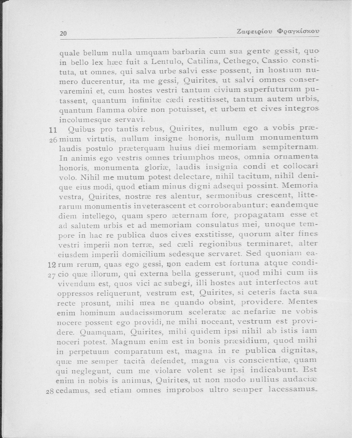 LDR 01142 2200193 4500 035 ## _a05-00232 040 ## _aΕργαστήρι Ιστορίας Ν.Ε. Εκπαίδευσης, Πανεπιστήμιο Ιωαννίνων 041 ## _ael 100 ## _aΜ. Τύλλιος Κικέρωνας (Marcus Tullius Cicero) _aΖαφείριος Ν. Φραγκίσκος (σχόλια) 110 ## _a232 245 0# _aΚικέρωνος λόγοι. Ο τρίτος κατά Κατιλίνα και ο υπέρ Αρχίου του ποιητού 260 ## _aΑθήνα _bΟργανισμός Εκδόσεως Σχολικών Βιβλίων _c1951 300 ## _a67 520 ## _aΣχολικό εγχειρίδιο Λατινικών για την Ε΄ Γυμνασίου που περιέχει βιογραφικό σημείωμα του Κικέρωνα, εισαγωγικά σχόλια, κείμενο και ερμηνευτικές σημειώσεις. 521 ## _aΕ' Γυμνασίου 522 ## _aΕλλάδα 546 ## _aΚαθαρεύουσα 563 ## _aΜαλακό Εξώφυλλο 650 #4 _aOratio in Catilinam tertia _aPro archia poeta Oratio