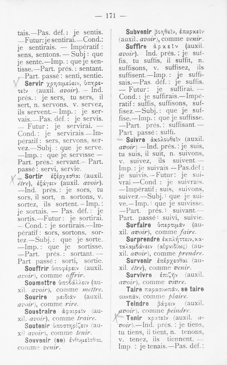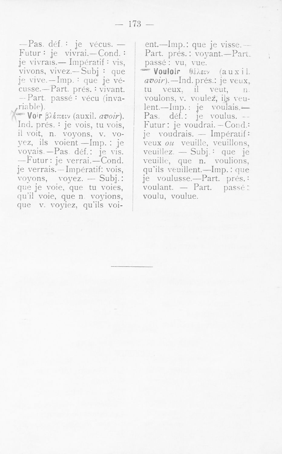 Σχολικό εγχειρίδιο Γαλλικών Γ΄ Γυμνασίου που περιλαμβάνει γραμματικούς και συντακτικούς κανόνες, κείμενα και τις μεταφράσεις τους στην καθαρεύουσα. Περιέχει και λεξιλόγιο.