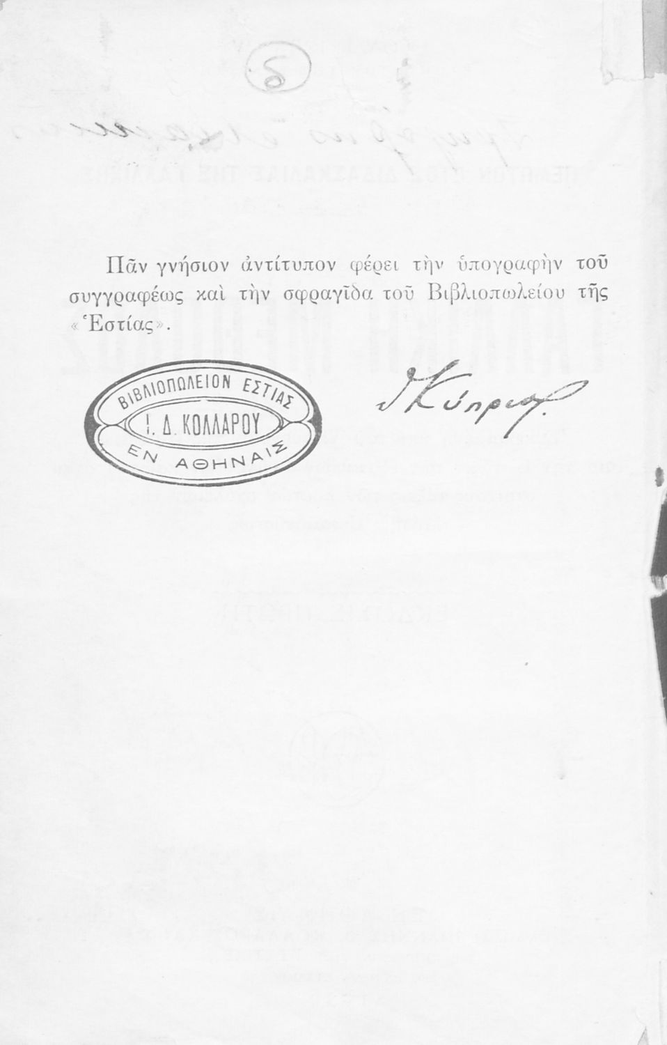 Εκδότης: Ιωάννης Δ. Κολλάρος και ΣΙΑ Έτος έκδοσης: 1930 Τόπος έκδοσης: Αθήνα Έκδοση: 1η |