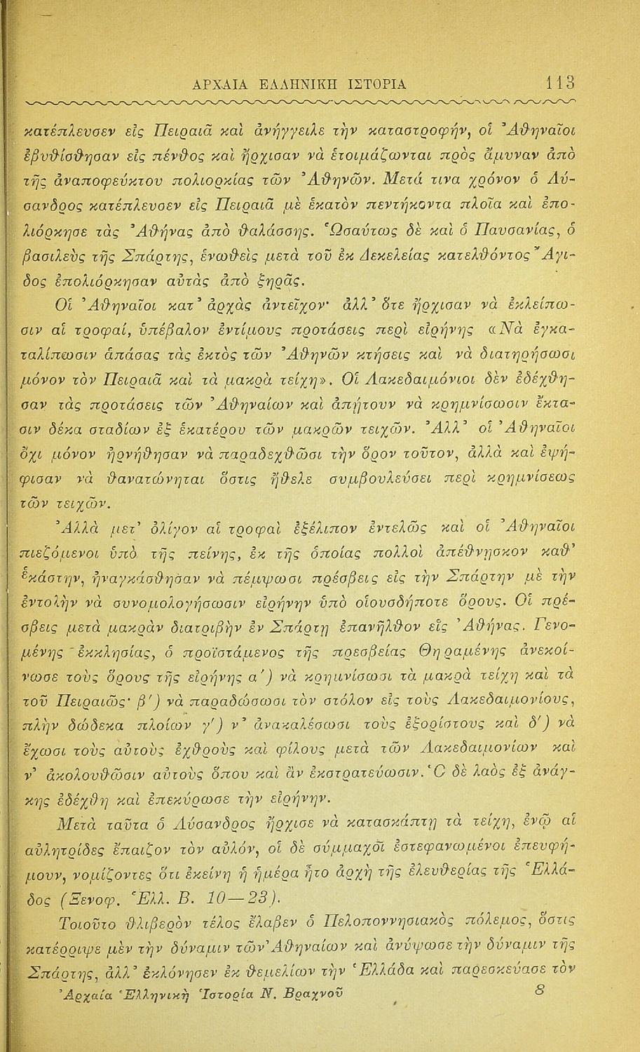 Τίτλος: Ελληνική ιστορία από των αρχαιοτάτων χρόνων μέχρι της εν Ιψώ μάχης προς χρήσιν των μαθητών των Γυμνασίων