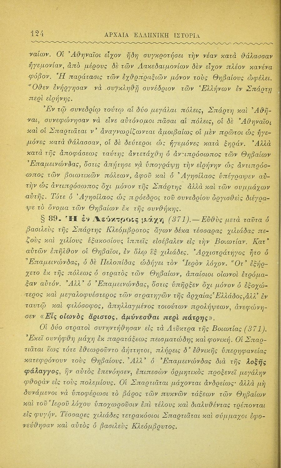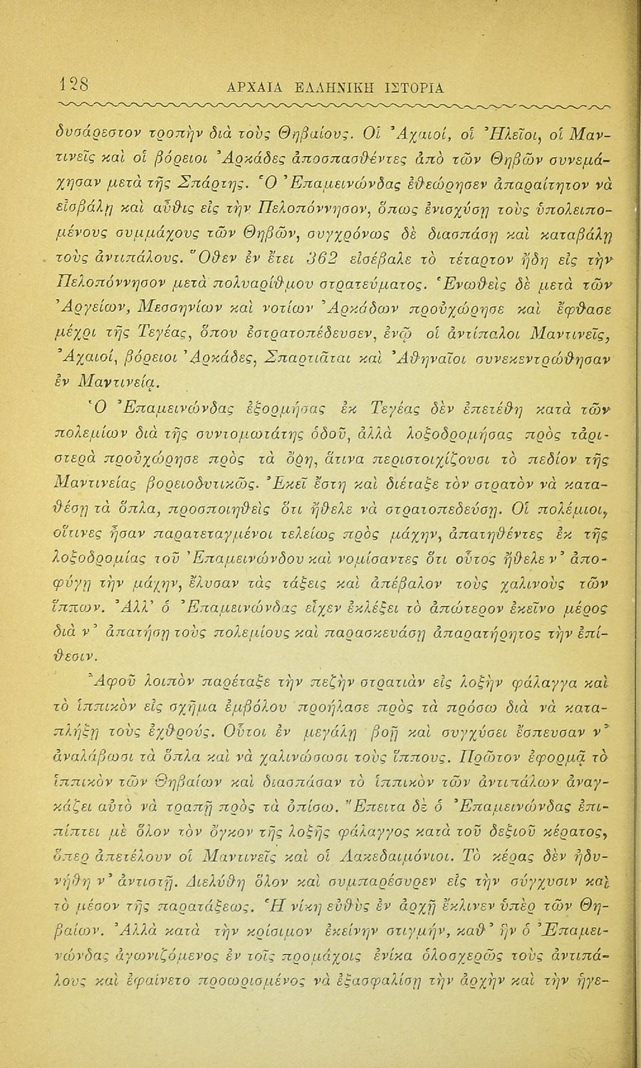 Σχολικό εγχειρίδιο Ιστορίας Α΄ Ελληνικού και Παρθεναγωγείου που καλύπτει την περίοδο από τους μυθικούς και ηρωικούς χρόνους μέχρι την μάχη της Μαντινείας και τον θάνατο του Επαμεινώνδα.