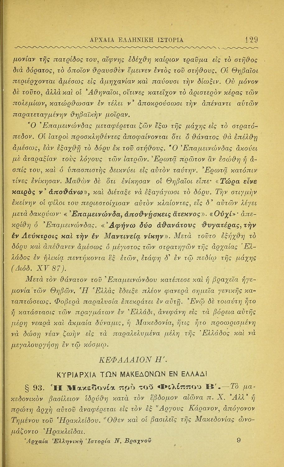 Τίτλος: Ελληνική ιστορία από των αρχαιοτάτων χρόνων μέχρι της εν Ιψώ μάχης προς χρήσιν των μαθητών των Γυμνασίων
