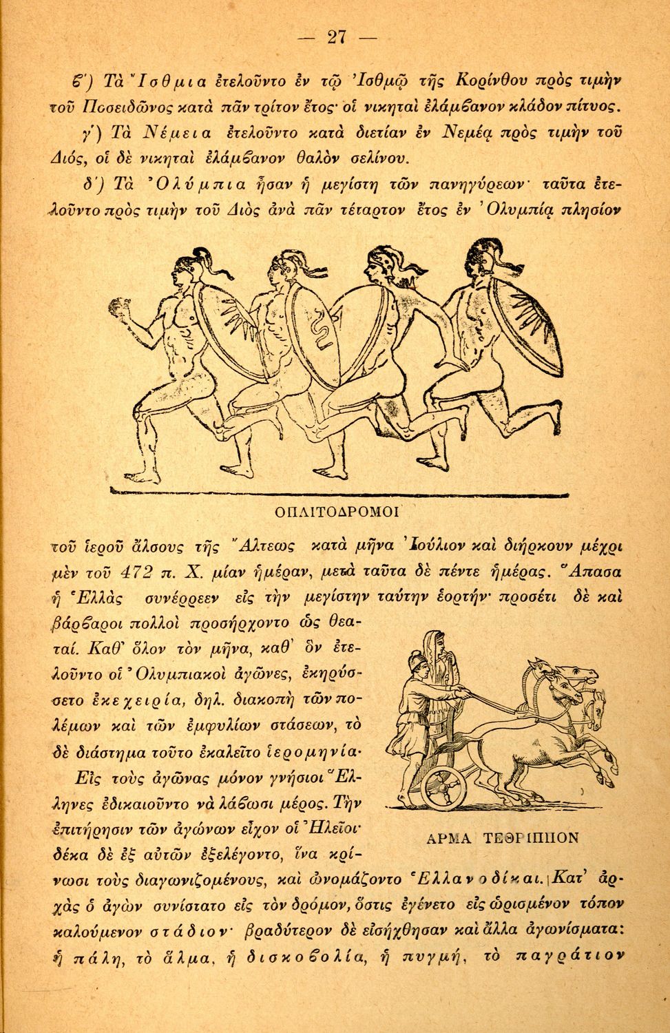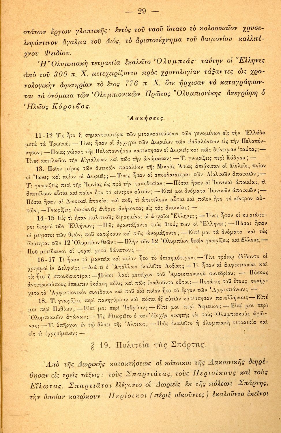 Σχολικό εγχειρίδιο Ιστορίας Α΄ Ελληνικού Σχολείου και Παρθεναγωγείου που καλύπτει την περίοδο από τους ηρωικούς και μυθικούς χρόνους μέχρι την μάχη της Μαντινείας και τον θάνατο του Επαμεινώνδα.