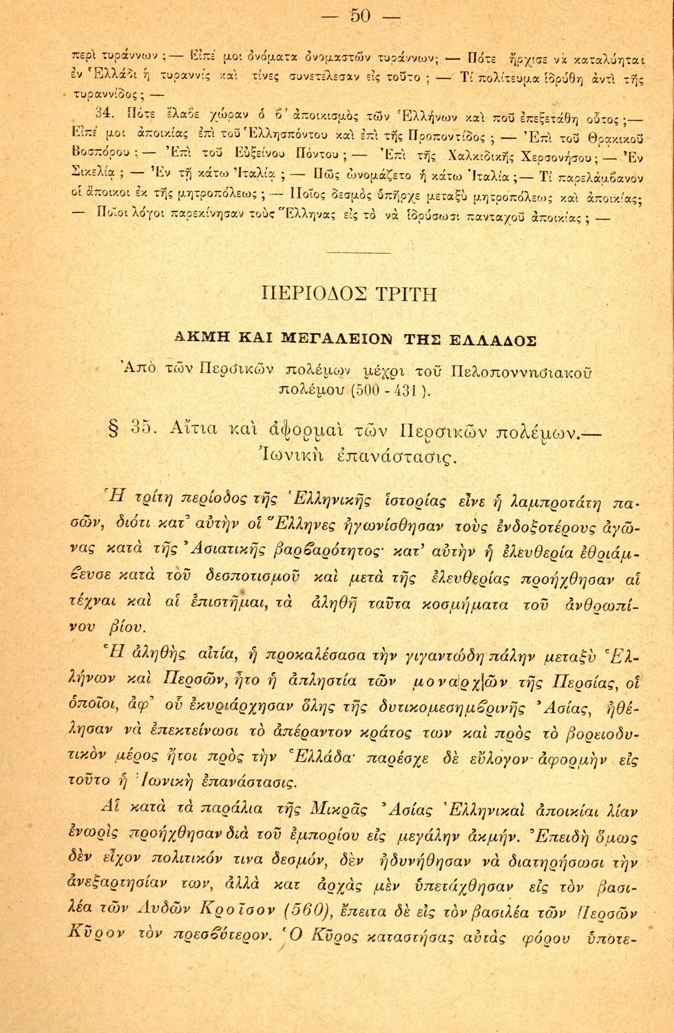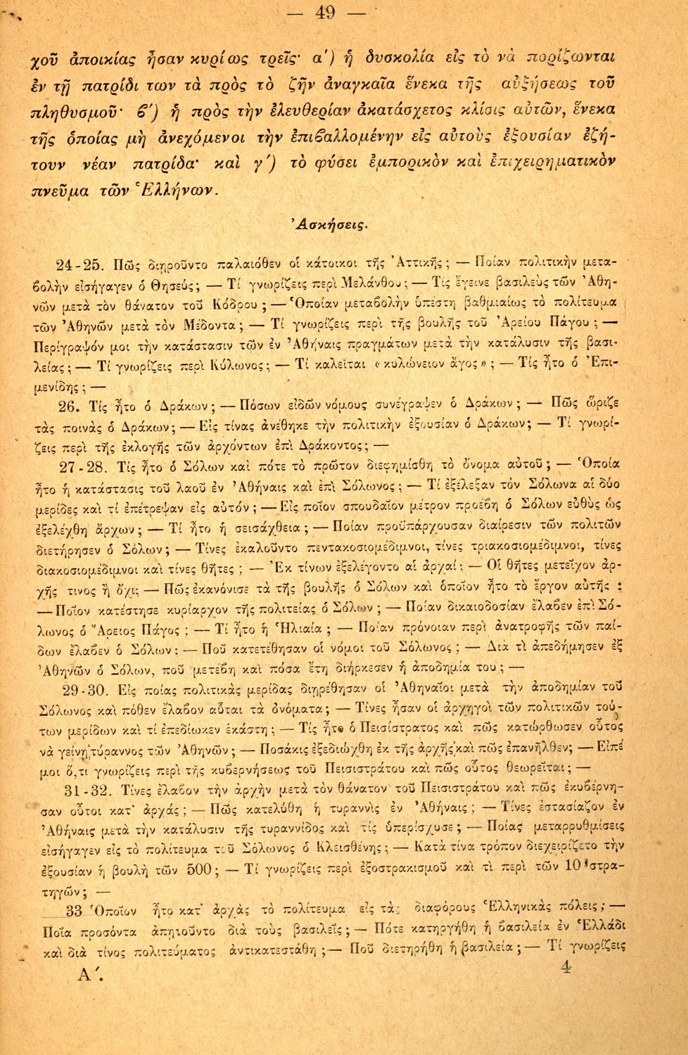 Σχολικό εγχειρίδιο Ιστορίας Α΄ Ελληνικού Σχολείου και Παρθεναγωγείου που καλύπτει την περίοδο από τους ηρωικούς και μυθικούς χρόνους μέχρι την μάχη της Μαντινείας και τον θάνατο του Επαμεινώνδα.