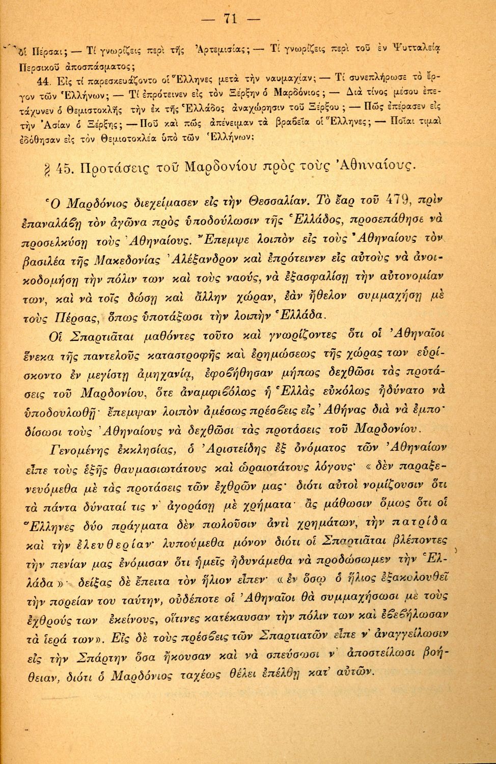 Κωδικός αναγνώρισης: 08-00005 Τίτλος: Ιστορία των αρχαίων Ελλήνων μέχρι της εν Μαντινεία μάχης διά την Α΄ τάξιν των Ελληνικών Σχολείων και Ανωτέρων Παρθεναγωγείων Συγγραφέας: Νικόλαος Ι. Βραχνός Μέγεθος και υπόστρωμα: Σχολικό εγχειρίδιο, σκληρό εξώφυλλο, 138 σελίδες. Σκίτσα (ασπρόμαυρα). |