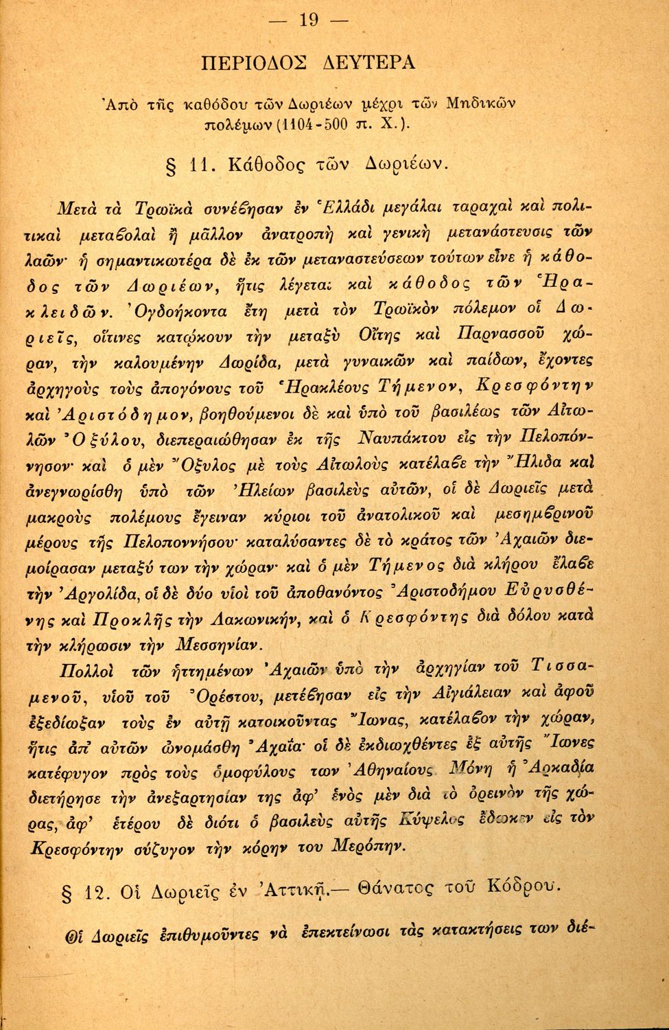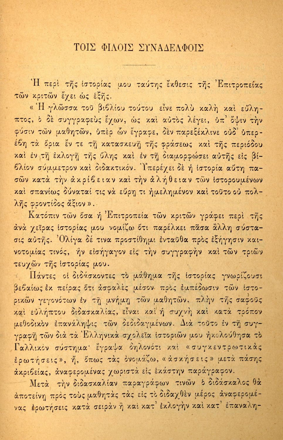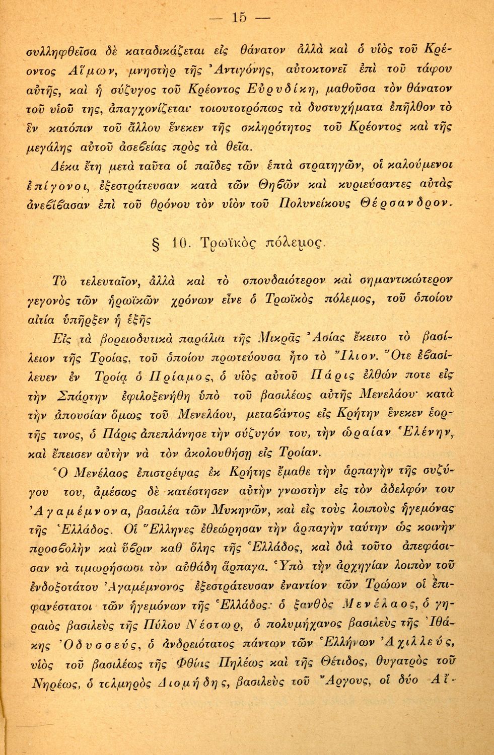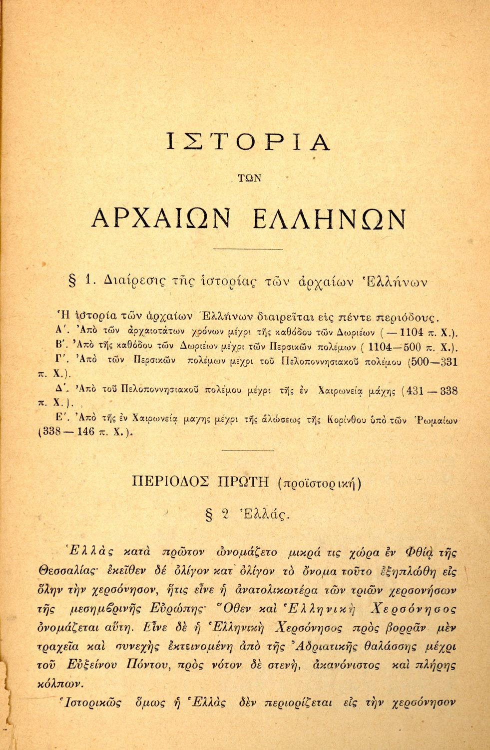 Σχολικό εγχειρίδιο Ιστορίας Α΄ Ελληνικού Σχολείου και Παρθεναγωγείου που καλύπτει την περίοδο από τους ηρωικούς και μυθικούς χρόνους μέχρι την μάχη της Μαντινείας και τον θάνατο του Επαμεινώνδα.