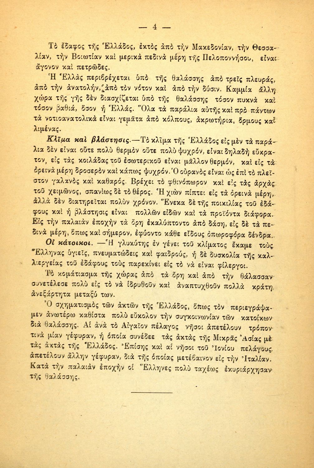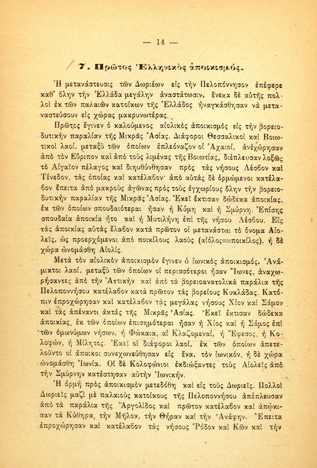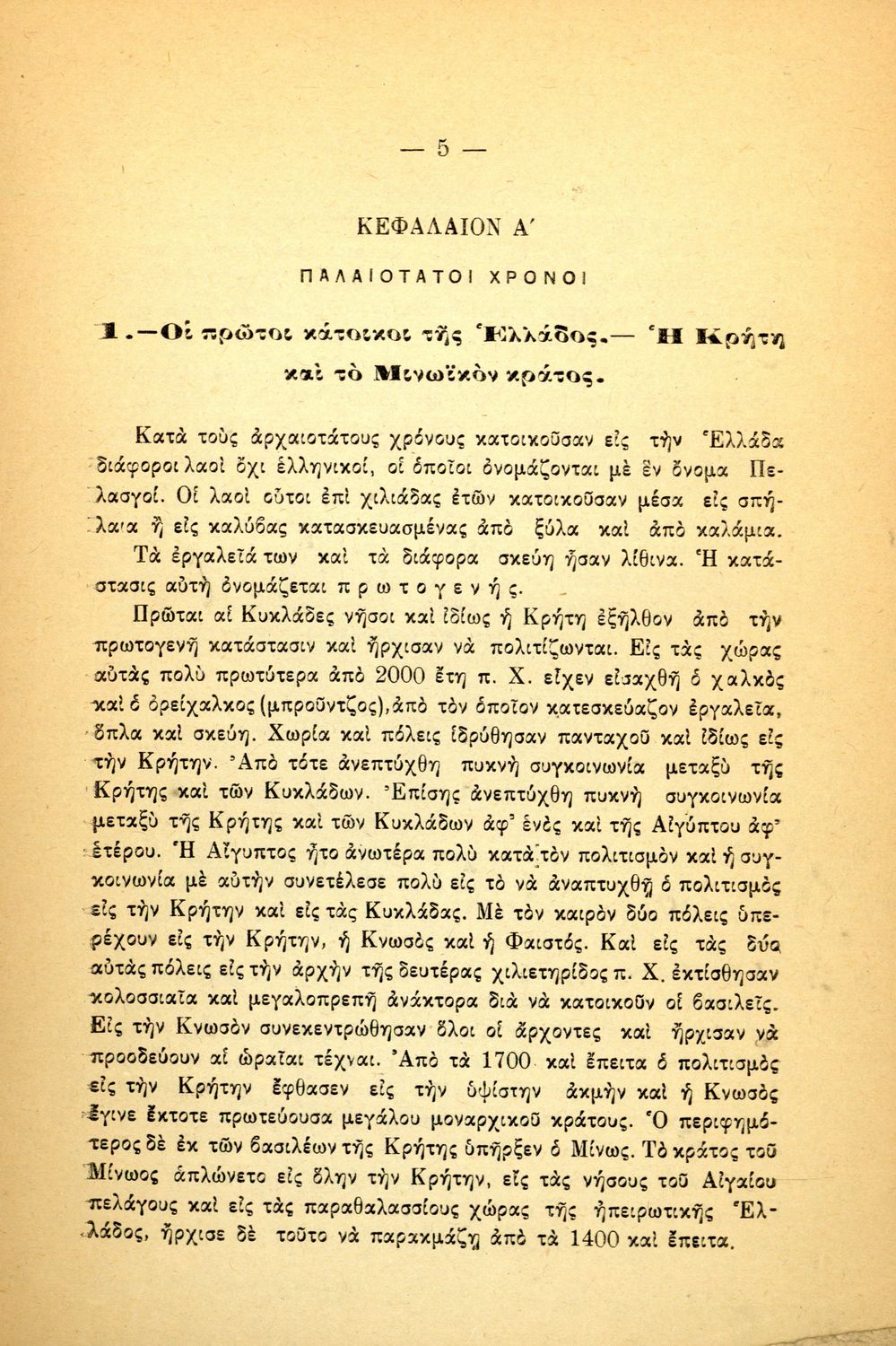 Βαθμίδα εκπαίδευσης: Δευτεροβάθμια Τάξη: Α' Ελληνικού Σχολείου Μάθημα: Ιστορία Γλώσσα: Καθαρεύουσα Παρουσίαση περιεχομένου: Σχολικό εγχειρίδιο Ιστορίας Α' Ελληνικού Σχολείου που καλύπτει την περίοδο από τους προϊστορικούς χρόνους ως τη συγκρότηση της Αχαϊκής Συμπολιτείας. |