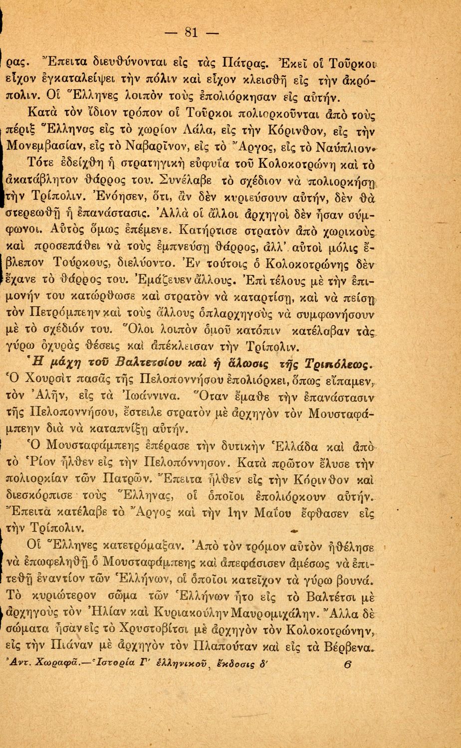 LDR 01740 2200217 4500 035 ## _a08-00013 040 ## _aΕθνική Βιβλιοθήκη της Ελλάδος 041 ## _ael 100 ## _aΑντώνιος Ν. Χωραφάς 110 ## _a13 245 0# _aΕλληνική ιστορία από της αλώσεως της Κωνσταντινουπόλεως υπό των Φράγκων μέχρι των καθ' ημάς χρόνων μετά 23 εικόνων και χαρτών διά την τρίτην τάξιν των Ελληνικών Σχολείων και την αντίστοιχον των λοιπών σχολείων της Μέσης Εκπαιδεύσεως 250 ## _a4η Έκδοση 260 ## _aΑθήνα _bΙωάννης Δ. Κολλάρος, Βιβλιοπωλείο της "Εστίας" _c1927 300 ## _a184 _bΣκίτσα (ασπρόμαυρα), Χάρτες (ασπρόμαυροι) 520 ## _aΣχολικό εγχειρίδιο Ιστορίας Γ' Ελληνικού Σχολείου που περιλαμβάνει τα γεγονότα από την άλωση της Κωνσταντινούπολης από τους Φράγκους μέχρι και τους Βαλκανικούς Πολέμους και τον Α΄ Παγκόσμιο Πόλεμο. 521 ## _aΓ' Ελληνικού Σχολείου 522 ## _aΕλλάδα 546 ## _aΚαθαρεύουσα 563 ## _aΣκληρό Εξώφυλλο 583 ## _a12355/ 10-6-1927 _c1927 650 #4 _aΒαλκανικοί Πόλεμοι _aΒενιζέλος _aΓαλλική Επανάσταση _aΓεώργιος Α΄ _aΕλληνική Επανάσταση _aΚαποδίστριας _aΌθωνας _aΦιλελληνισμός