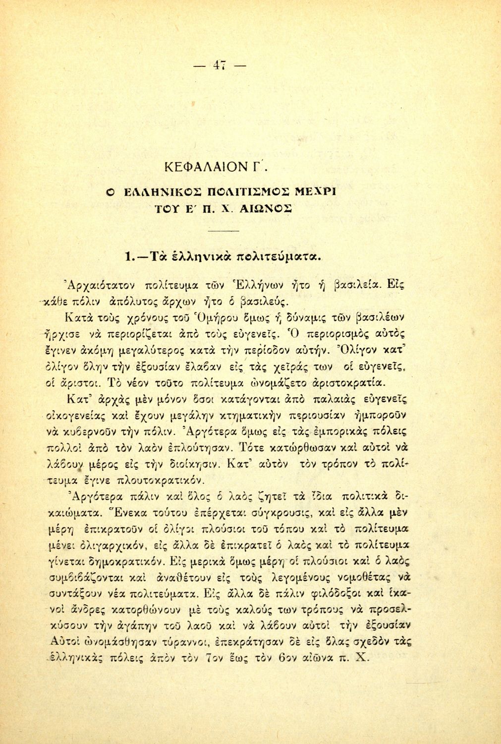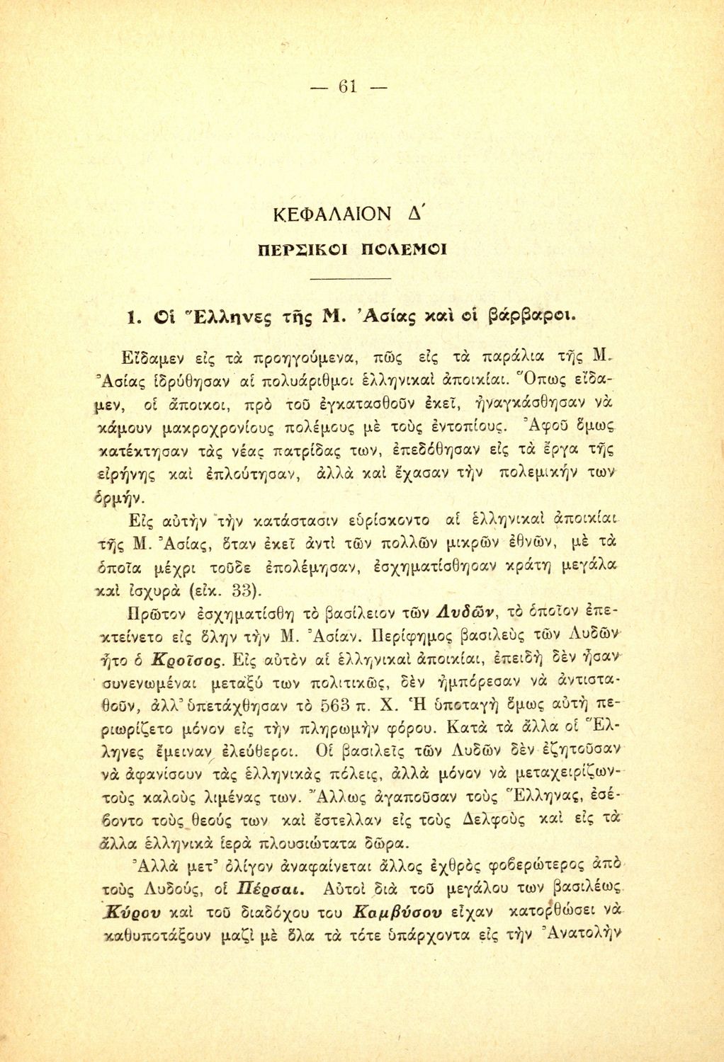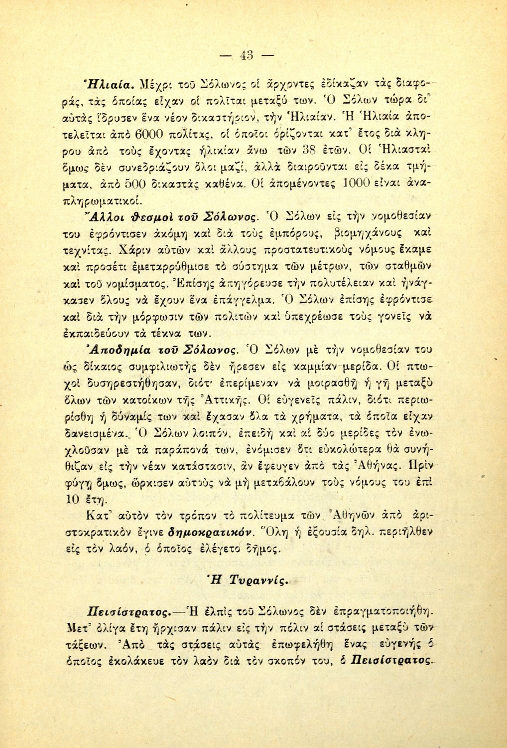 Βαθμίδα εκπαίδευσης: Δευτεροβάθμια Τάξη: Α' Ελληνικού Σχολείου Μάθημα: Ιστορία Γλώσσα: Καθαρεύουσα Παρουσίαση περιεχομένου: Σχολικό εγχειρίδιο Ιστορίας Α' Ελληνικού Σχολείου που καλύπτει το διάστημα από τους προϊστορικούς χρόνους ως τη Μακεδονική Ηγεμονία. |