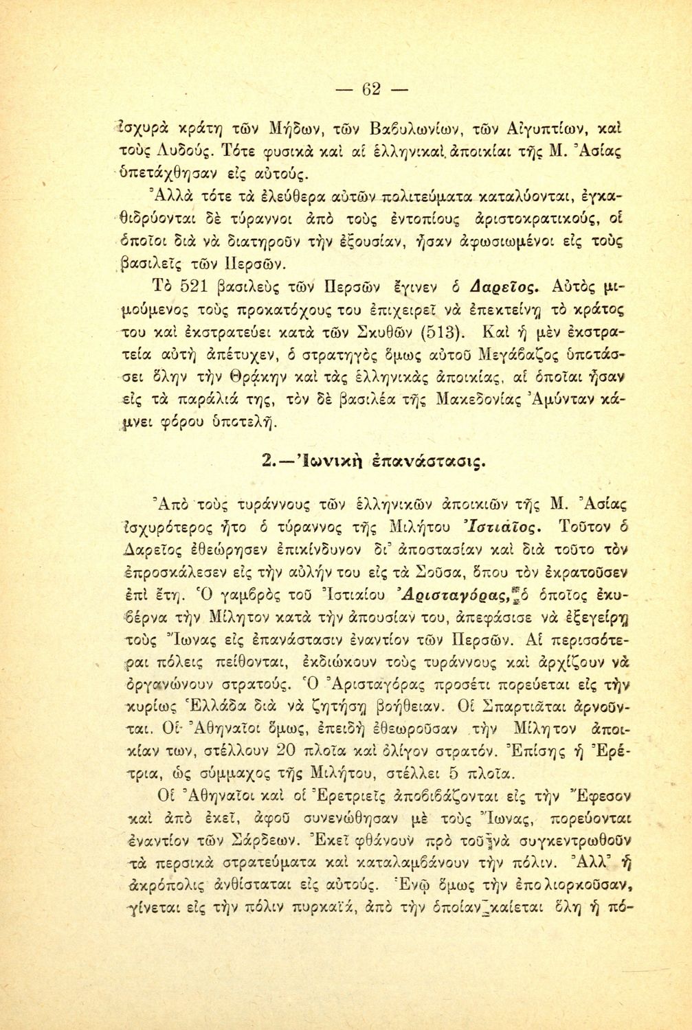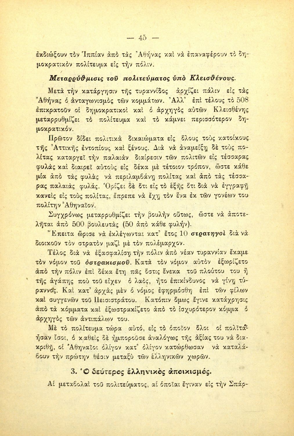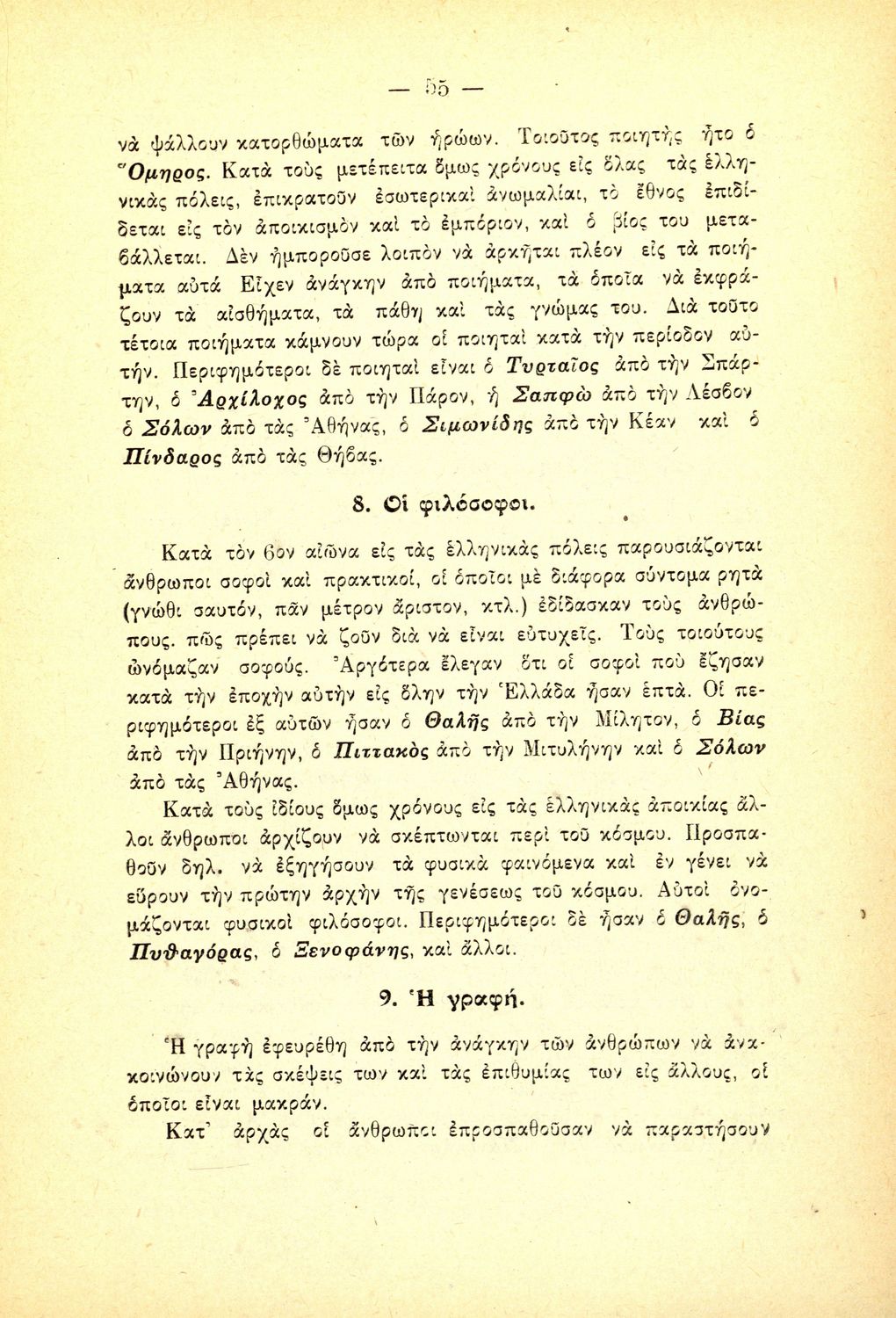Βαθμίδα εκπαίδευσης: Δευτεροβάθμια Τάξη: Α' Ελληνικού Σχολείου Μάθημα: Ιστορία Γλώσσα: Καθαρεύουσα Παρουσίαση περιεχομένου: Σχολικό εγχειρίδιο Ιστορίας Α' Ελληνικού Σχολείου που καλύπτει το διάστημα από τους προϊστορικούς χρόνους ως τη Μακεδονική Ηγεμονία. |