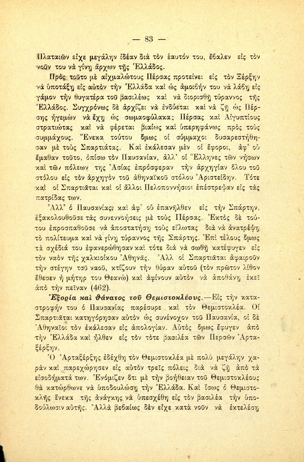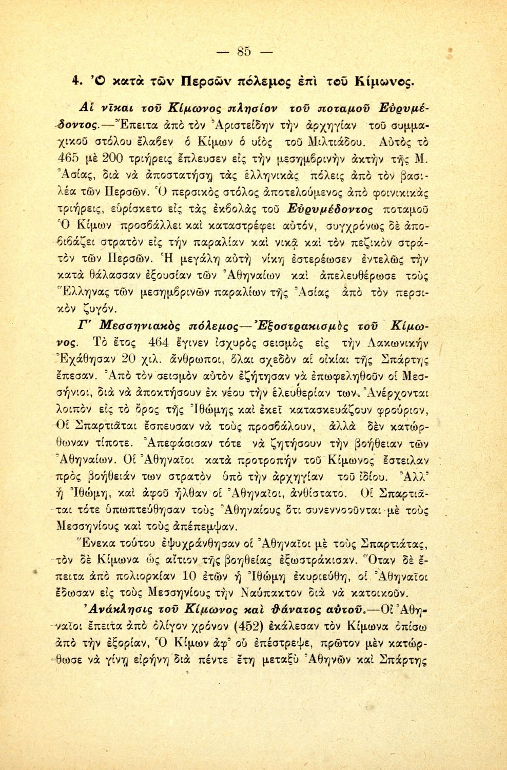 Βαθμίδα εκπαίδευσης: Δευτεροβάθμια Τάξη: Α' Ελληνικού Σχολείου Μάθημα: Ιστορία Γλώσσα: Καθαρεύουσα Παρουσίαση περιεχομένου: Σχολικό εγχειρίδιο Ιστορίας Α' Ελληνικού Σχολείου που καλύπτει το διάστημα από τους προϊστορικούς χρόνους ως τη Μακεδονική Ηγεμονία. |