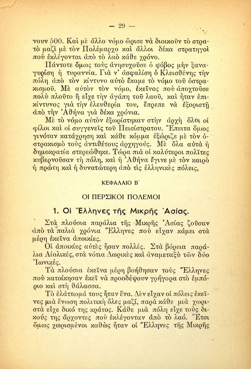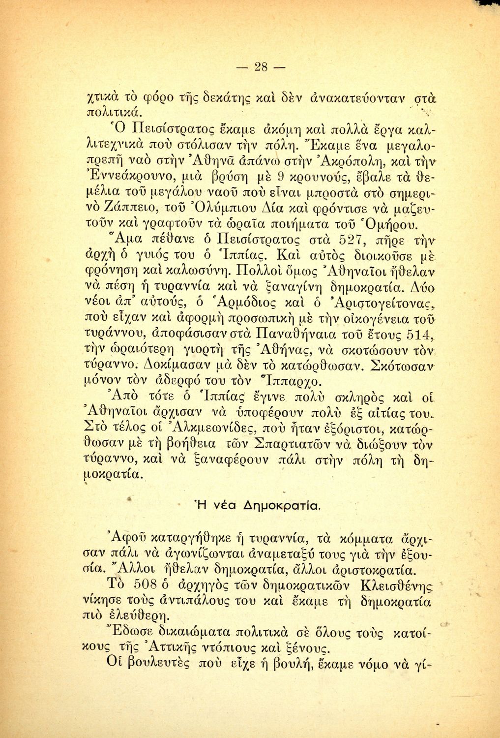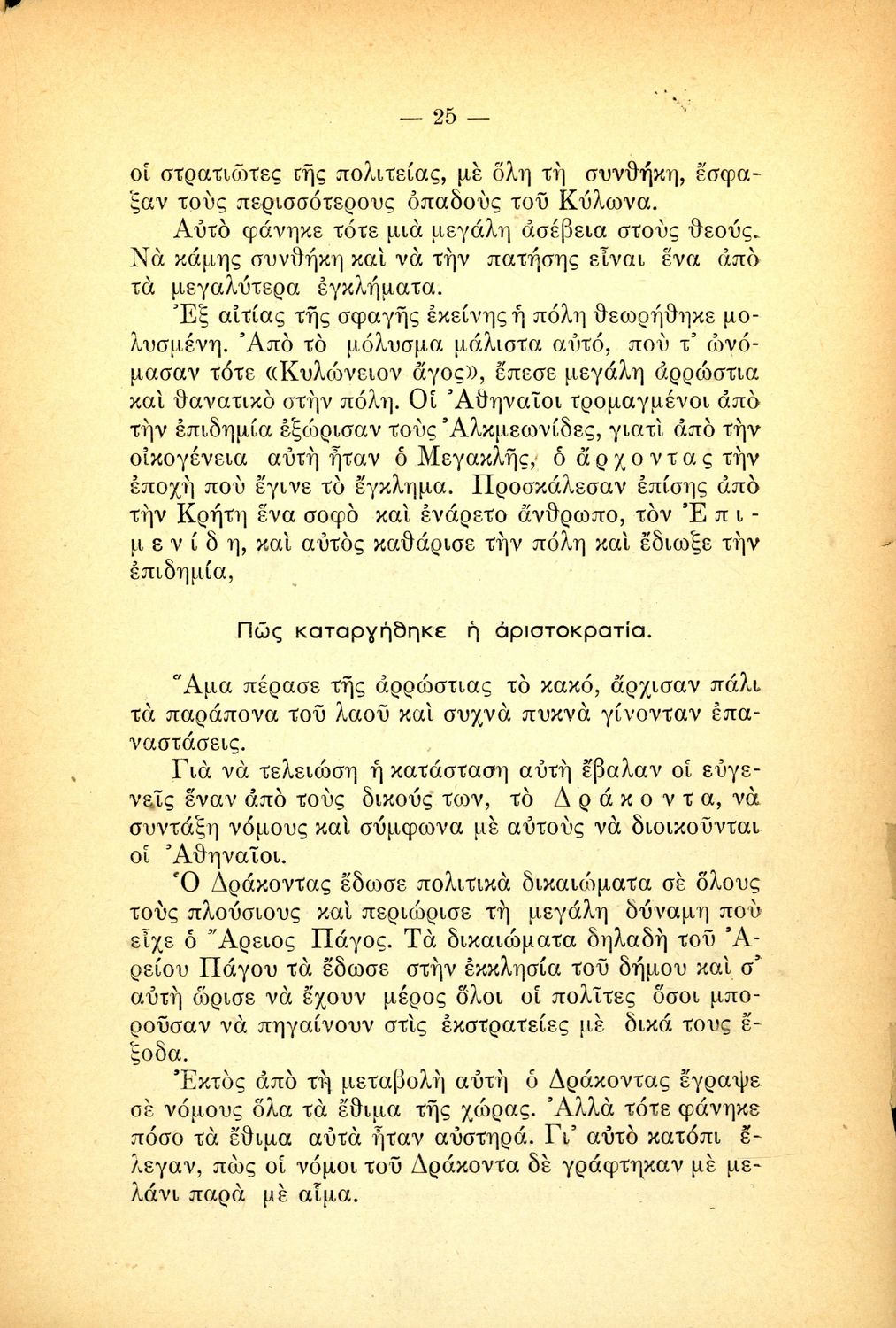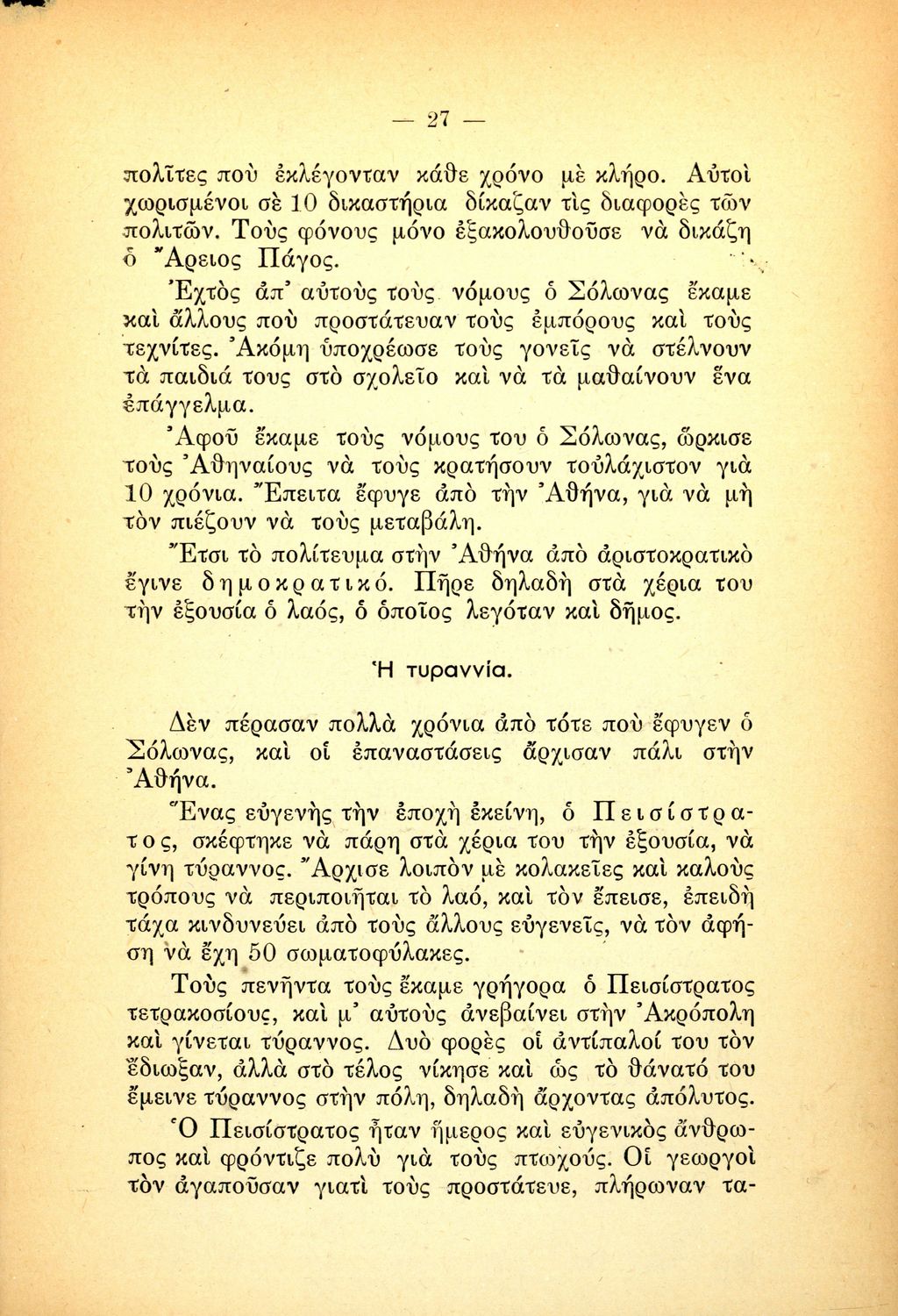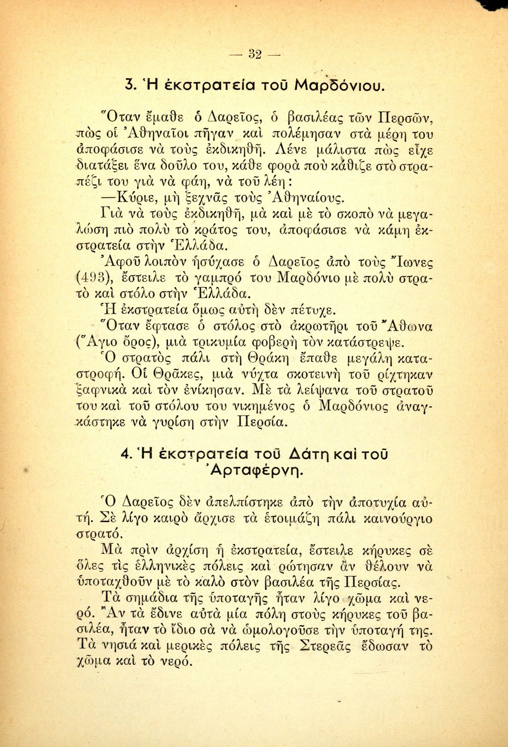 Βαθμίδα εκπαίδευσης: Πρωτοβάθμια Τάξη: Δ' Δημοτικού Μάθημα: Ιστορία Γλώσσα: Δημοτική με στοιχεία καθαρεύουσας Παρουσίαση περιεχομένου: Σχολικό εγχειρίδιο Ιστορίας. Δ' Δημοτικού που καλύπτει την περίοδο από την κάθοδο των Δωριέων ως την κατάληψη της Ελλάδας από τους Ρωμαίους. |