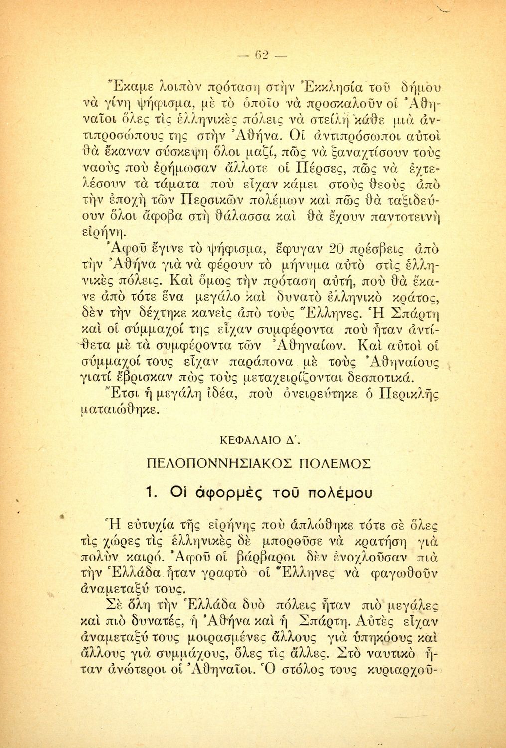 Σχολικό εγχειρίδιο Ιστορίας. Δ' Δημοτικού που καλύπτει την περίοδο από την κάθοδο των Δωριέων ως την κατάληψη της Ελλάδας από τους Ρωμαίους.