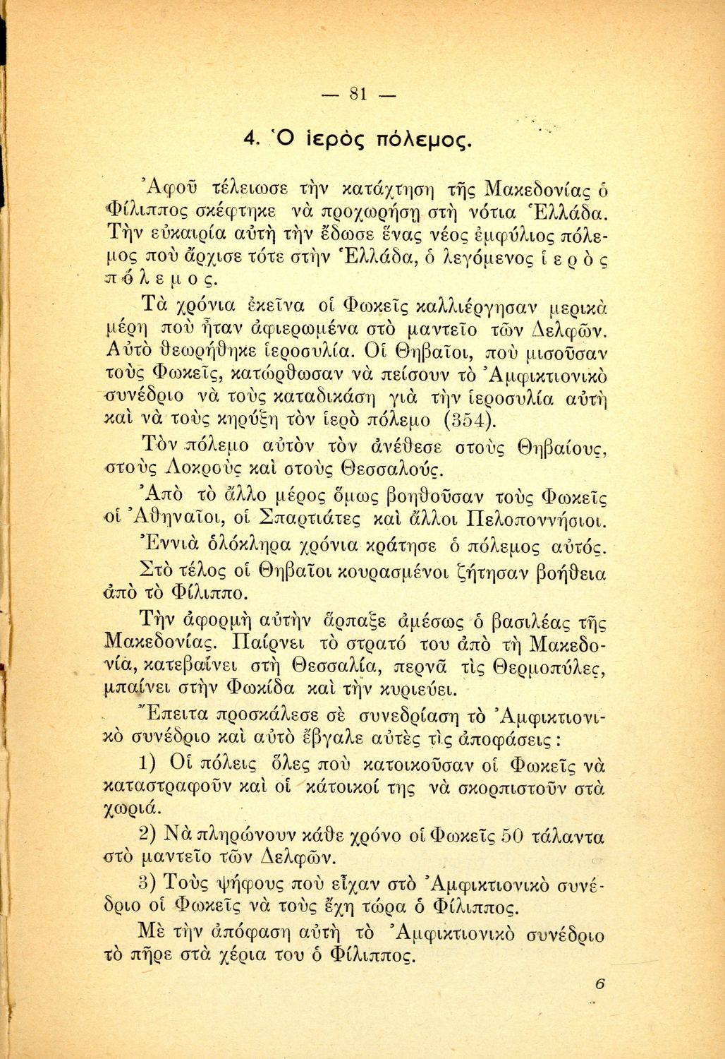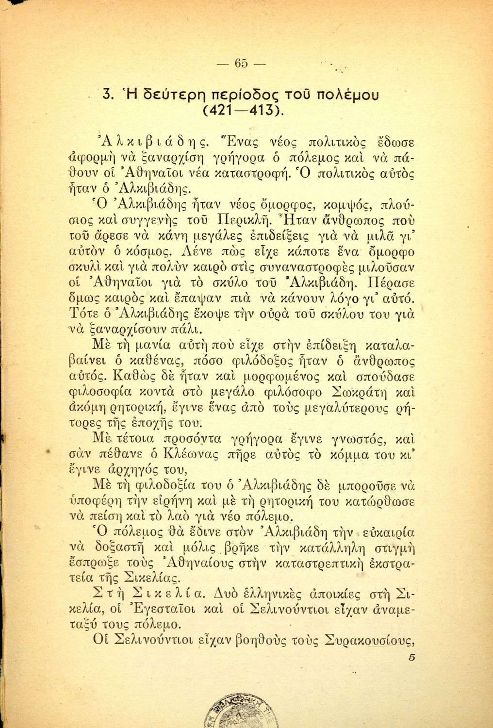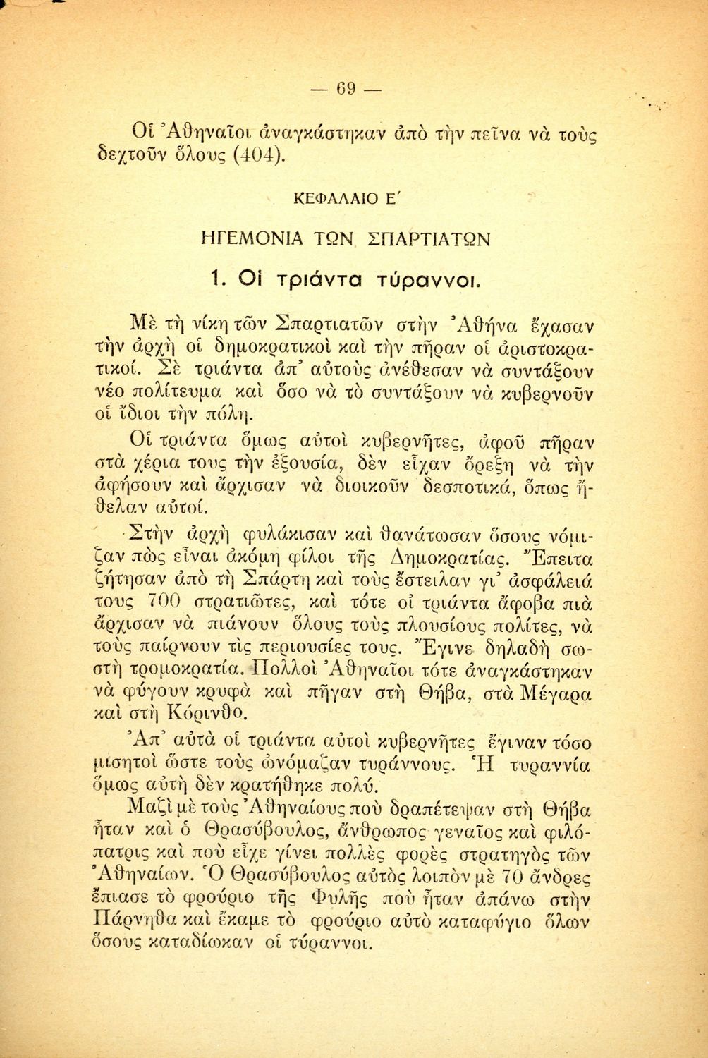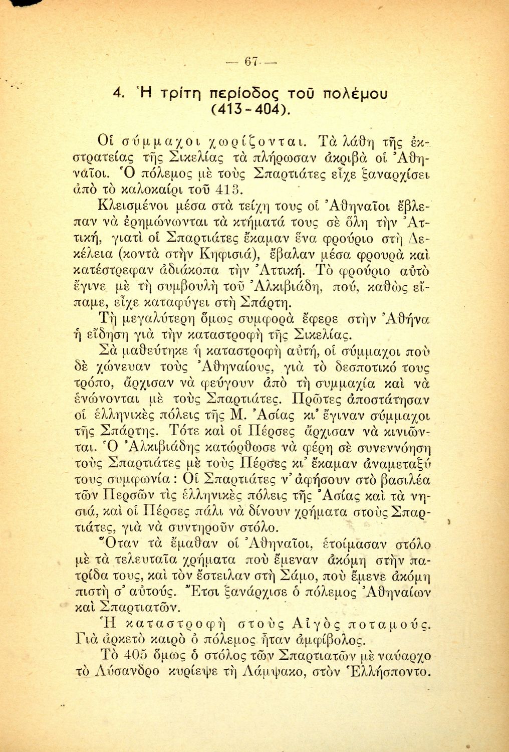 Βαθμίδα εκπαίδευσης: Πρωτοβάθμια Τάξη: Δ' Δημοτικού Μάθημα: Ιστορία Γλώσσα: Δημοτική με στοιχεία καθαρεύουσας Παρουσίαση περιεχομένου: Σχολικό εγχειρίδιο Ιστορίας. Δ' Δημοτικού που καλύπτει την περίοδο από την κάθοδο των Δωριέων ως την κατάληψη της Ελλάδας από τους Ρωμαίους. |