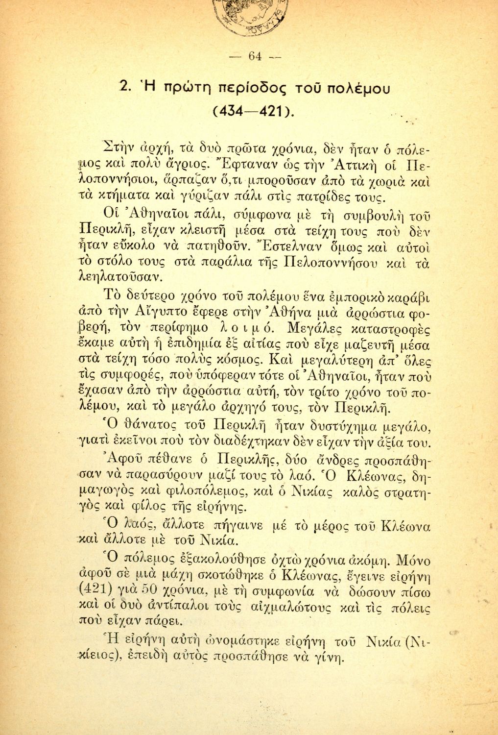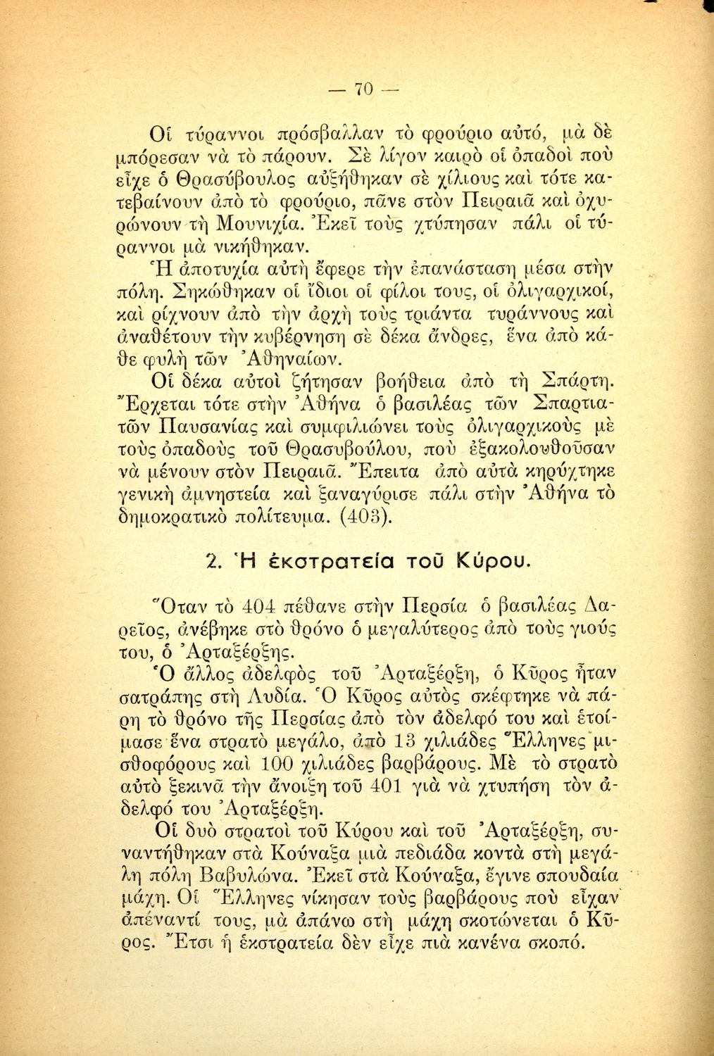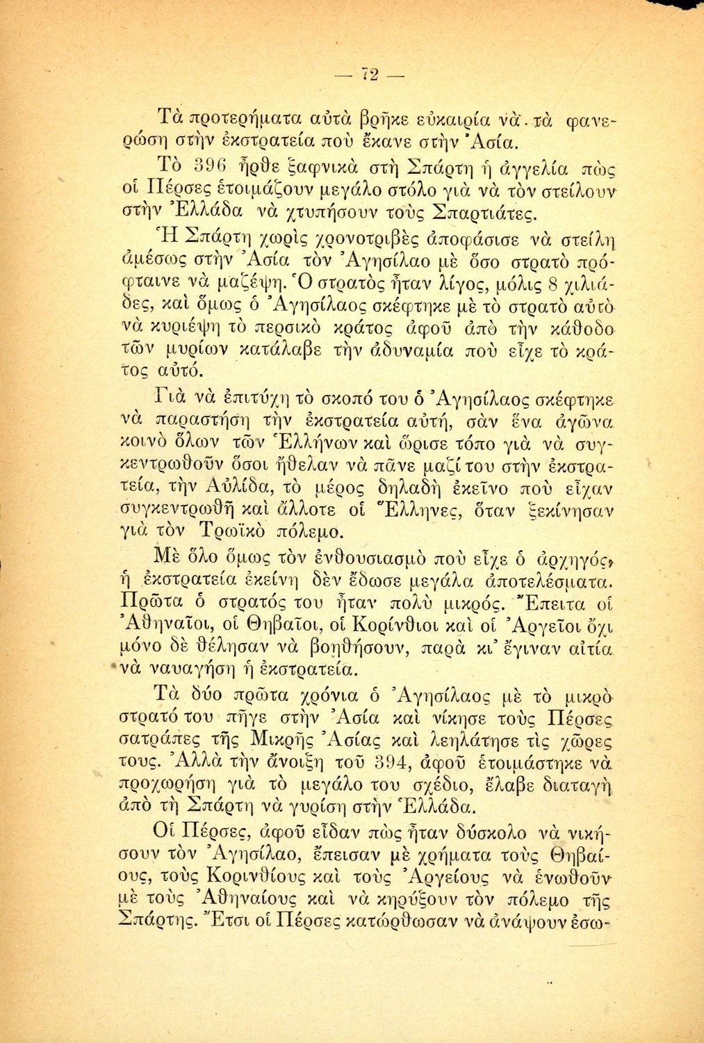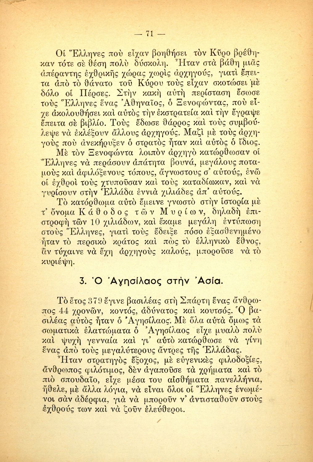 Βαθμίδα εκπαίδευσης: Πρωτοβάθμια Τάξη: Δ' Δημοτικού Μάθημα: Ιστορία Γλώσσα: Δημοτική με στοιχεία καθαρεύουσας Παρουσίαση περιεχομένου: Σχολικό εγχειρίδιο Ιστορίας. Δ' Δημοτικού που καλύπτει την περίοδο από την κάθοδο των Δωριέων ως την κατάληψη της Ελλάδας από τους Ρωμαίους. |